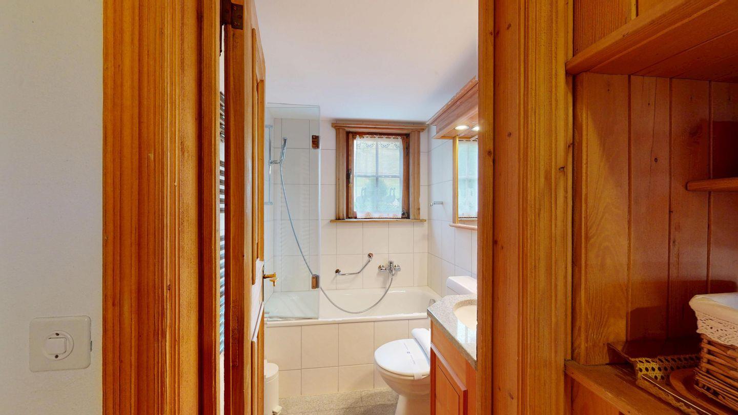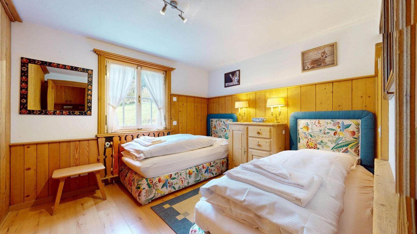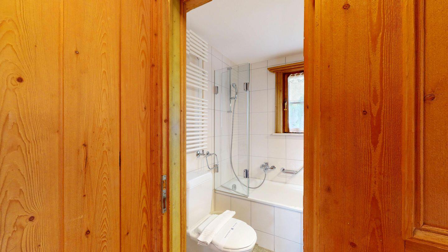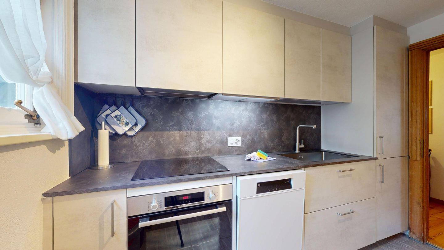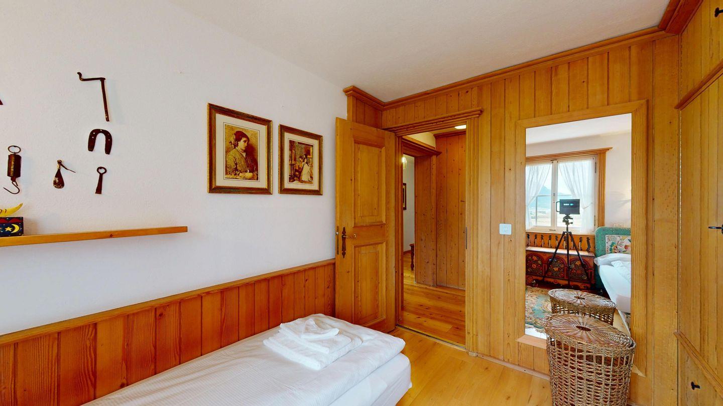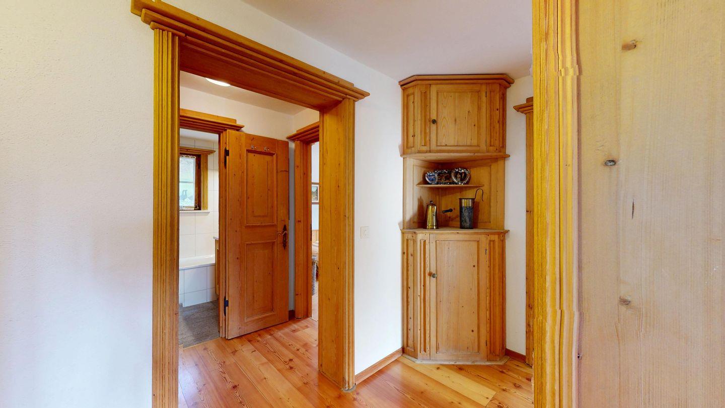 6-Zimmerwohnung im Erdgeschoss. Entree mit Garderobe. Wohn-/ Esszimmer mit Terrasse und Bergsicht, separate Küche mit Backofen, Kühlschrank, Chicco d'Oro Kaffeemaschine und Geschirrspülmaschine. Zwei Schlafzimmer mit je einem Doppelbett. Zwei Zimmer mit je zwei Einzelbetten. Ein Zimmer mit zwei Kinderbetten. Drei Badezimmer mit Badewanne/WC/Lavabo. TV und Internet. Holzböden im Schlaf- und Wohnzimmer. Garagenbox für ein Fahrzeug. Garage für ein Fahrzeug. Aussenparkplatz vor der Box. Ski und Skischuhe können im Skiraum oder in der Garage deponiert werden. Nichtraucherwohnung. Haustiere sind nicht erlaubt.