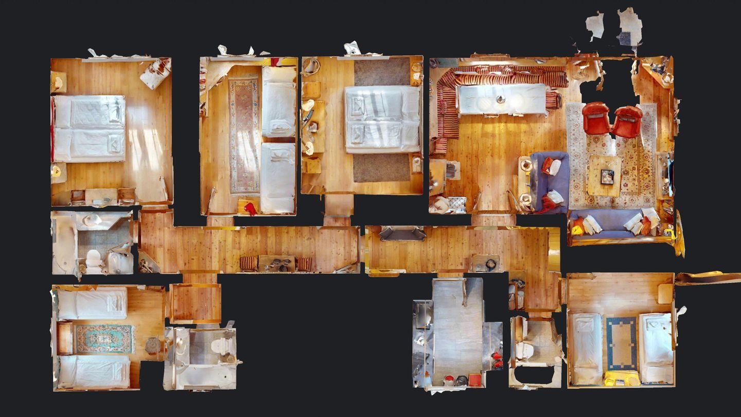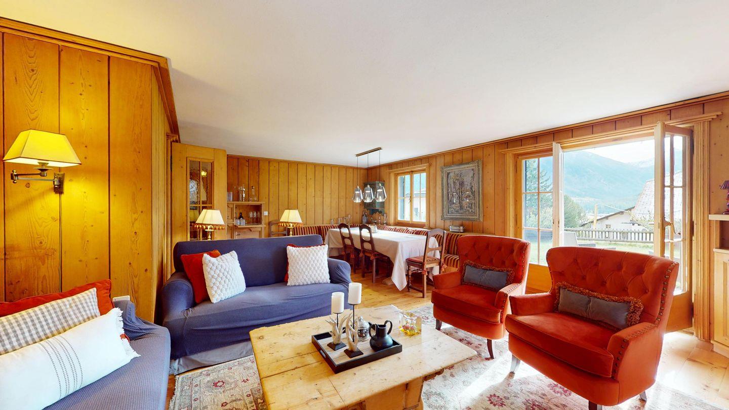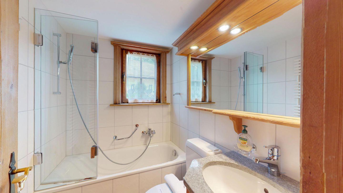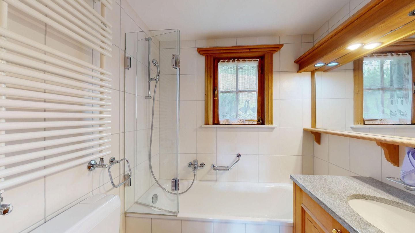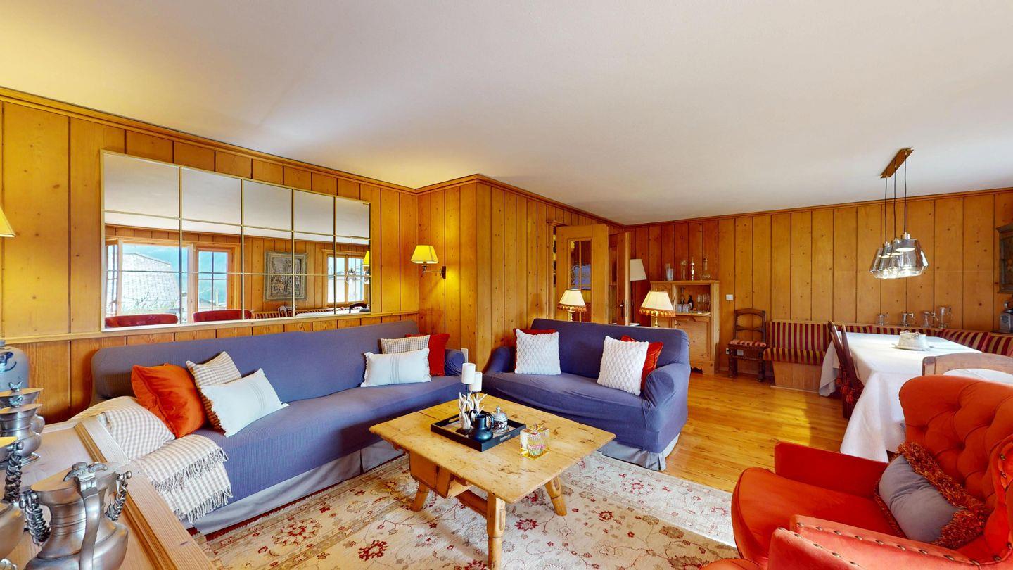 6-Zimmerwohnung im Erdgeschoss. Entree mit Garderobe. Wohn-/ Esszimmer mit Terrasse und Bergsicht, separate Küche mit Backofen, Kühlschrank, Chicco d'Oro Kaffeemaschine und Geschirrspülmaschine. Zwei Schlafzimmer mit je einem Doppelbett. Zwei Zimmer mit je zwei Einzelbetten. Ein Zimmer mit zwei Kinderbetten. Drei Badezimmer mit Badewanne/WC/Lavabo. TV und Internet. Holzböden im Schlaf- und Wohnzimmer. Garagenbox für ein Fahrzeug. Garage für ein Fahrzeug. Aussenparkplatz vor der Box. Ski und Skischuhe können im Skiraum oder in der Garage deponiert werden. Nichtraucherwohnung. Haustiere sind nicht erlaubt.