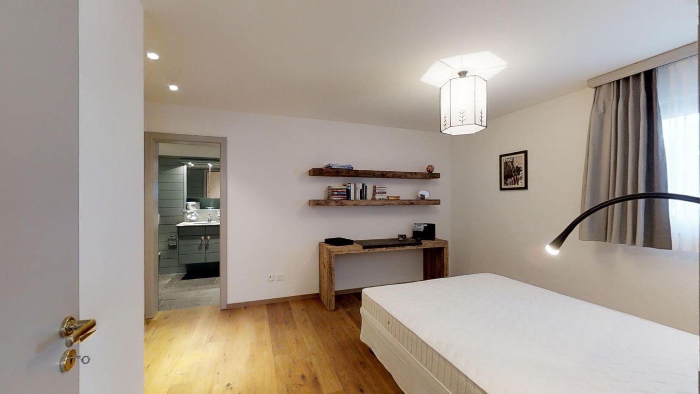 3-Zimmerwohnung im EG, ca. 90 m2. Entree mit Garderobe. Wohn-/Esszimmer mit Gartensitzplatz. Radio, Internet und TV. Küche mit Backofen, Kühlschrank, Geschirrspüler und Kaffeemaschine (Chicco d'Oro). Ein Doppelschlafzimmer (160 cm). Ein Bad/WC/Bidet und Lavabo. Ein Zimmer mit Schlafsofa. Dusche/WC/Bidet und Lavabo. Ein Garagenplatz. Eigener Waschraum (Waschmaschine und Tumbler) mit Bügelgelegenheit. Zur Mitbenützung im Haus: Spielzimmer mit Tischtennis und Skiraum. Haustiere sind erlaubt. Anreise Samstag