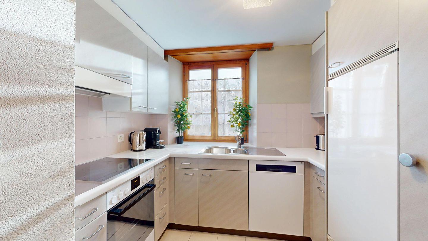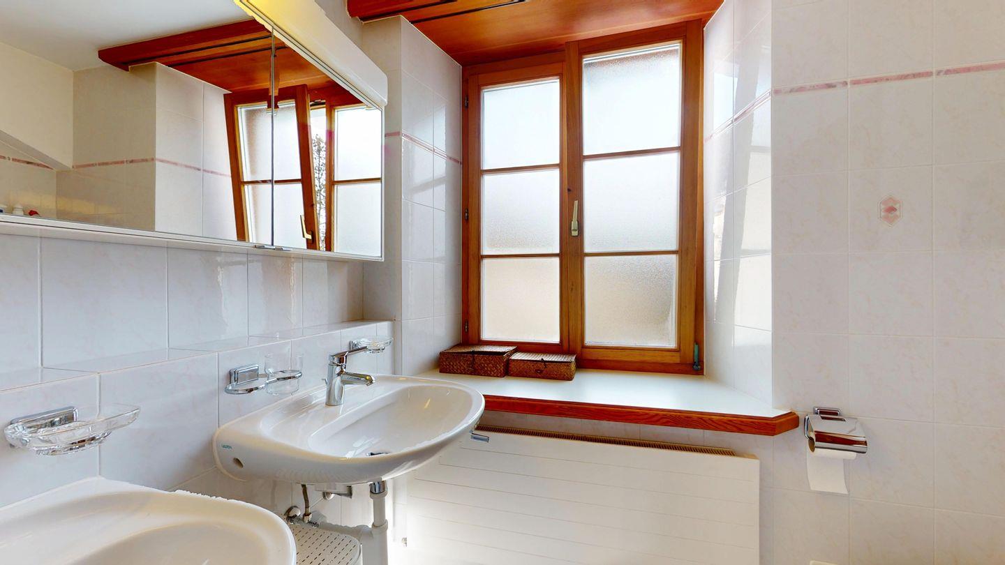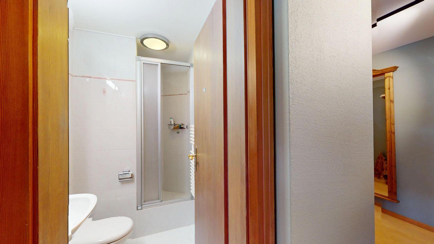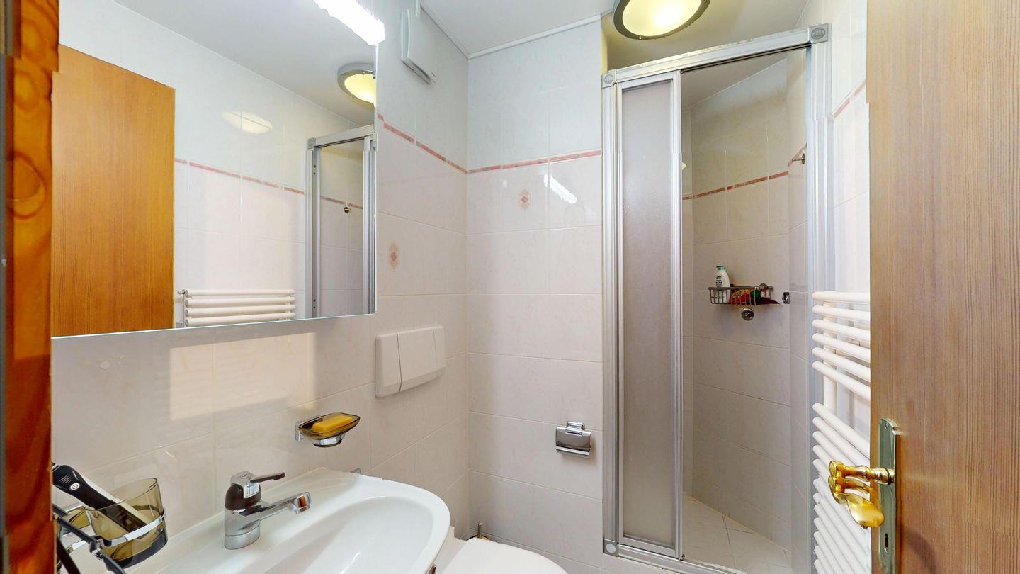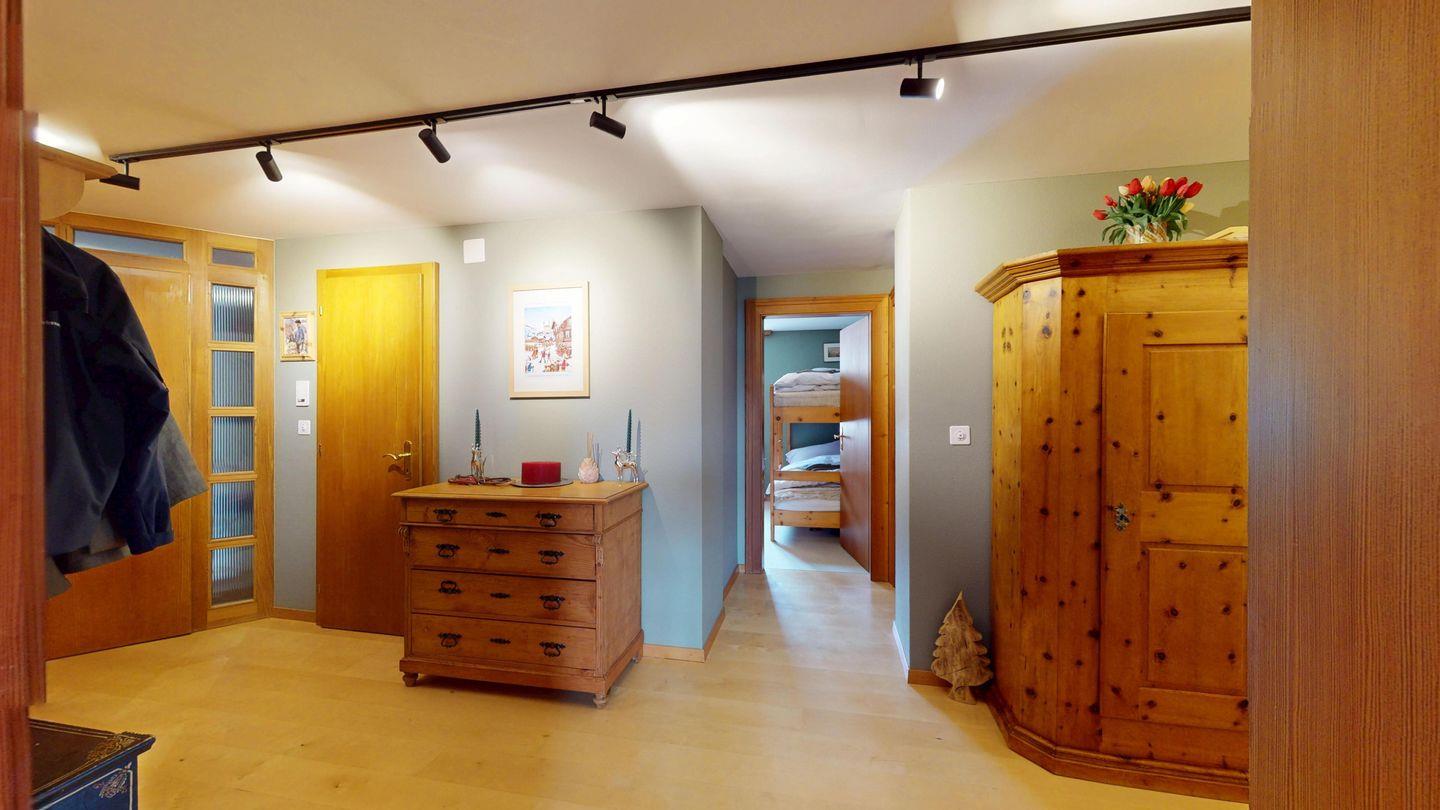 Grosszügige 4-Zimmerwohnung im 2. Stock. Eingang mit Garderobe. Wohn-/Esszimmer mit Balkon. Offene Küche mit Fenster, Backofen, Geschirrspüler und Kühlschrank. Doppelzimmer mit eigenem Badezimmer mit Badewanne/WC/Doppelwaschbecken. Ein Schlafzimmer mit zwei Einzelbetten und ein Schlafzimmer mit Etagenbett. Badezimmer mit Dusche/WC/Lavabo. 2 Garagenplätze. Haustiere sind nicht erlaubt.