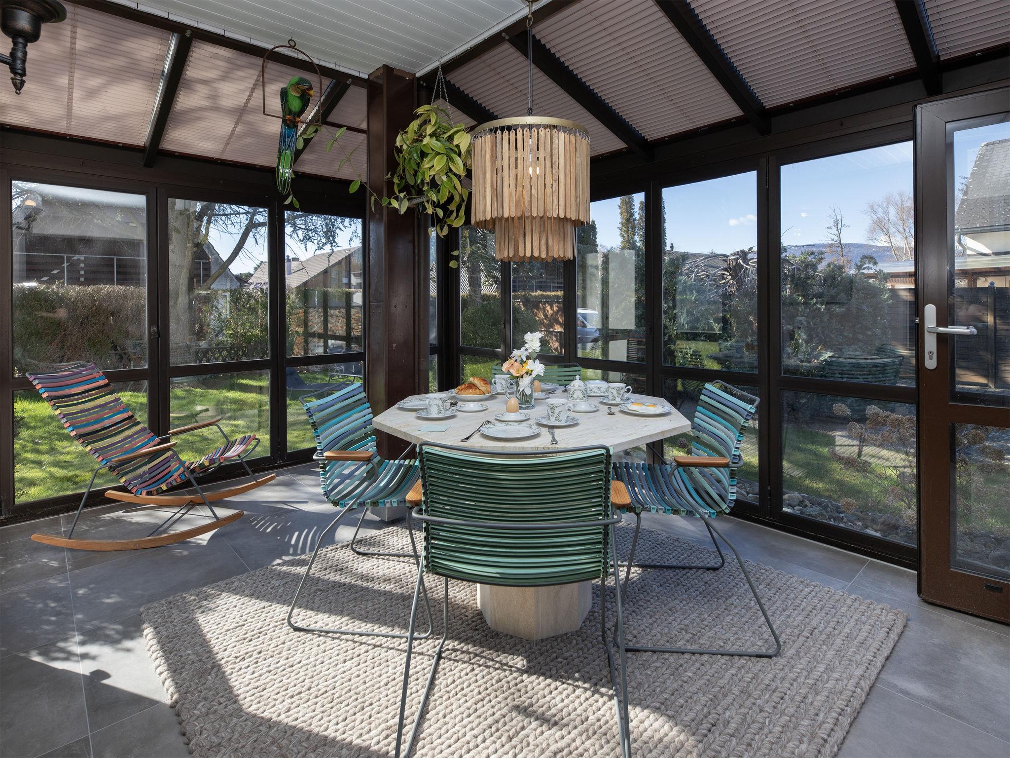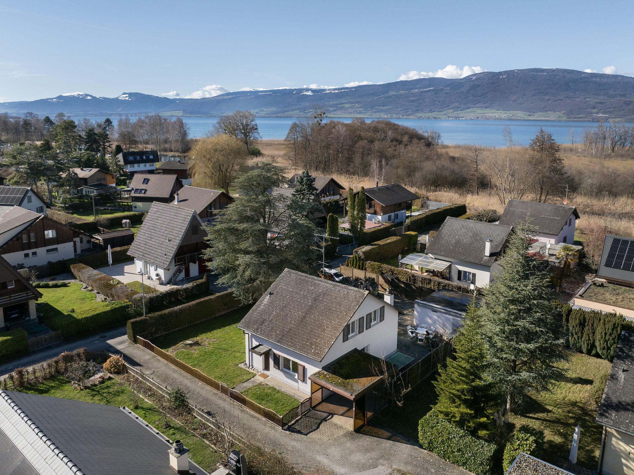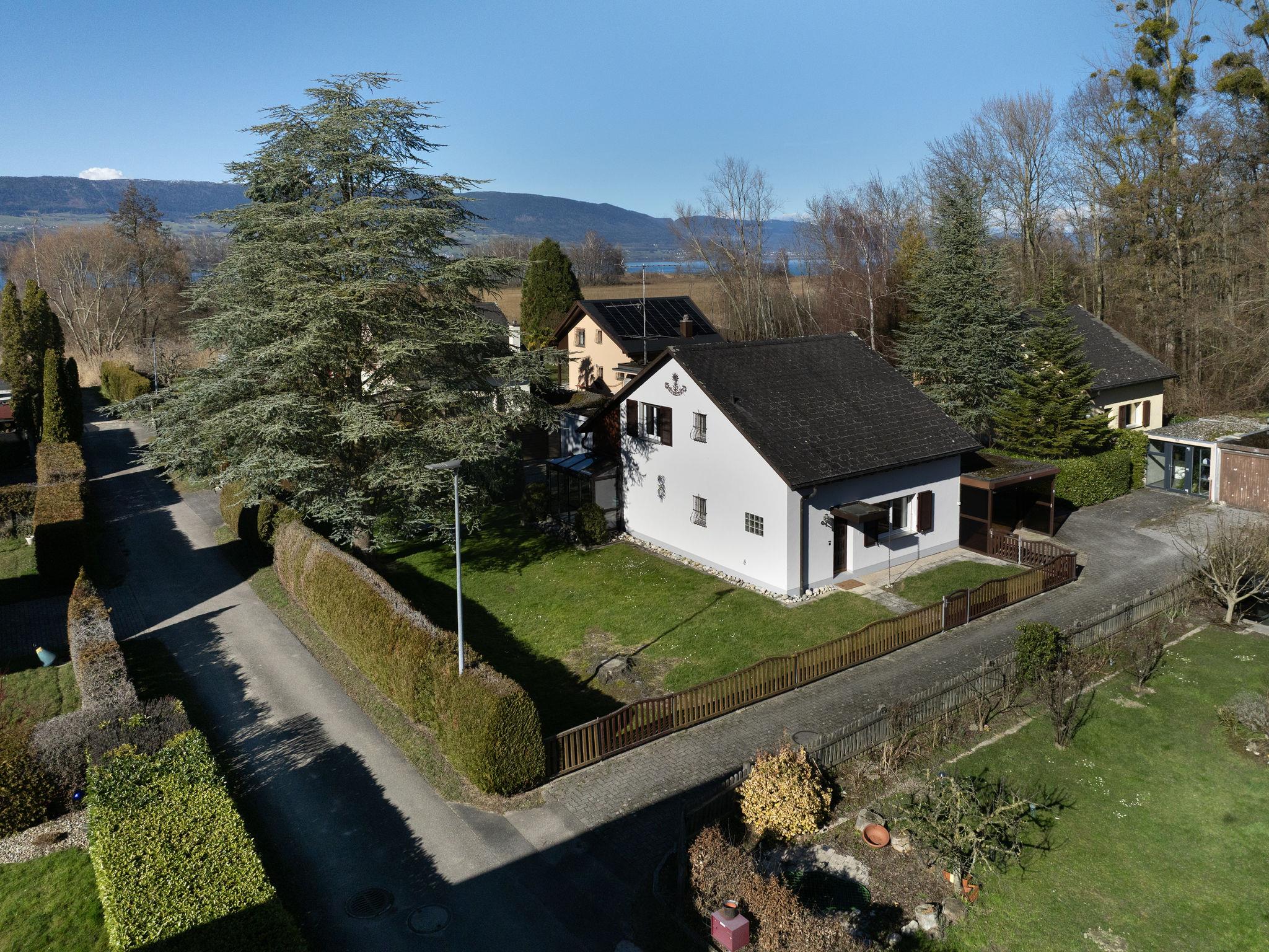 Cheyres 14 km from Yverdon-les-Bains: Large, comfortable single-family house, 2 storeys, surrounded by meadows. In a quiet position in the residential district, 850 m from the lake, in a cul-de-sac, north-west facing position. Private: property (fenced), garden (fenced). Table tennis, barbecue. In the house: central heating system. Parking at the house. Grocery 1.3 km, supermarket 5.2 km, restaurant 850 m, bus stop "Cheyres, Route d'Yverdon" 1.1 km, railway station "Cheyres" 800 m, sandy beach 1.4 km. Marina 850 m. Well-known ski regions can easily be reached: Saint-Croix - Les Rasses 34 km. Well-known lakes can easily be reached: Lac de Neuchatel 850 m. Neighbourhood highly sensitive to noise. Quietness and good behaviour expected.