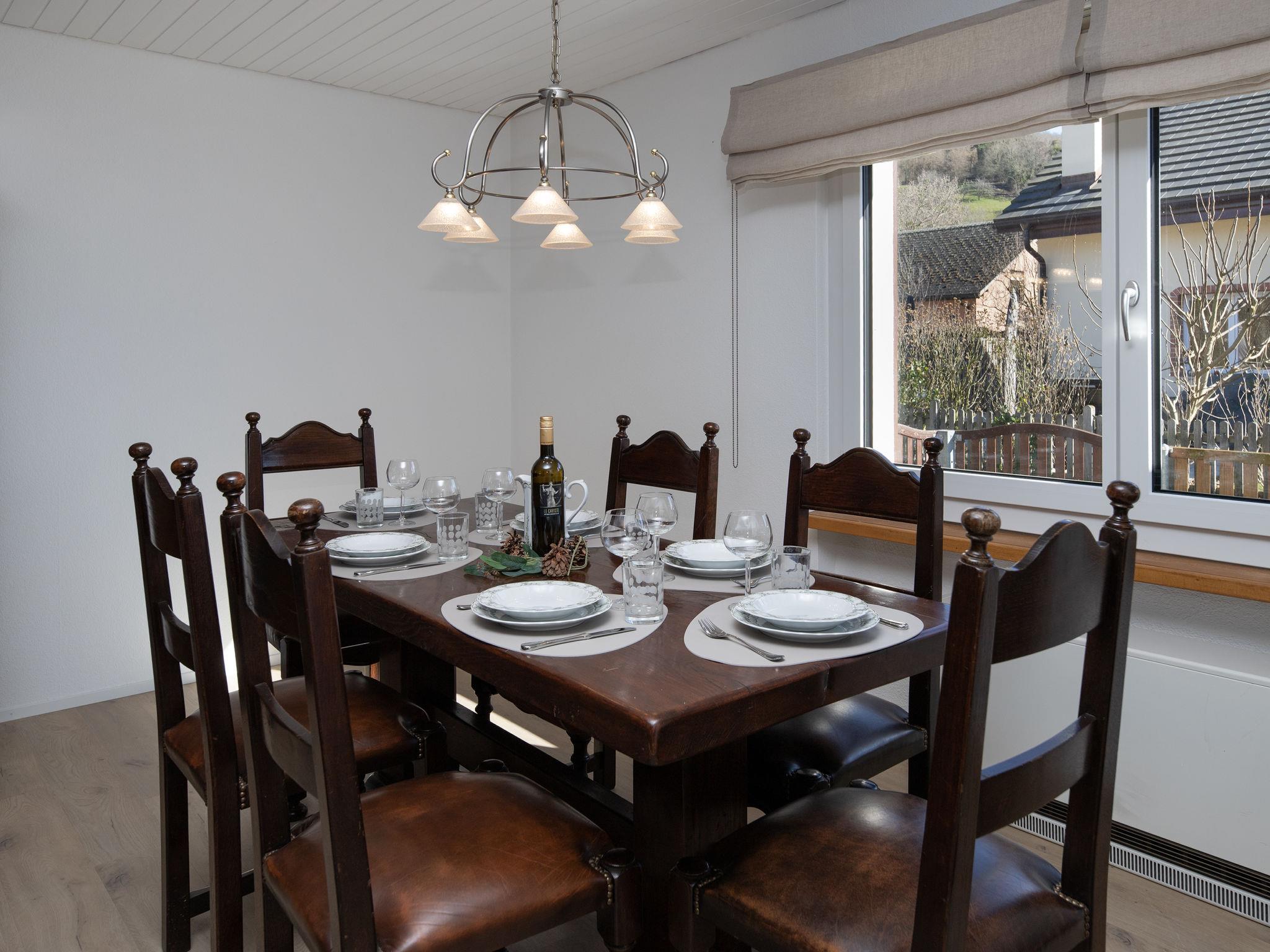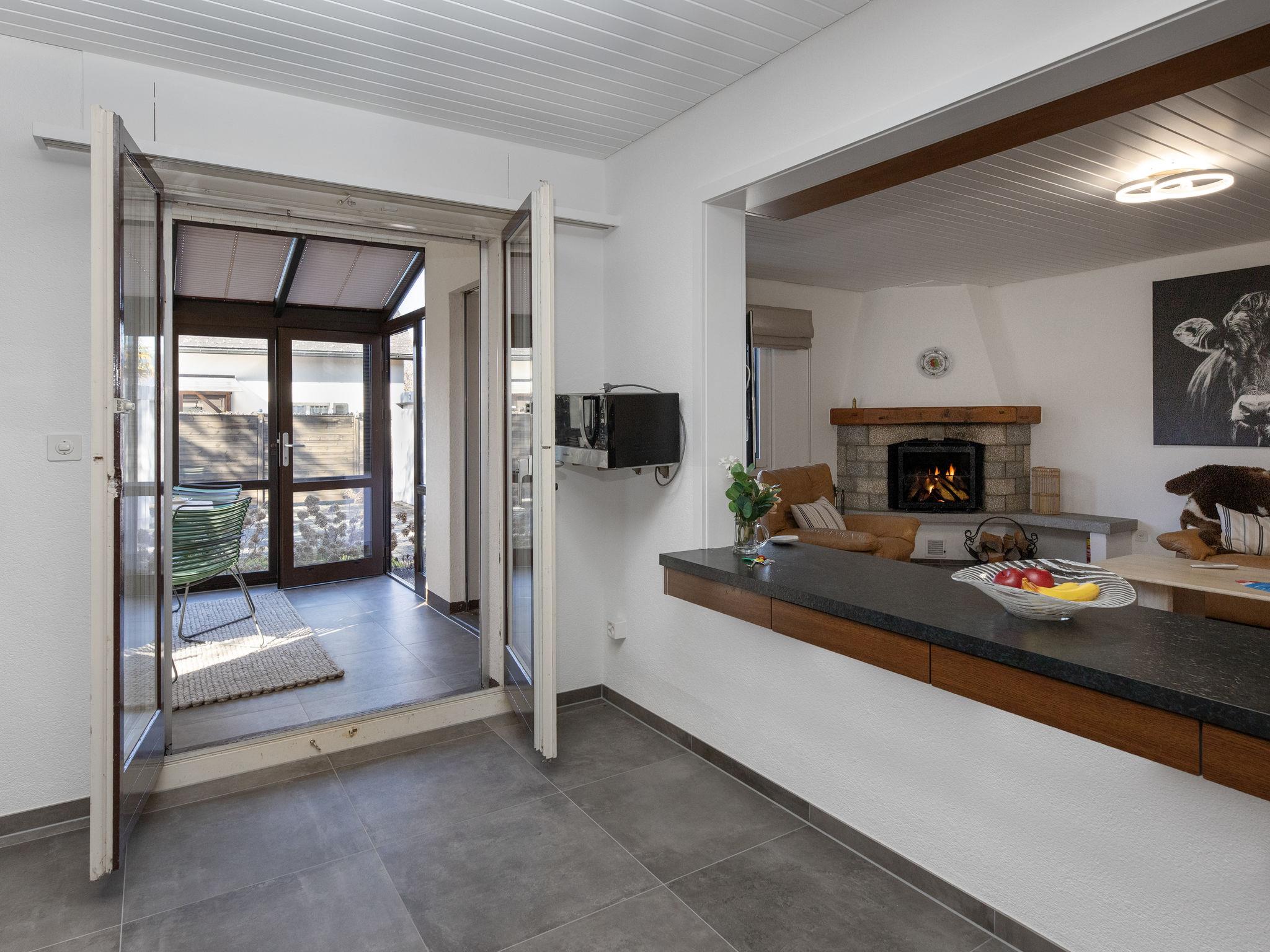 "Sous-le-Moulin", 4-room villa on 2 levels. Comfortable and tasteful furnishings: living/dining room with open-hearth fireplace and cable TV. Exit to the terrace, to the veranda. Large kitchen (4 hot plates, dishwasher, toaster, kettle, microwave, electric coffee machine, Capsules for coffee machine (jura)). Sep. WC. Heating. Upper floor: 2 large rooms, each room with 1 double bed (160 cm, length 200 cm). 1 small room with 1 double bed (160 cm, length 200 cm). Shower/WC. Parquet floors. Terrace. Terrace furniture, barbecue (portable), deck chairs (4). Facilities: washing machine, logs (free). Internet (WiFi, free). Parking (fenced 2 cars). Please note: non-smokers only. Maximum 1 pet/ dog allowed.