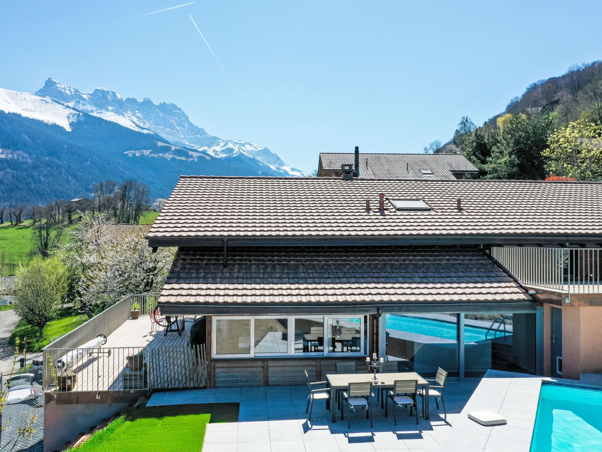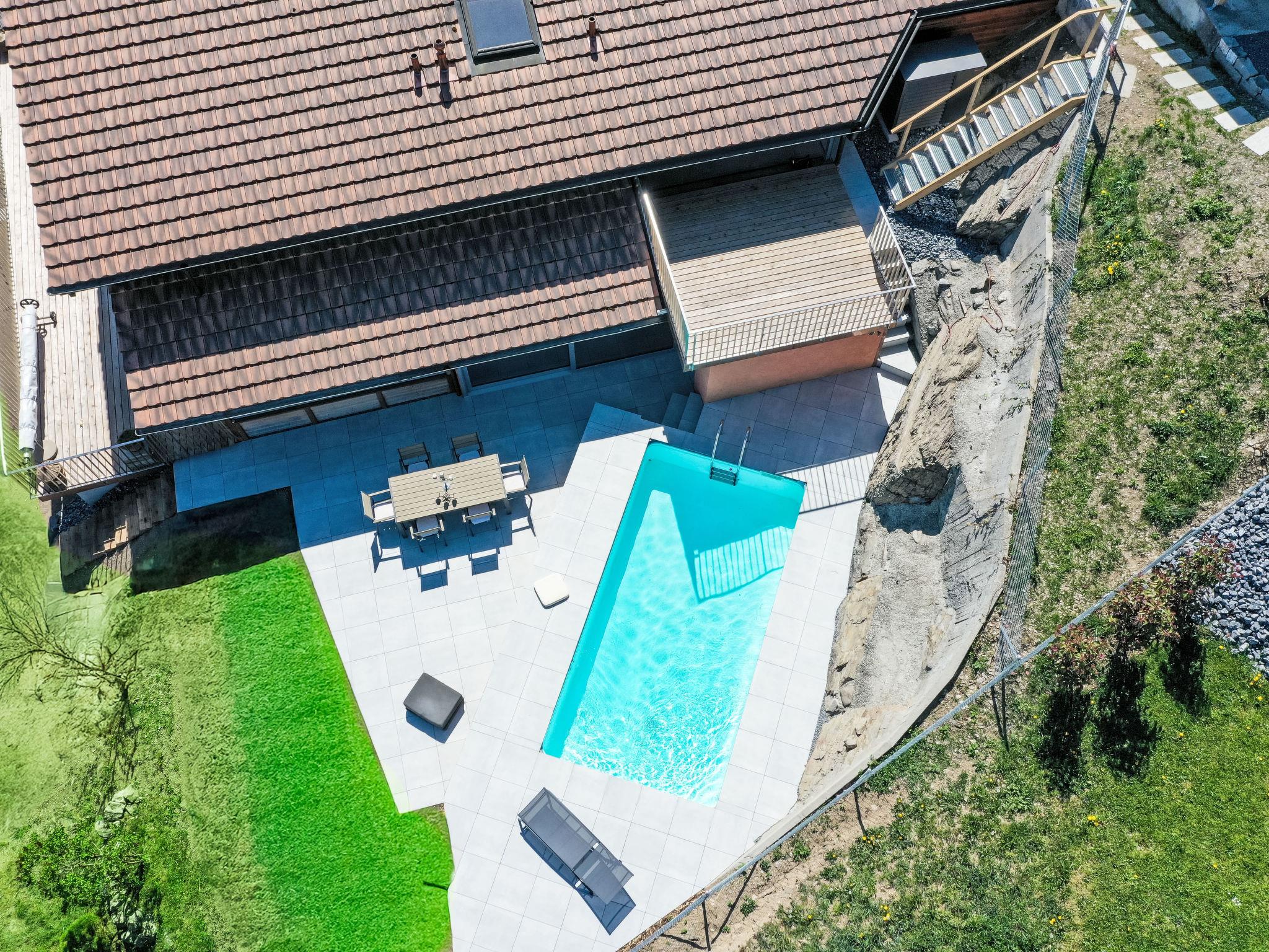 Les Neyres 4 km from Monthey: 2-family house "Lau'tentik", 800 m a.s.l.. In a quiet, sunny position, 11 km from the skiing area, south-east facing position. For shared use: terraced garden (fenced), swimming pool angular secured (7 x 3 m, depth 100 - 150 cm, seasonal availability: 15.May. - 31.Oct.). Private: garden (fenced). In the house: storage room for bicycles, storage room for skis, central heating system, washing machine, tumble dryer (for shared use). Breakfast on request (extra). Motor access to the house (mountain road). Parking at the house. Shopping centre 5.4 km, restaurant 4 km, bakery 5 km, bus stop "Chapelle de Neyres" 200 m, railway station "Chemex" 1.5 km, outdoor swimming pool 5 km, thermal baths "Lavey les Bains" 14 km, bathing lake "Lac Léman" 20 km. Golf course (18 hole) 12 km, indoor tennis centre 11 km, sports centre 11 km, walking paths from the house 1 m, slopes 11 km, ski rental 11 km, children's playground 200 m. Nearby attractions: Via Ferrata de Tière 15 km. Well-known ski regions can easily be reached: Portes du Soleil 11 km. Well-known lakes can easily be reached: Lac Léman 20 km. Please note: the owner lives in the same residence. The owner has a dog. Wellness area extra, to be booked on site.