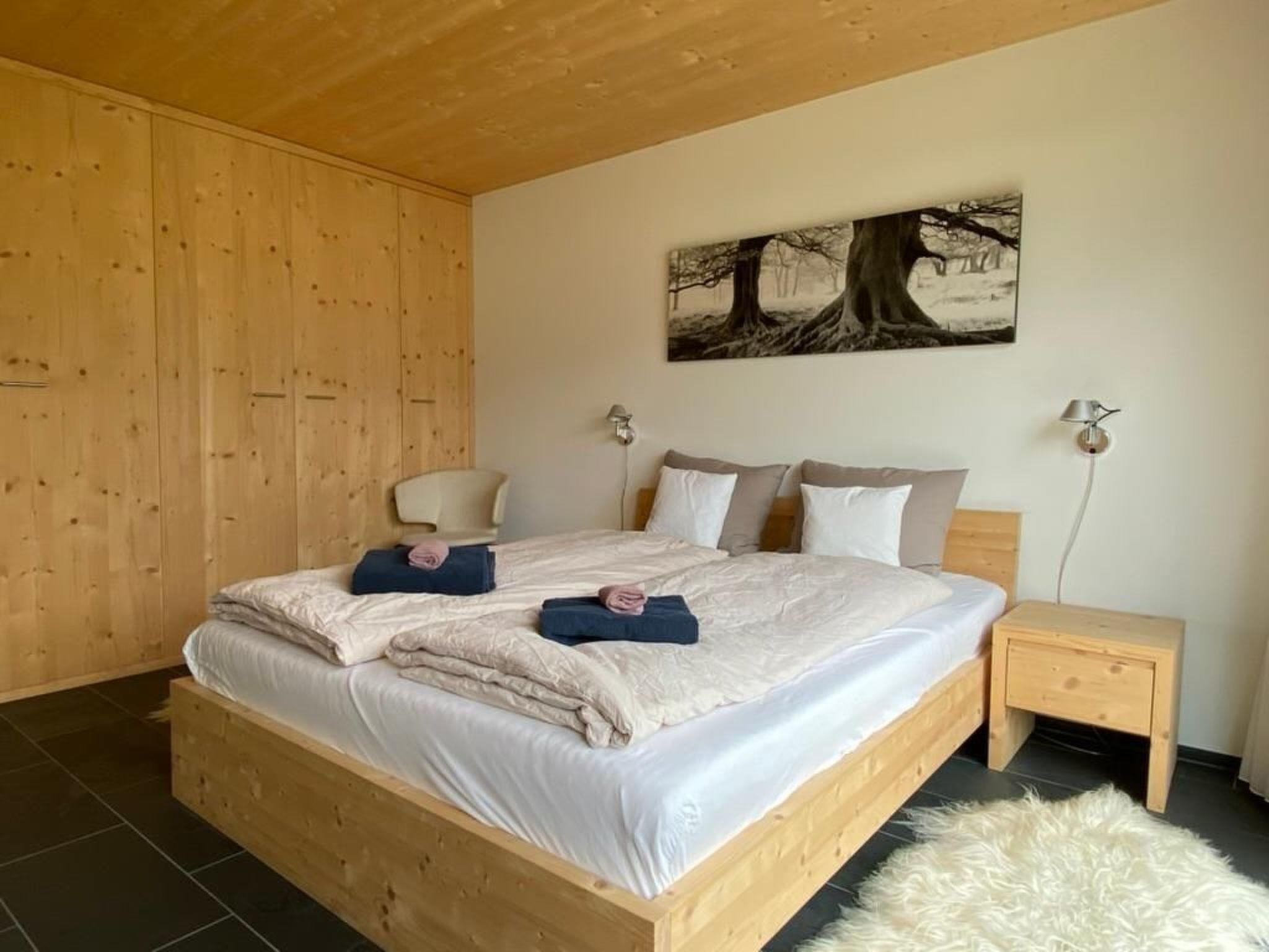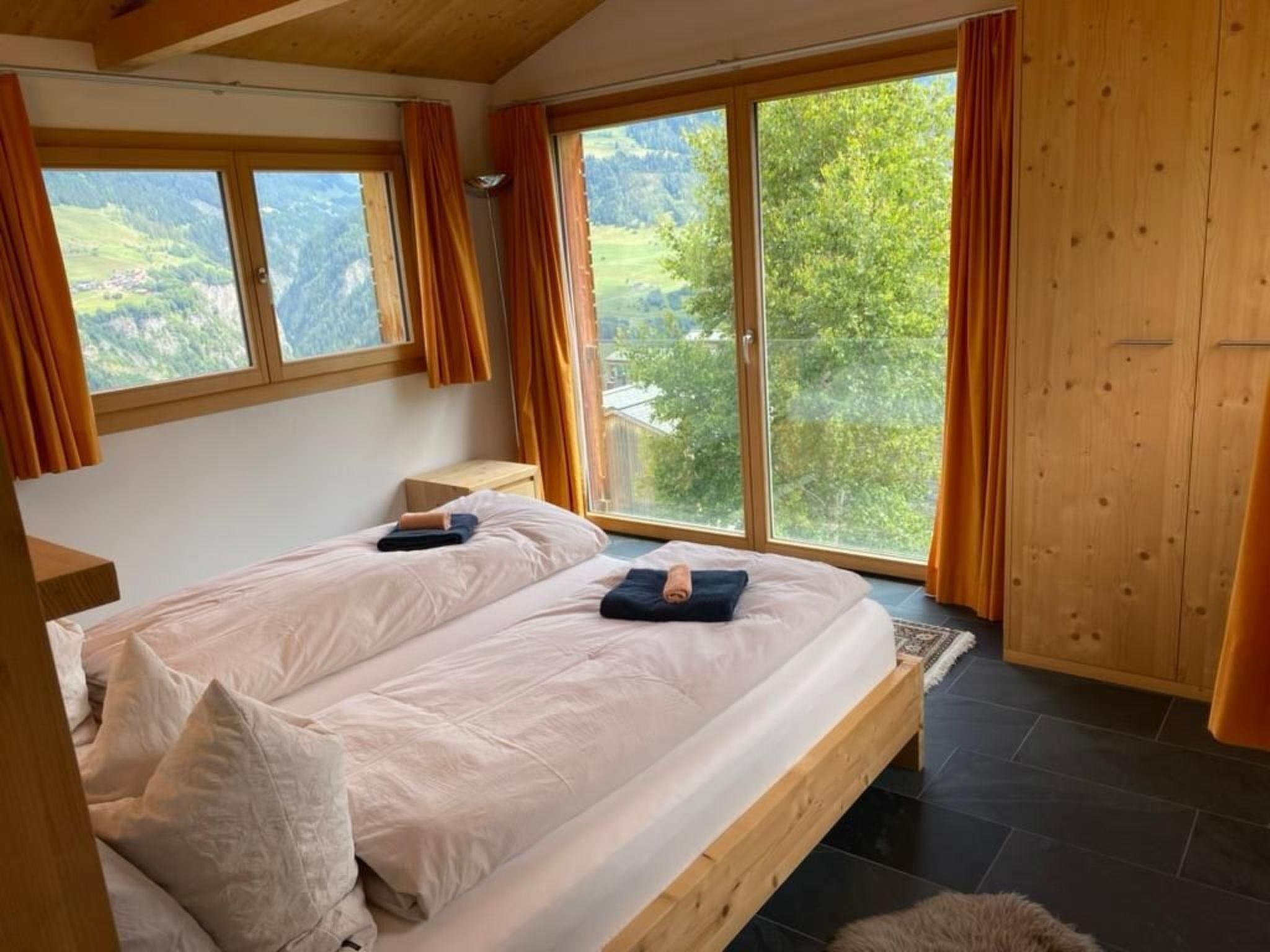 Beautiful, modern, fully furnished holiday home with approximately 170m2 of living space on three levels. The house was built in the year 2011 and has hardly been used, which is why it appears very new. Large windows fronts in the living area bring a lot of light and sun into the house. It is located in the quiet village of Cumbel in a prime location with good sun exposure and breathtaking views of the mountains and the valley opposite. The house offers a loggia/balcony as well as several outdoor areas/seatings. This fully-equipped holiday house additionally offers the followoing: charcoal grill/gas grill, fire place, several sun loungers for outside, two relaxing armchairs electronically adjustable for inside, ski boot warmer, baby bed and much more. Handsoap, showergel, wood for the fire place and coffee capsules are availalbe and included in the price. Distance to next skiresort Mundaun/Obersaxen: 2 minutes, Distance to Laax: 15 minutes, distance to Lake Cauma: 20 minutes. Many hiking and biking trails near the house. Ideal for a larger groups as each bedroom has its own bathroom.