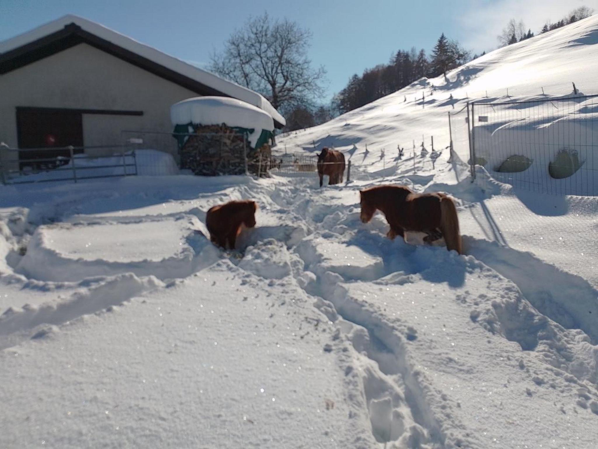 Outside, the outdoor area offers the opportunity to actively participate in farm life: Help feed and herd horses, sheep, goats and geese or take part in the hay harvest - an unforgettable experience, especially for children. The Staudenhof also serves as an ideal starting point for hikes, bike tours, snowshoe tours or wildlife watching.