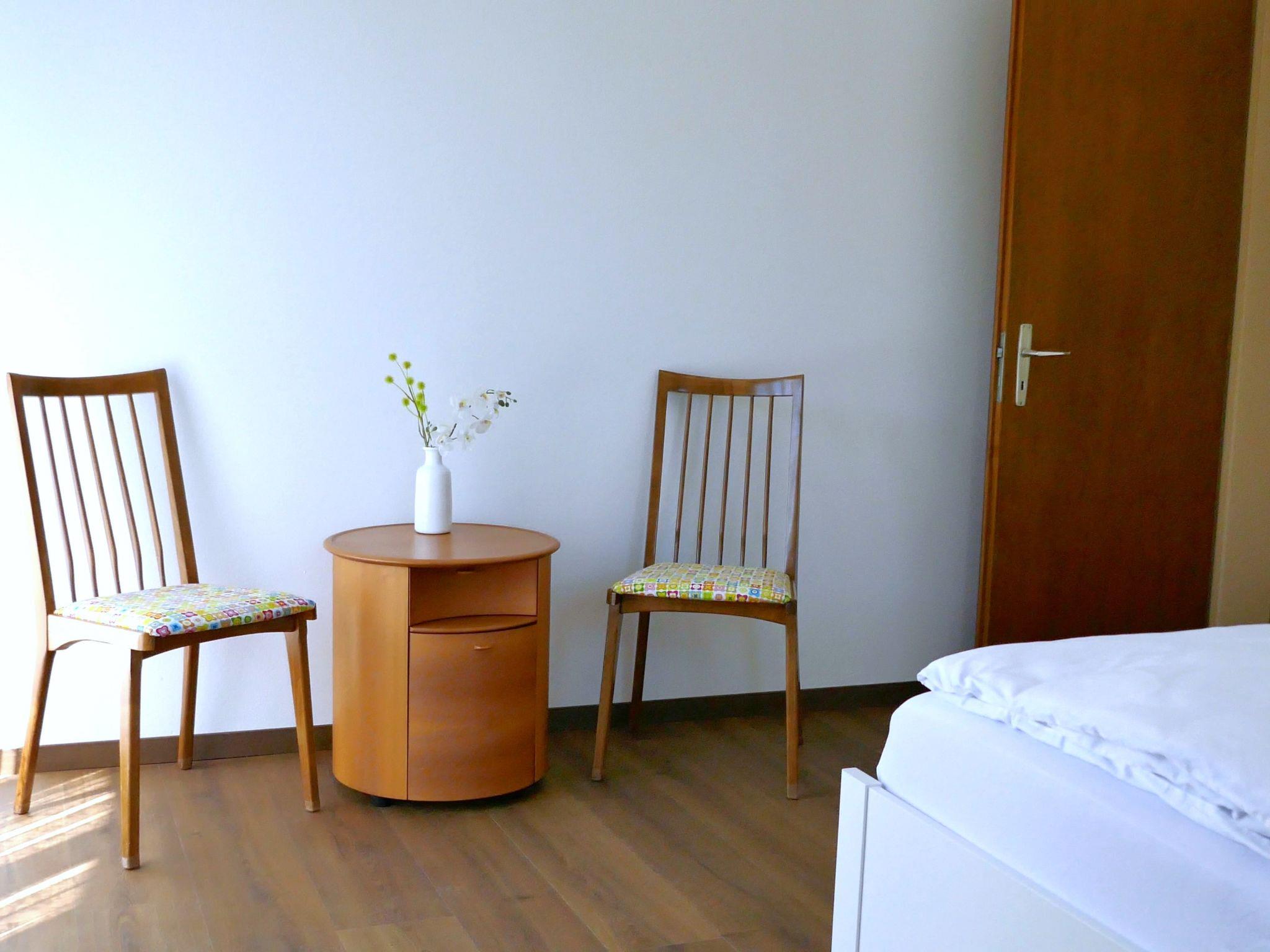 "Ca Jeanne", 3-room apartment. Object suitable for 2 adults + 2 children. Bright, comfortable and cosy furnishings: living/dining room with dining table and TV. Exit to the balcony. 1 double bedroom with 1 double bed (2 x 80 cm, length 160 cm). Exit to the balcony. 1 room with 2 beds (90 cm, length 200 cm). Kitchen (oven, dishwasher, 4 ceramic glass hob hotplates, toaster, kettle, electric coffee machine, Capsules for coffee machine (Nespresso) extra, fondue Set (cheese)) with bar. Shower/bidet/WC. Oil heating. Parquet floors. Balcony, large garden, lawn. Balcony furniture, barbecue (portable), deck chairs (2). Marvellous view of the mountains, the valley and the resort. Facilities: children's high chair, baby cot for up to 2 year olds (extra), hair dryer. Internet (WiFi, free). Please note: non-smoking house. Maximum 1 pet/ dog allowed. Private entrance. NL-00011900