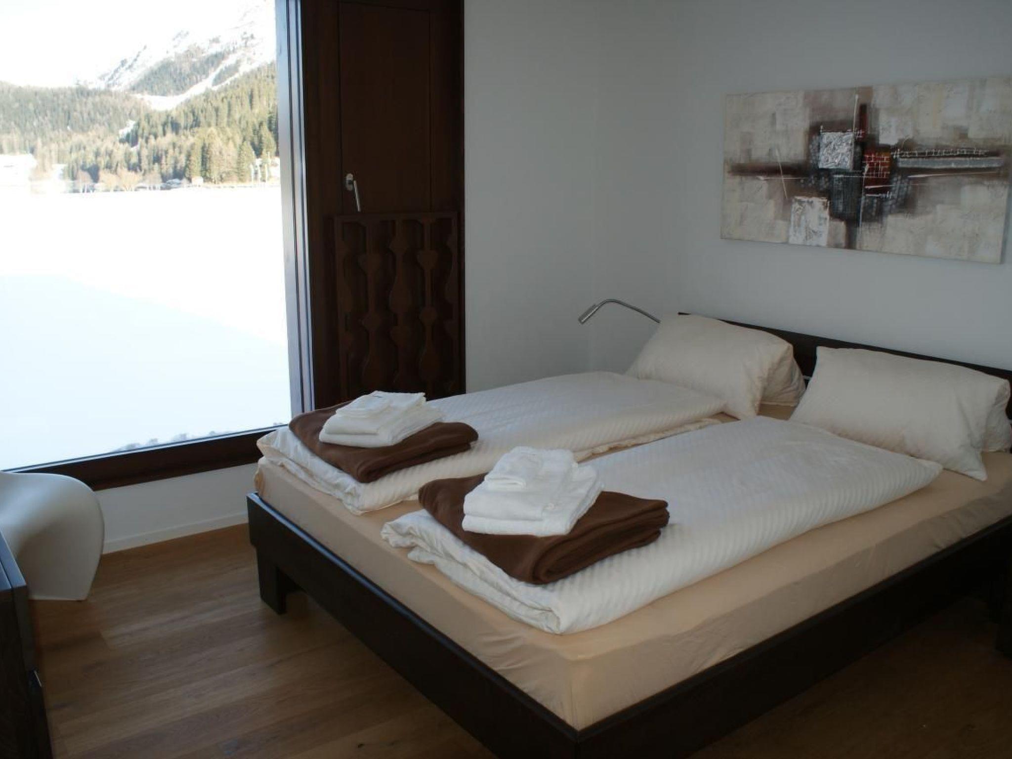 The location with a direct view and proximity to the lake, as well as the size and quality of the flat invite you to enjoy. The open-plan living room has direct access to the 2 loggias with unique views of Lake Davos and the Davos mountains. The flat measures 143 m2.