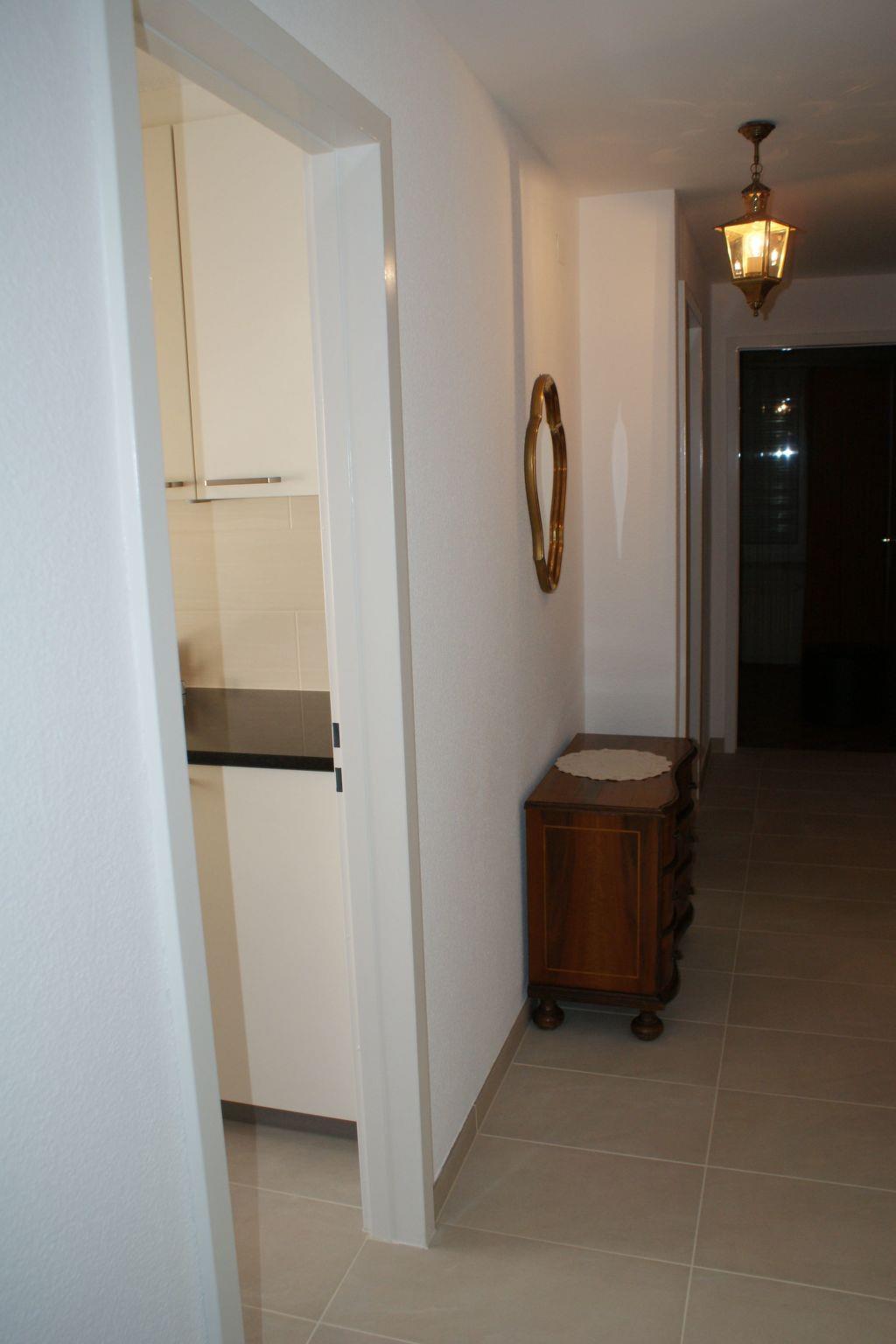 The outdoor area boasts a spacious 15 m² balcony, furnished with a table and 5 chairs, from which you can enjoy a wonderful view of the Brämabüel and the garden. The exterior façade and balcony of the flat have recently been renovated, which rounds off the external impression. Here you can relax at the end of the day while enjoying the fresh air.