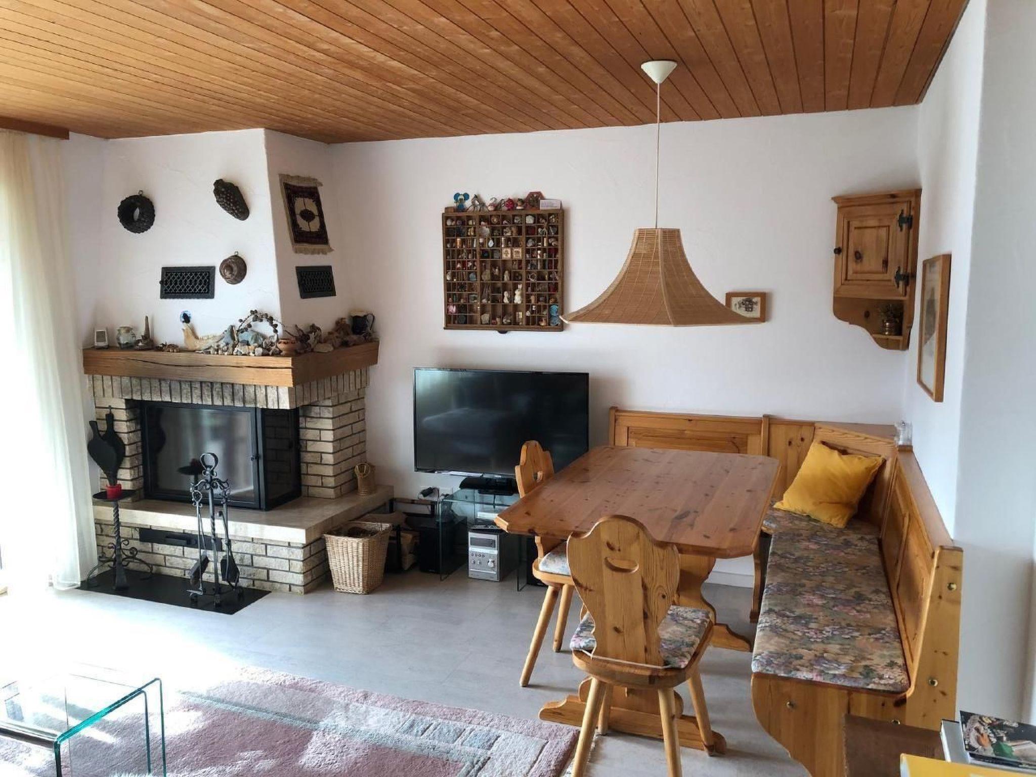 Enjoy the colour TV and the HIFI system with DVD player from the modern sofa with chaise longue. Of course, you also have access to WLAN Internet, which can be switched off, and a telephone. Board games, lots of books and the cosy open fire (free wood) in the living and dining room invite you to "dolce far niente". The dining area with table, corner bench and 3 tables in rustic Grisons style round off the whole thing. On sunny days you can loll in the deckchairs (table and garden chairs are also available) and enjoy the heavenly peace and quiet and the dream view.