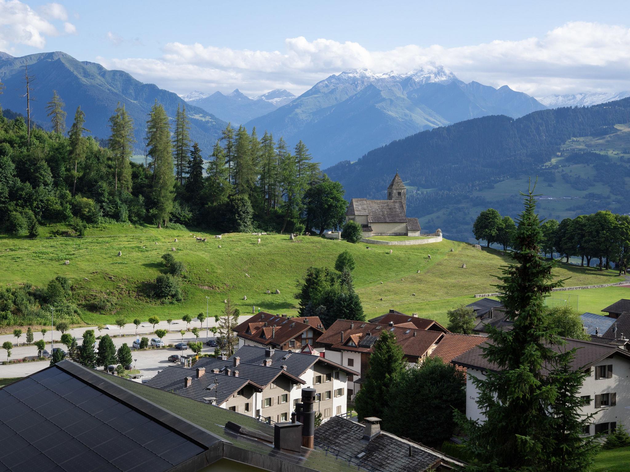 The bright 2-room flat on the mezzanine floor with all windows facing south and a garden seating area with lawn that enjoys sun all day long offers a dream view over the Surselva and the Vals Valley. In front of you is the mountain village of Falera with its fantastic winter offer. 28 modern lifts, 4 snow parks and 235 kilometres of internationally award-winning pistes in one of the snowiest ski areas in Switzerland are at your disposal. You can reach the valley station in just a few minutes (400m) without any incline and the piste is almost in front of the house when you get home. Many great cross-country ski trails can be reached with the free shuttle bus and snowshoeing with groomed trails from Falera is a hit.