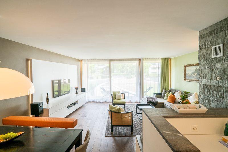 110?m² grosse Wohnung mit Fussbodenheizung im 1. OG der Mountain Suites, nur 10 Gehminuten zur Talstation Flims. Grosszügiger Wohn-/Kochbereich mit freistehendem Kamin, Esstisch und gemütlicher Couch. Hochwertige Küche mit Induktionskochfeld, Backofen, Kühlschrank mit Gefrierfach, Geschirrspüler und Nespresso-Maschine (Kapseln beim Concierge). Geniessen Sie die herrliche Aussicht auf Tschingelhörner und Flimserstein.