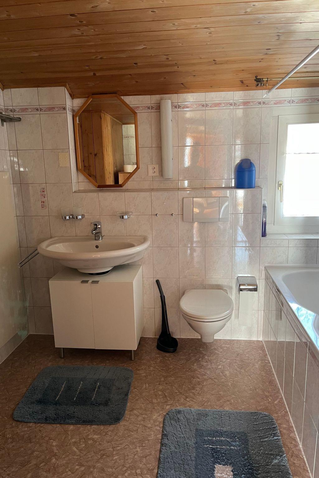This charming holiday home in Flums, ideal for up to 5 people with a baby or toddler, offers comfortable living space on the ground floor level. Equipped with three bedrooms, it allows families and friends to spend their holidays together. A bathroom with bathtub and shower is available. Guests are welcome to bring their medium-sized four-legged friend (up to 60 cm high) as the property is fully fenced and therefore safe for your pet.