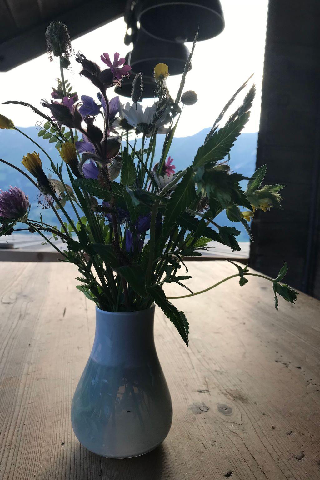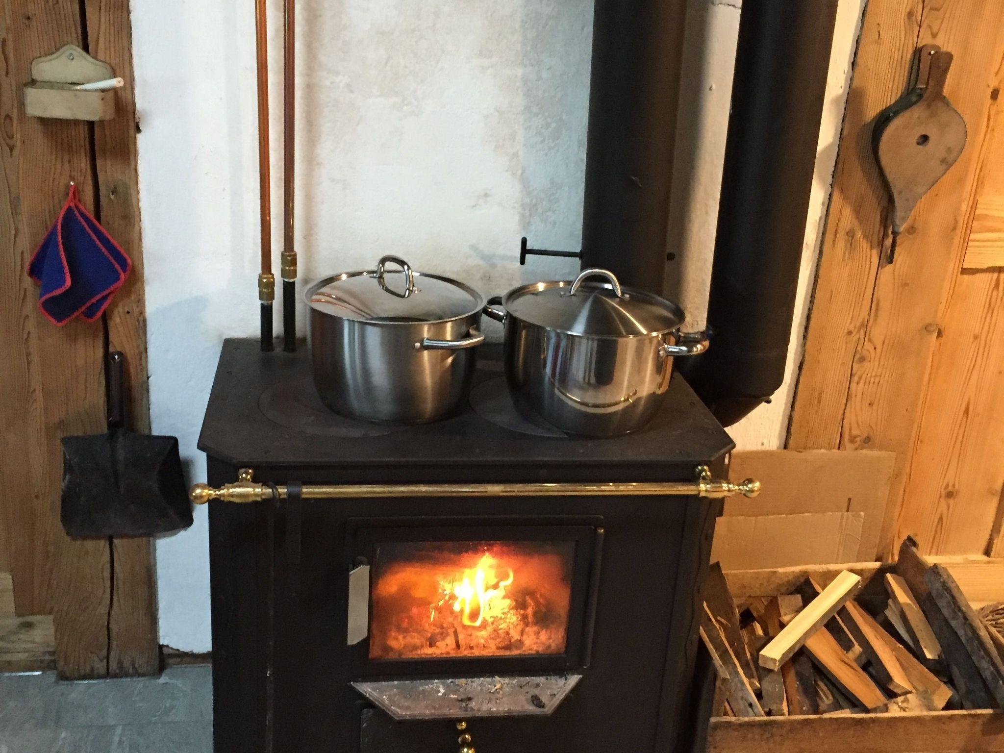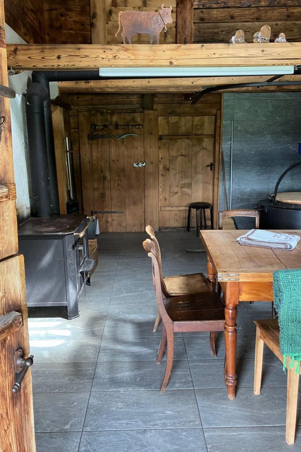 The Hofuri is electricity-free. A cosy kitchen with wood-burning cooker and gas cooker provides the essentials. Barbecue available. The shower is integrated into the kitchen (rear wall). The WC is located in the basement, accessible via a staircase to the outside area.