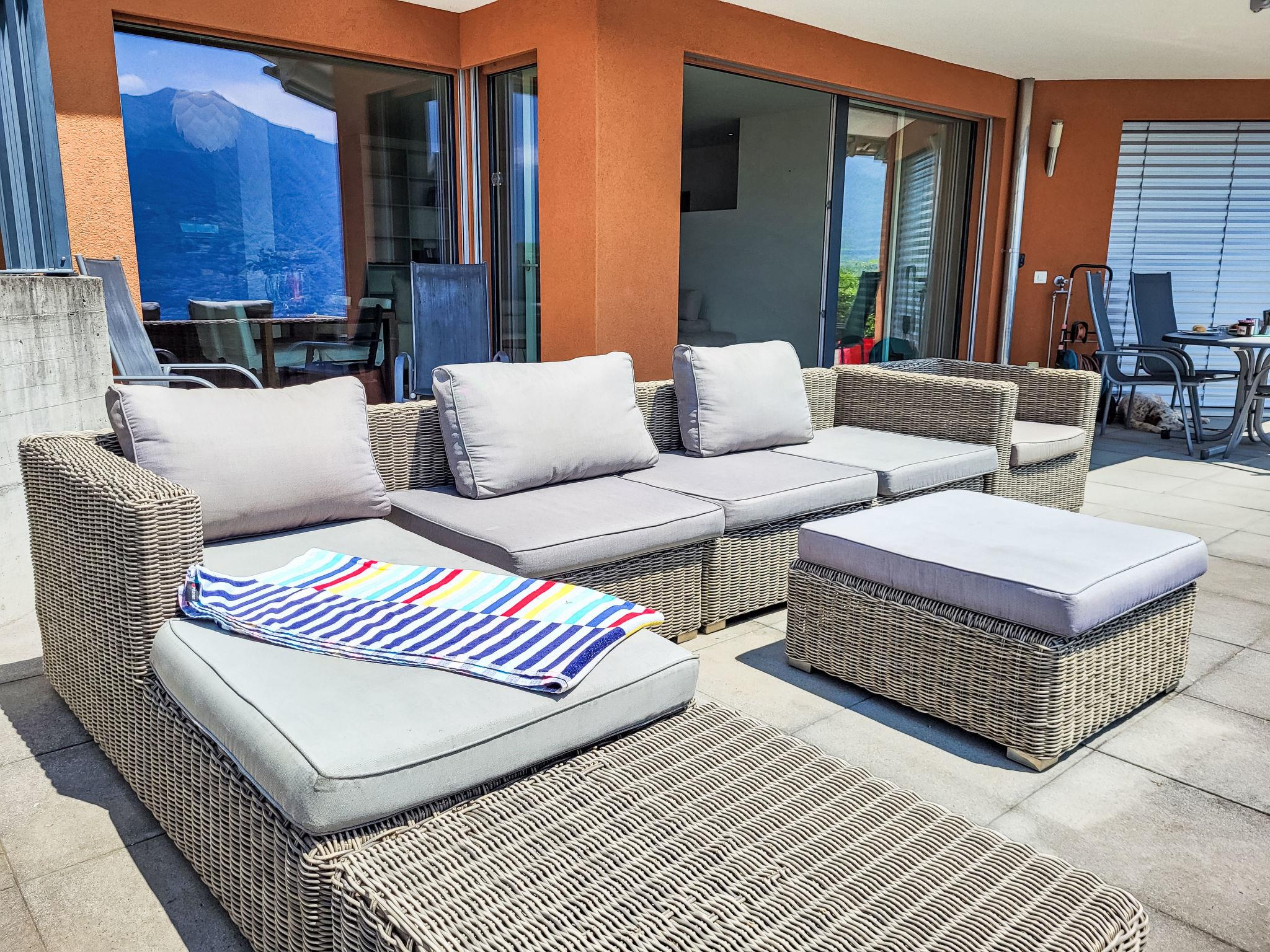 Beautiful, comfortable hillside complex "Residenza Solaria", 4 storeys. 8 apartments in the residence. In the district of Gordemo, in a quiet, sunny position on a slope, 3 km from the lake, in a cul-de-sac. For shared use: terraced garden (not fenced) plants. Narrow motor access to the house. Supermarket 3.6 km, shopping centre 5.1 km, restaurant 3 km, bus stop "Gordemo (Linie 321)" 900 m, railway station "Tenero" 2.7 km, sandy beach "Bagno Pubblico Via Lido, Tenero" 5.9 km, thermal baths "Termali & Salini Locarno" 9 km, bathing lake "Lago Maggiore". Golf course (18 hole) 14 km, minigolf 9 km, walking paths from the house 1 m. Nearby attractions: Castelli di Bellinzona, Falconeria, Kamelienpark, Piazza Grande, Isole di Brissago, Ponte Tibetano, Swissminiatur, Melide. Well-known lakes can easily be reached: Lago Maggiore, Lago di Lugano, Lago di Orta (IT). Hiking paths: Cardada, Tamaro, Monte Verità, Vallemaggia, Centovalli, Onsernone, Valle Verzasca.