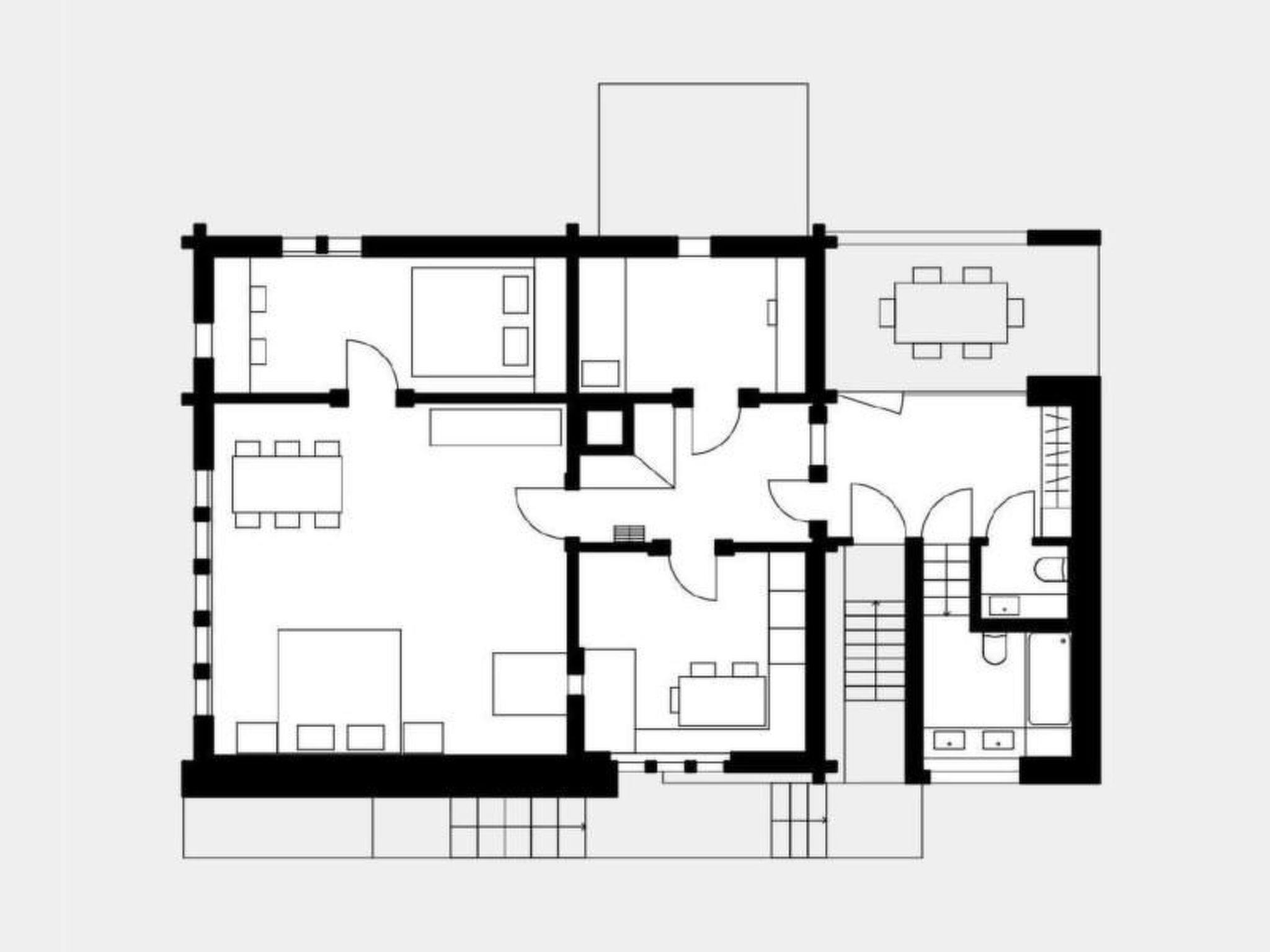 Number of persons 6+2: A baby cot (up to 2 years) is available. The house can accommodate six to eight guests (plus baby). The flat is on the 2nd floor. A door leads from the staircase into the entrance hall, from where the bathroom with bathtub/WC and a separate WC lead off to the left. To the right is a corridor. From there you enter the very cosy kitchen and opposite into a double bedroom. Straight ahead you enter the living room with a double bed. From the lounge you enter the third double bedroom. The flat has two additional beds on a sleeping platform, which is only accessible via a vertical ladder. The flat can be rented for six people, the additional beds on the sleeping platform are charged as over-occupancy and must be noted by the guest in advance.