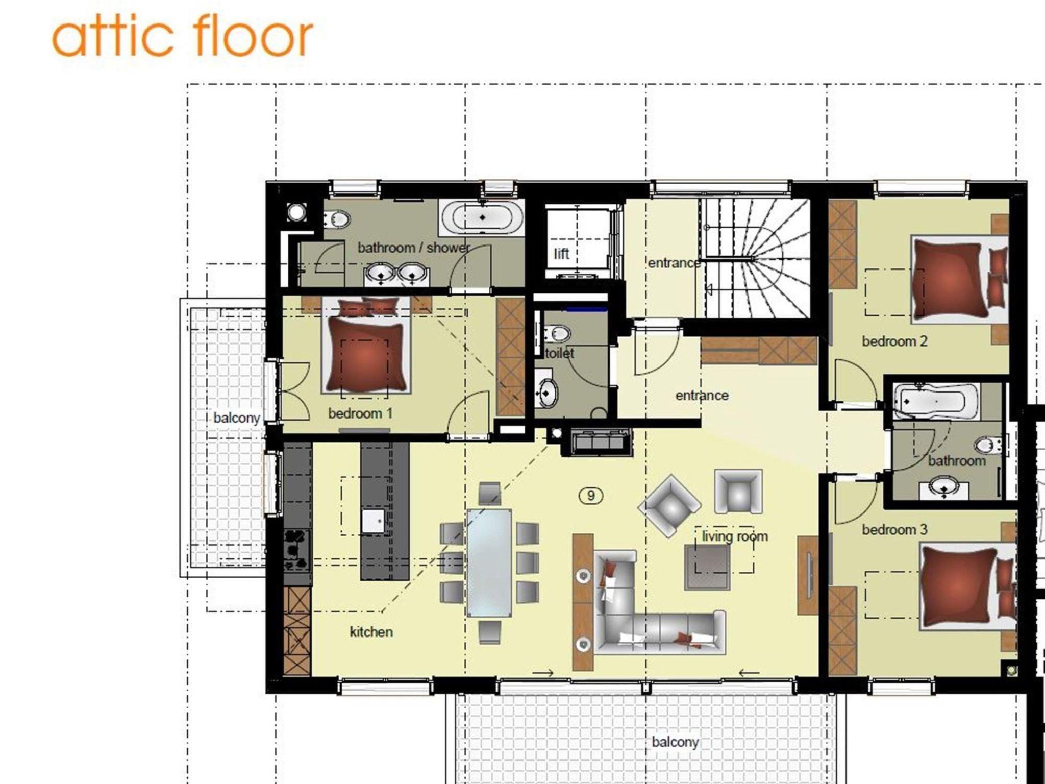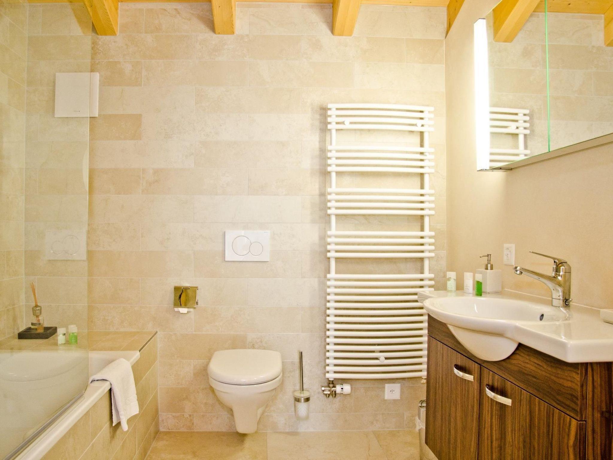 The 147m2 4.5-room apartment on the top floor chalet has three bedrooms with double bed, a bathroom with bath, shower and toilet, a bathroom with bath and toilet and a separate toilet. In the spacious, bright living/dining area with open kitchen and fireplace you can enjoy a relaxing holiday. From the large balcony you can enjoy panoramic views of the mountains.