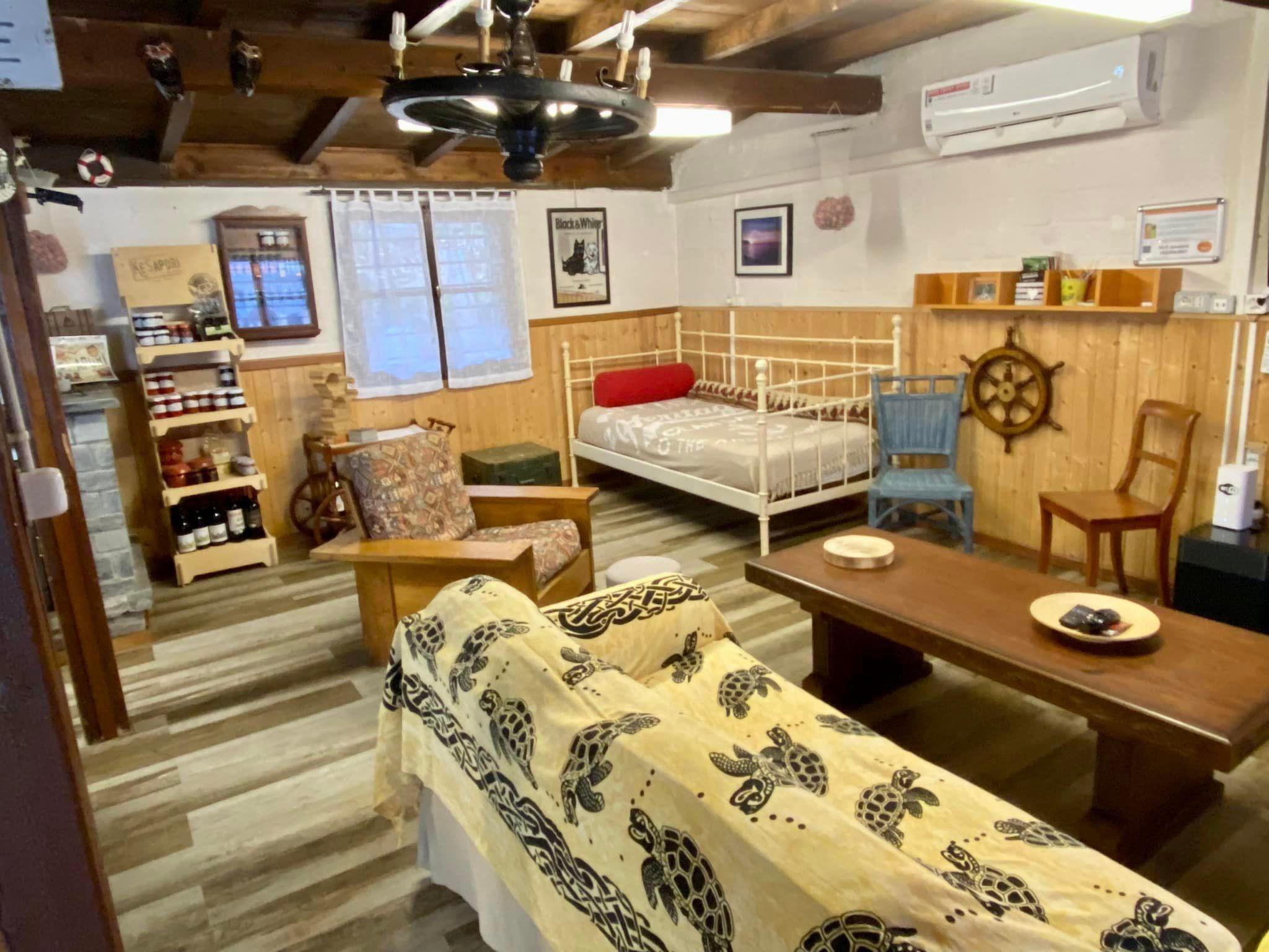 Inside, the dwelling has spacious, welcoming and functional rooms. The living room, with a large room equipped with a coffee table, armchair, study and sofa, a bookcase with books in various languages and board games, invites you to relax. Next to the fireplace, one can enjoy a corner dedicated to 'Ke Sapori' products from southern Italy, available for purchase. The bedrooms offer rustic comfort with a double bed and two single beds, LCD TV with Blu-ray player and films in various languages, and dedicated space for your personal belongings. The open-plan kitchen is fully equipped with a large table, sideboard, crockery, pots and pans, and modern appliances such as a Moka and Nespresso coffee machine, toaster and microwave.