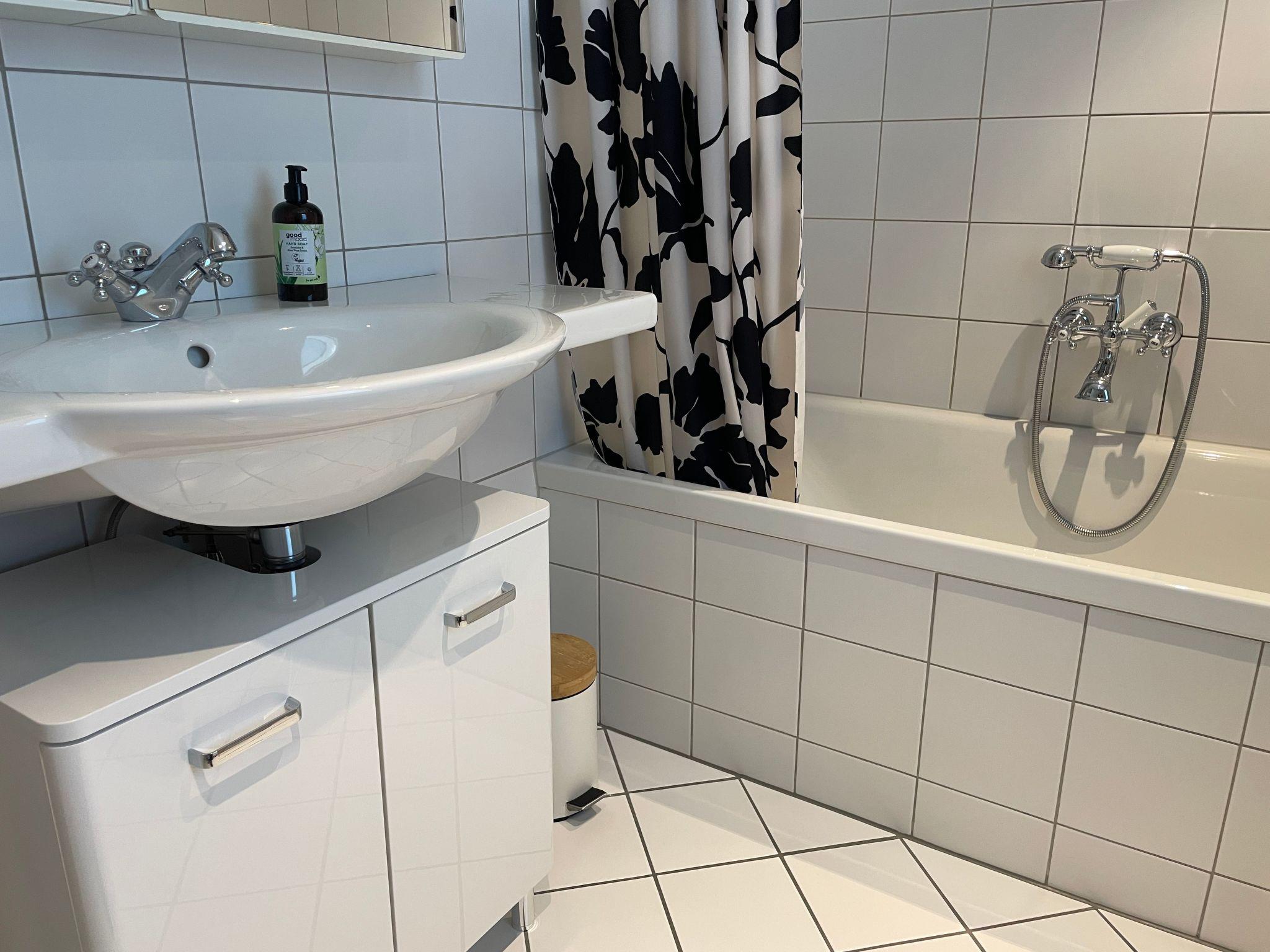 The bathroom is equipped with a washbasin, a toilet (Closomat) and a bathtub with shower, which provides relaxation after a long day of exploring the surroundings.