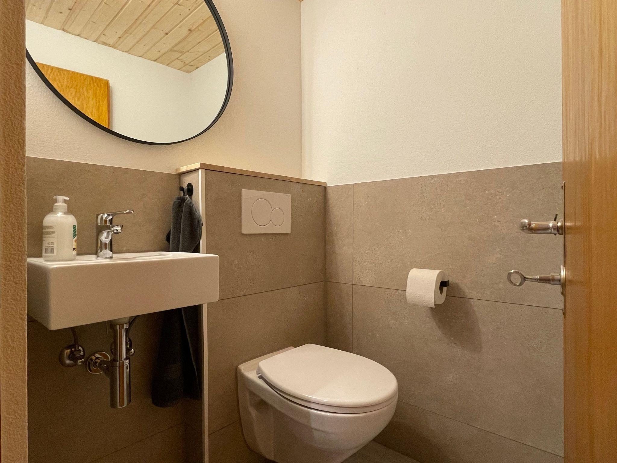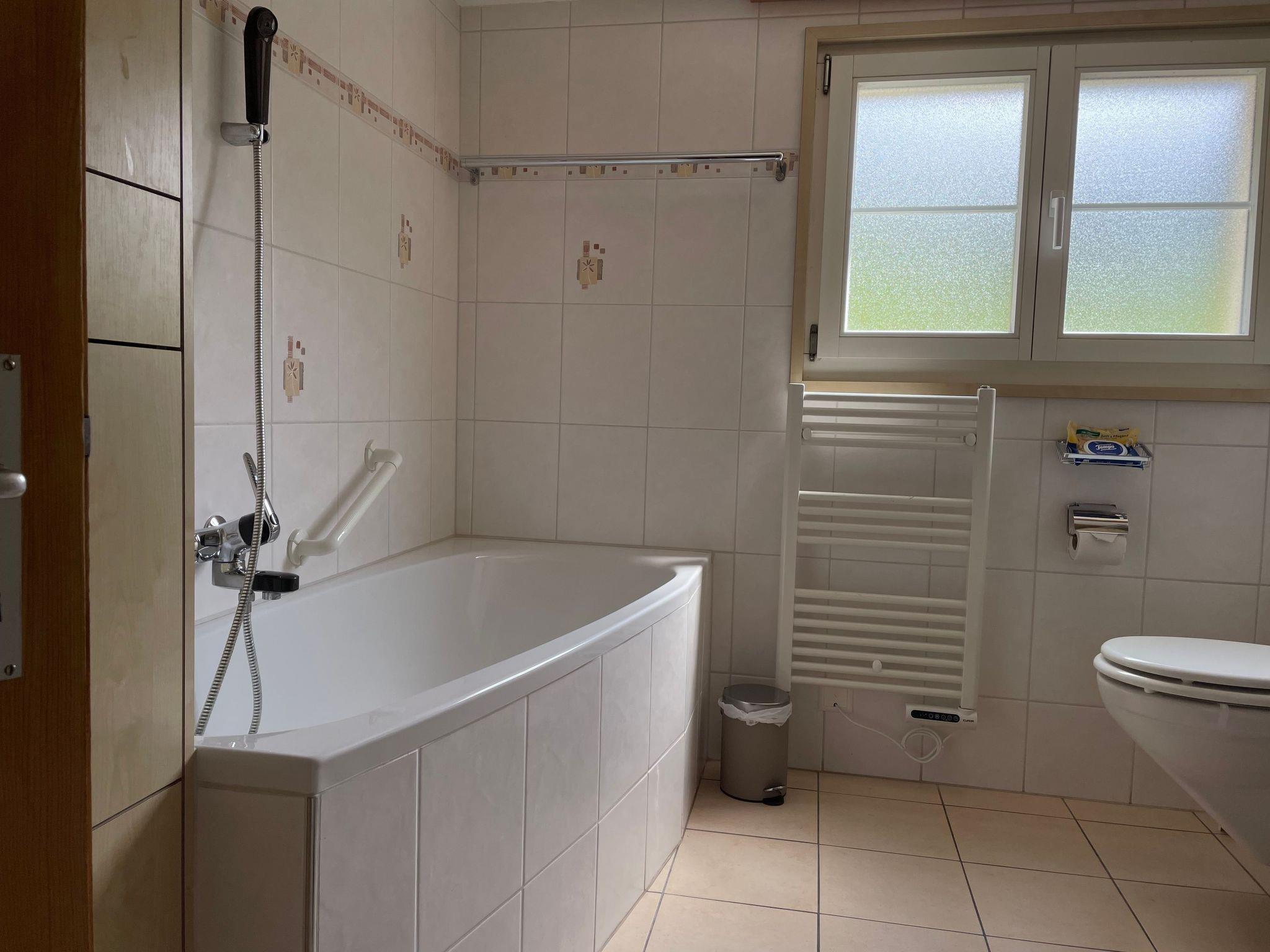 The flat has an outdoor seating area with a garden table and parasol - ideal for al fresco dining or relaxing after a day's hiking. Directly next to it is a lawn area that is ideal for children to play in, the area including the seating area is fenced and can therefore be used privately.