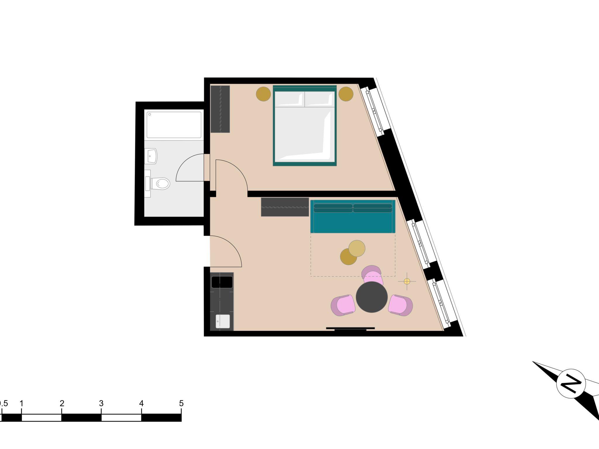 - Number of bedrooms: 1