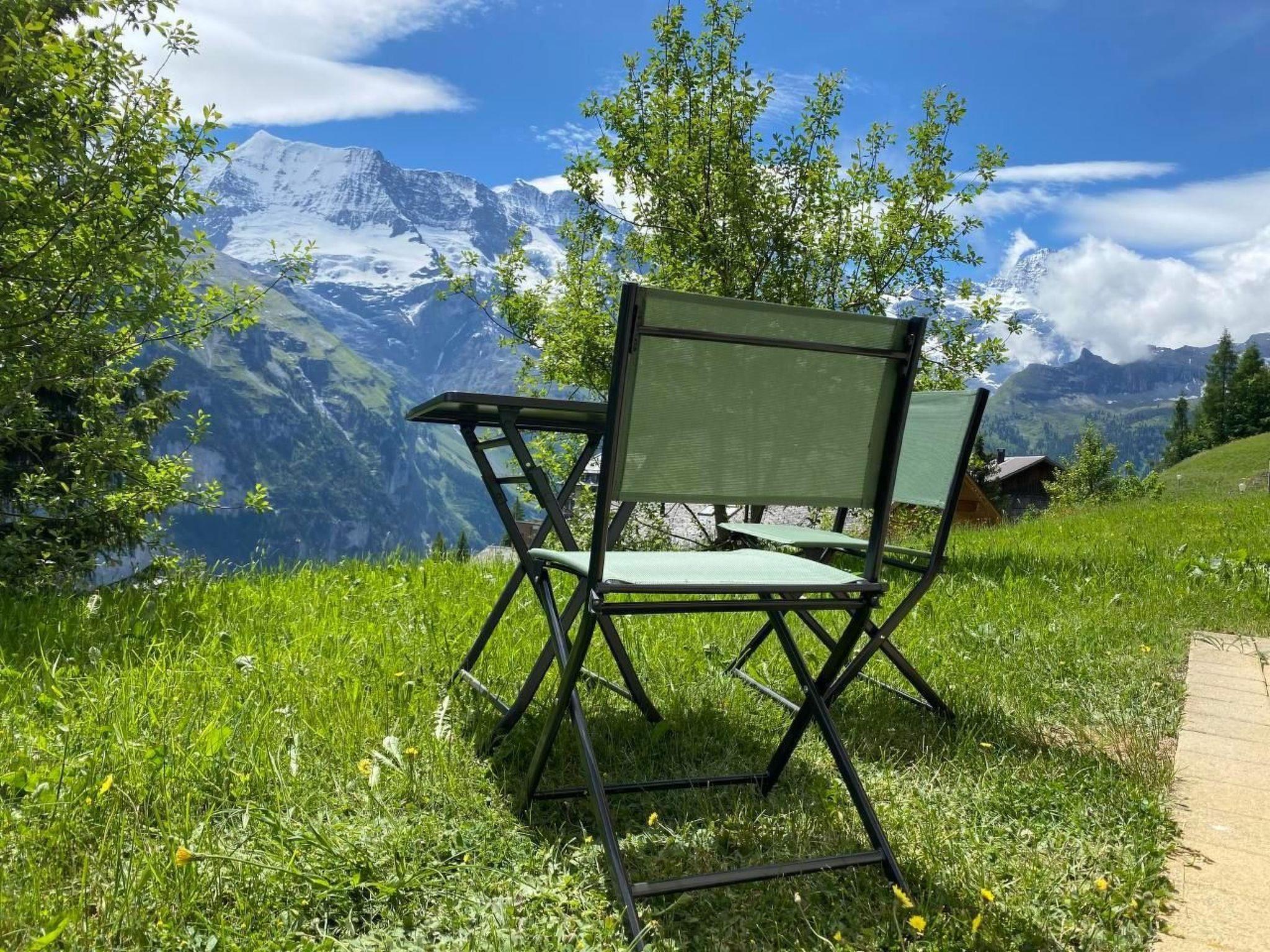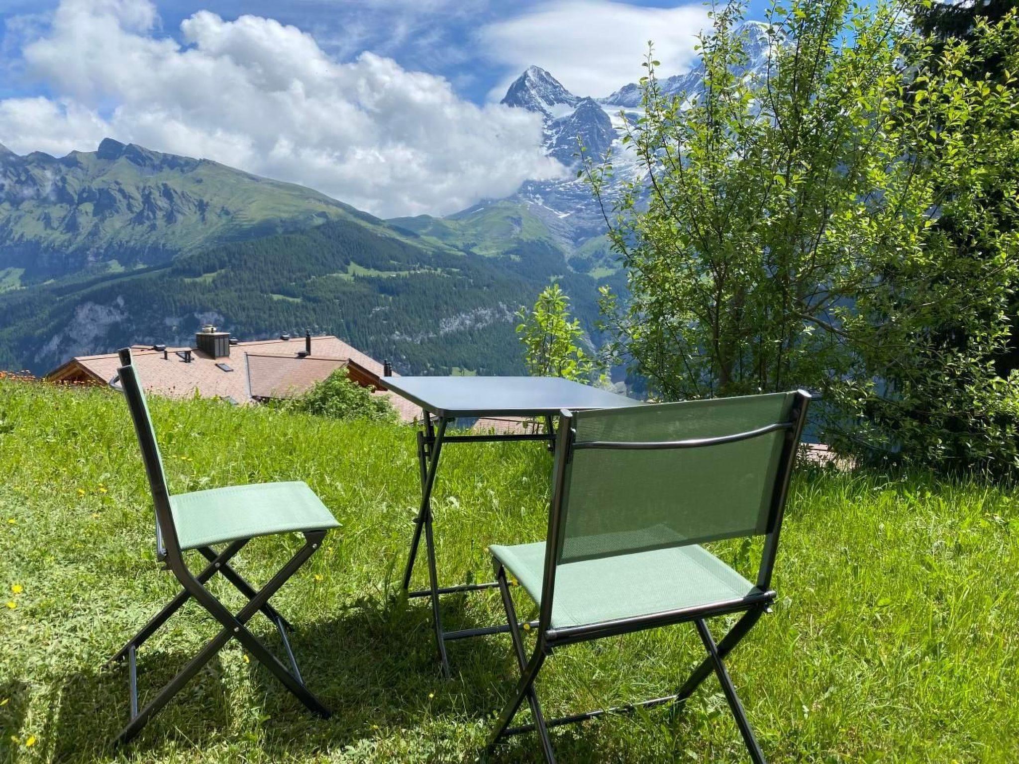 The apartment is on the ground floor and offers a patio with wonderful view to Eiger, Mönch and Jungfrau.
