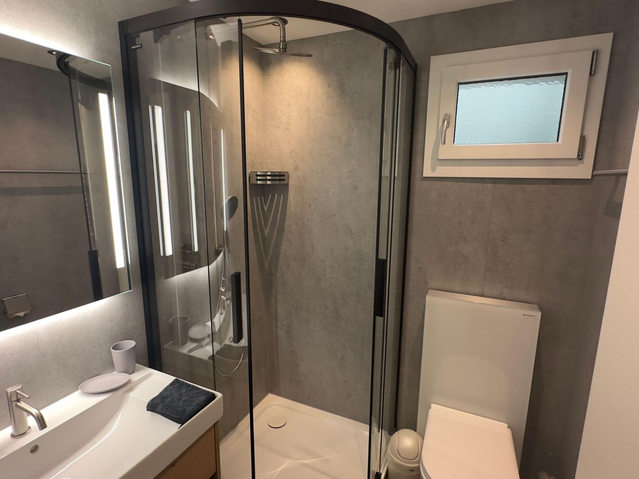 Inside, an oasis of well-being awaits you: a cosy living room equipped with satellite TV, Wi-Fi and CD player for cosy evenings, a comfortable bedroom with two beds, high-quality mattresses and Nordic duvets for optimum sleeping comfort as well as a modern, fully equipped kitchen that leaves nothing to be desired - including a dishwasher, coffee machine and induction hob.