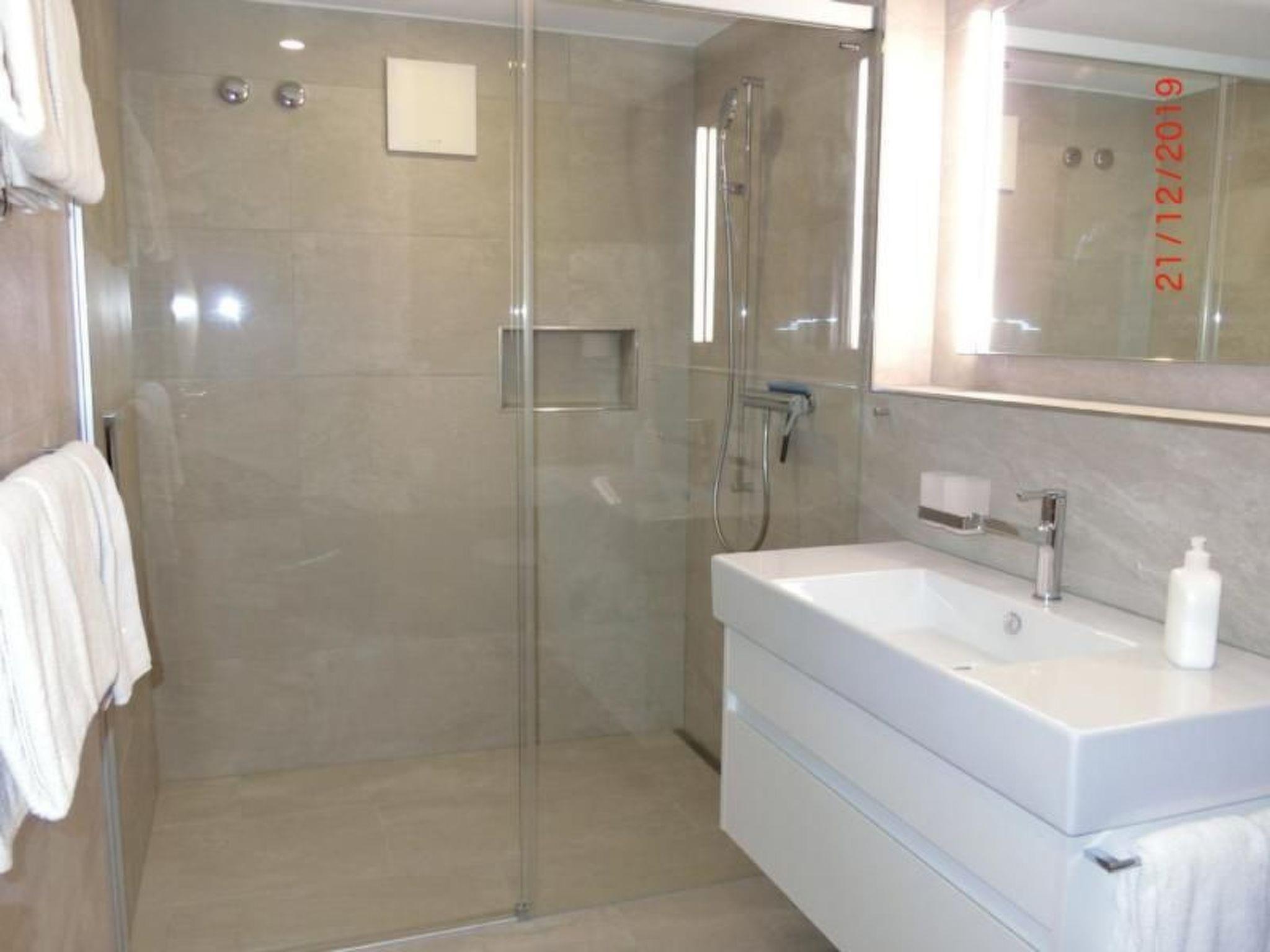 The spacious bathroom has a large shower with glass partition, a washbasin with ample storage space and WC. A hairdryer is available for our guests. The additional separate WC is ideal for occupancy by more than 2 people.