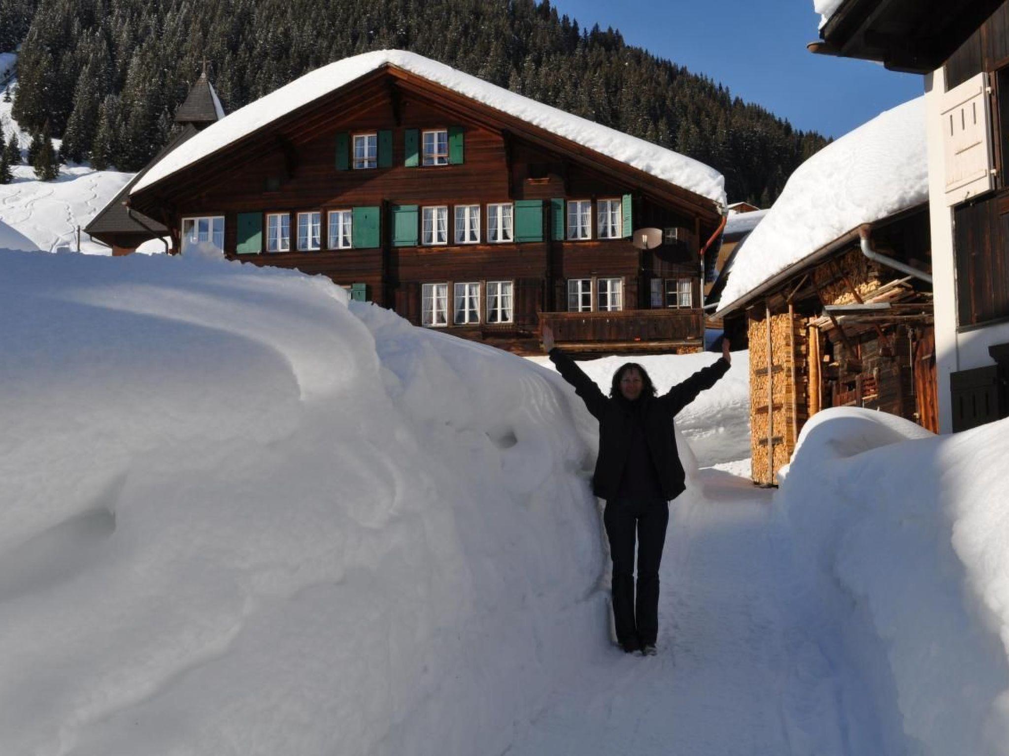 The Chalet bim Chilchli stands in the middle of a peaceful meadow, slightly set back from the village road, and offers a magnificent view of the surrounding mountains. The flat's balcony is the ideal place to enjoy the sun and fresh mountain air while taking in the magnificent view.