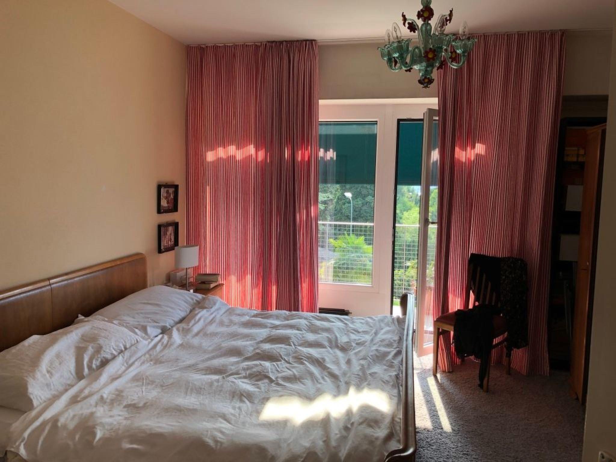 Comfortable flat, furnished in a personal stile of the 60ties, with view upon lake and mountains. The architect was the well known Snozzi, himself from Ticino. The flat is close to the centre of Locarno, to be reached in a 10minutes walk or by Bus. Besides Swimmingpool and Sauna there is a garden. From there you can easily discover lake, mountains and very traditional valleys by walking, by car or public buses . You will enjoy the changing colors in the view, every day different...There are shops for all the necessary things very close to the flat or down in Minusio. There is a parking reserved for you; an elevator will bring comfortably you to the flat on the 4th floor. Swimmingpool and Sauna have lately been renewed. WLAN available; bussstopp infront of the house. The hosts are very friendly and helpful if necessary.