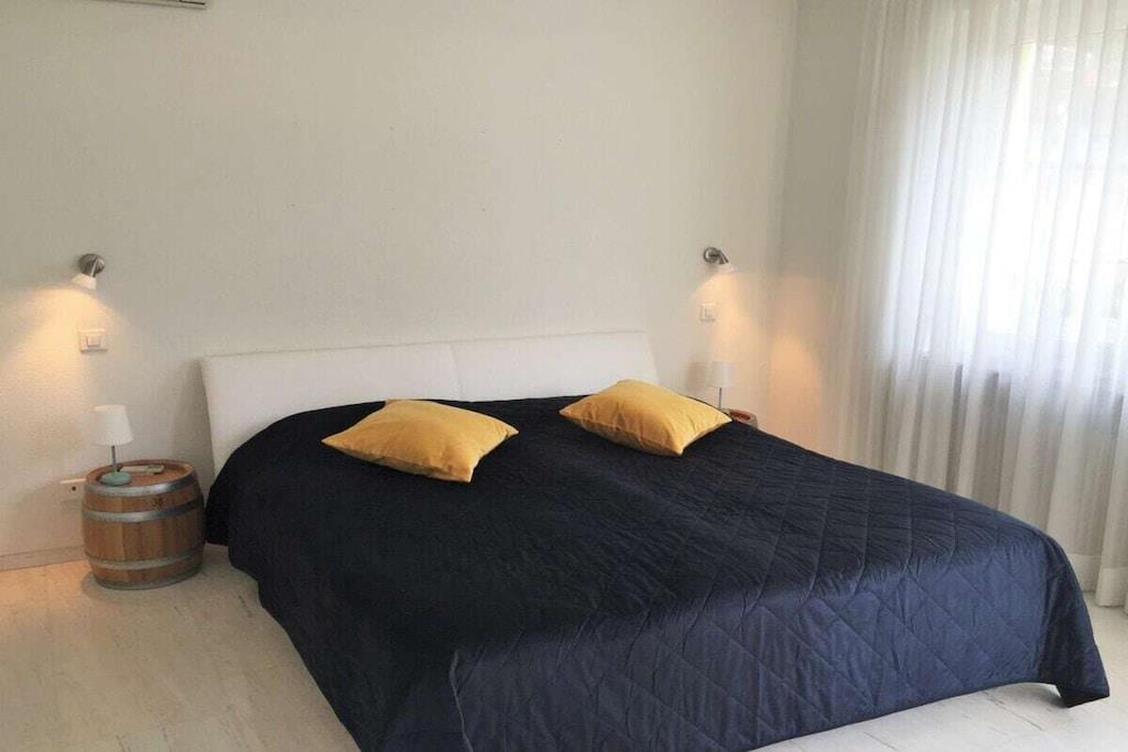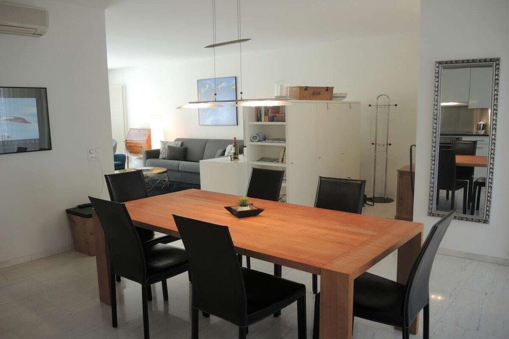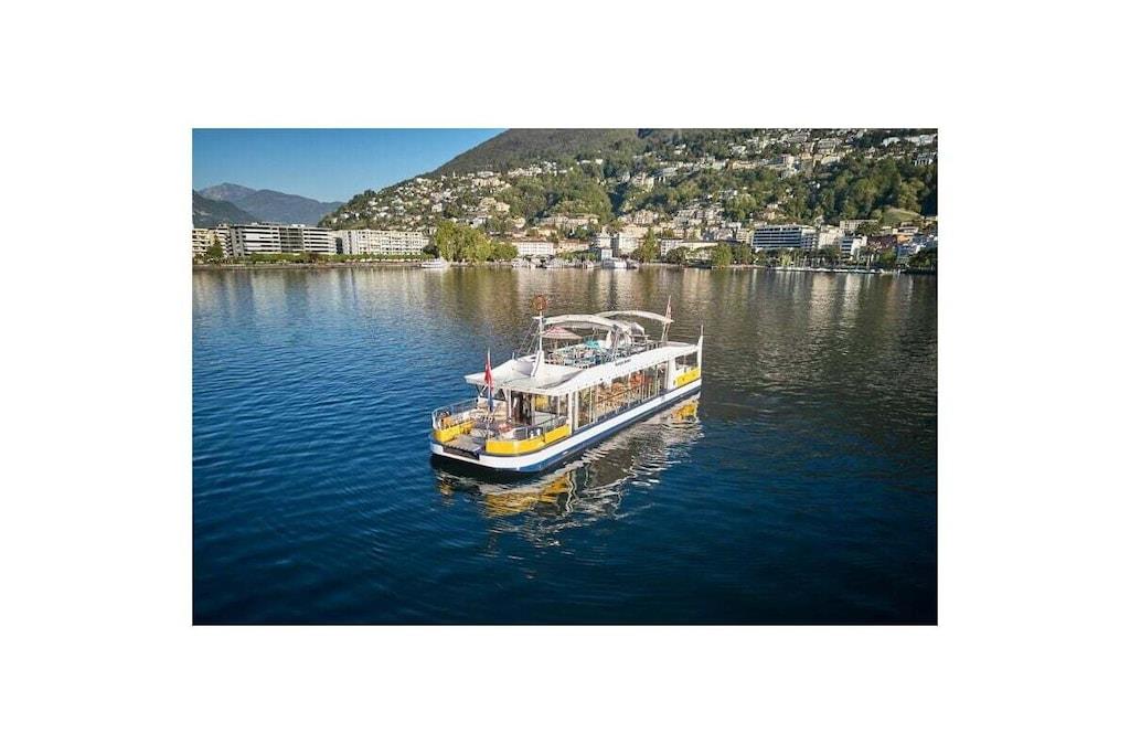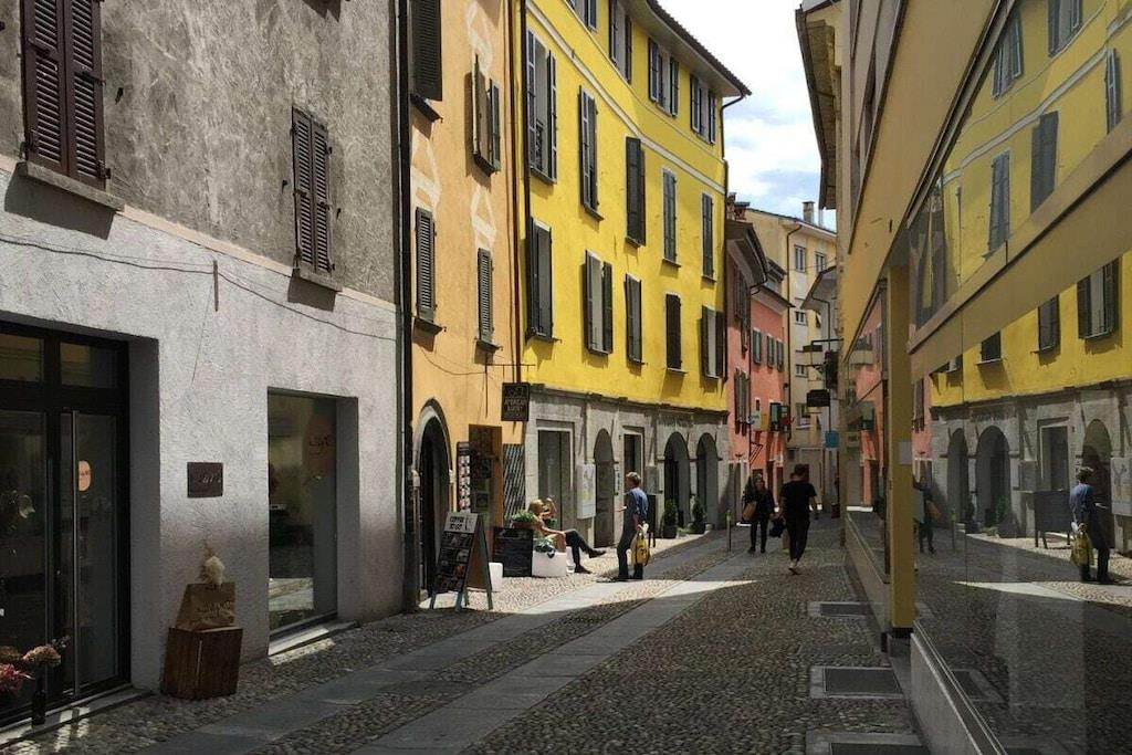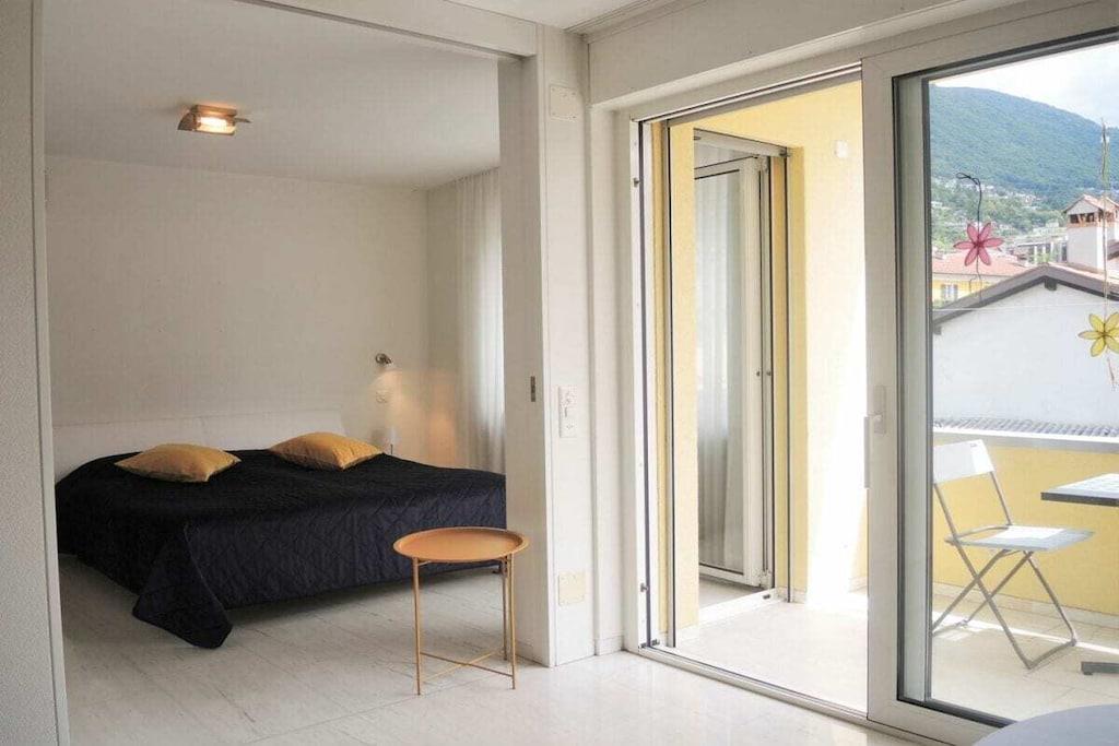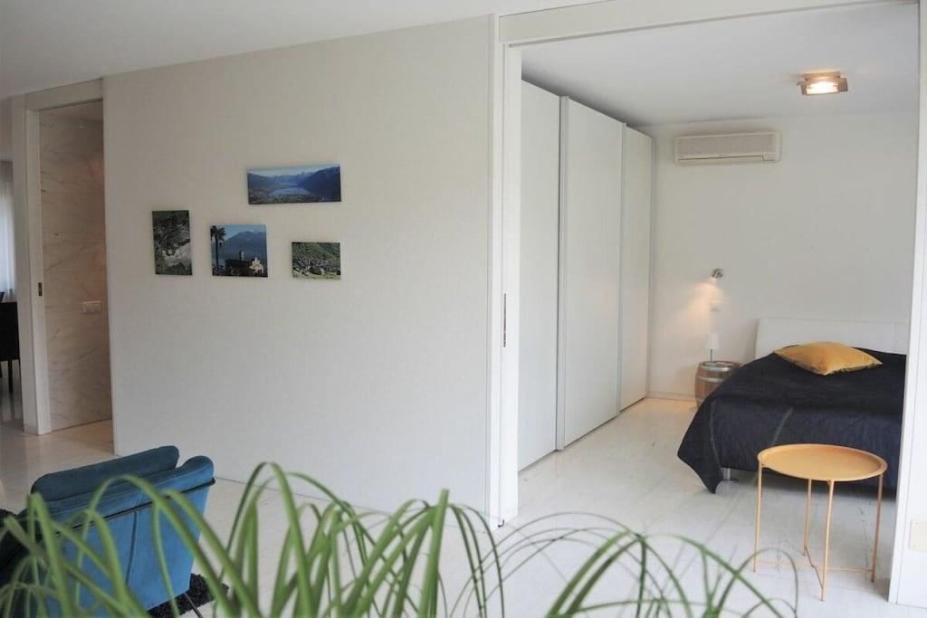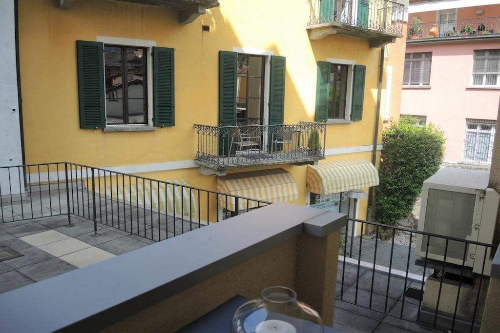 This apartment is located in the heart of Locarno's old town, tucked away on a side street yet right in the center of it all. Just a few steps away from the action. Perfect for all city lovers who arrive without a car. The city, with its diverse cultural offerings, sights, and beautiful old town houses, will delight you. • 2.5-room apartment, 60 m2 • 1st floor (elevator) • 2 to 4 people • Modern, tasteful furnishings • Central location • Entrance with wardrobe • Open-plan living/dining room • Dining table with 6 chairs • Balcony with small dining table and chairs, parasol • Small balcony overlooking the backyard and shared terrace • Sofa, convertible to sleep 2 (160x90), coffee table • Secretary with office chair • Large flat-screen digital TV with soundbar • Wireless internet • Air conditioning in the living room and bedroom • Electric shutters on all windows • Open-plan kitchen with modern built-in appliances • Ceramic hob • Refrigerator with freezer compartment, dishwasher • Toaster, kettle • Nespresso coffee machine (please bring your own capsules) • 1 double bedroom, 2 mattresses (80x200) (with sliding door) • Bathroom with shower, toilet, double sink . • Pets not allowed • Non-smoking (please smoke outside) • Public parking, e.g., Castello parking garage, is approximately 500 m away • Bus stop approximately 300 m away