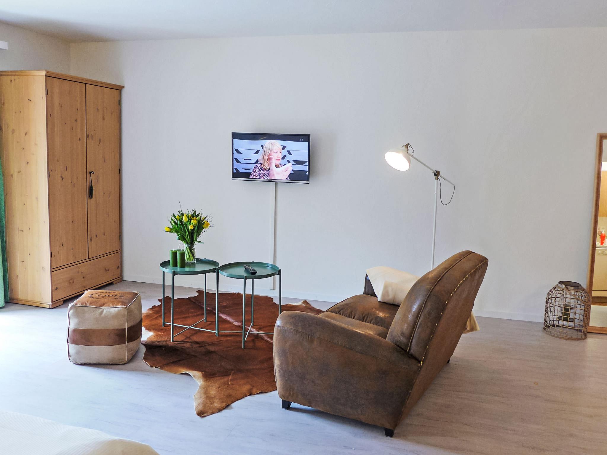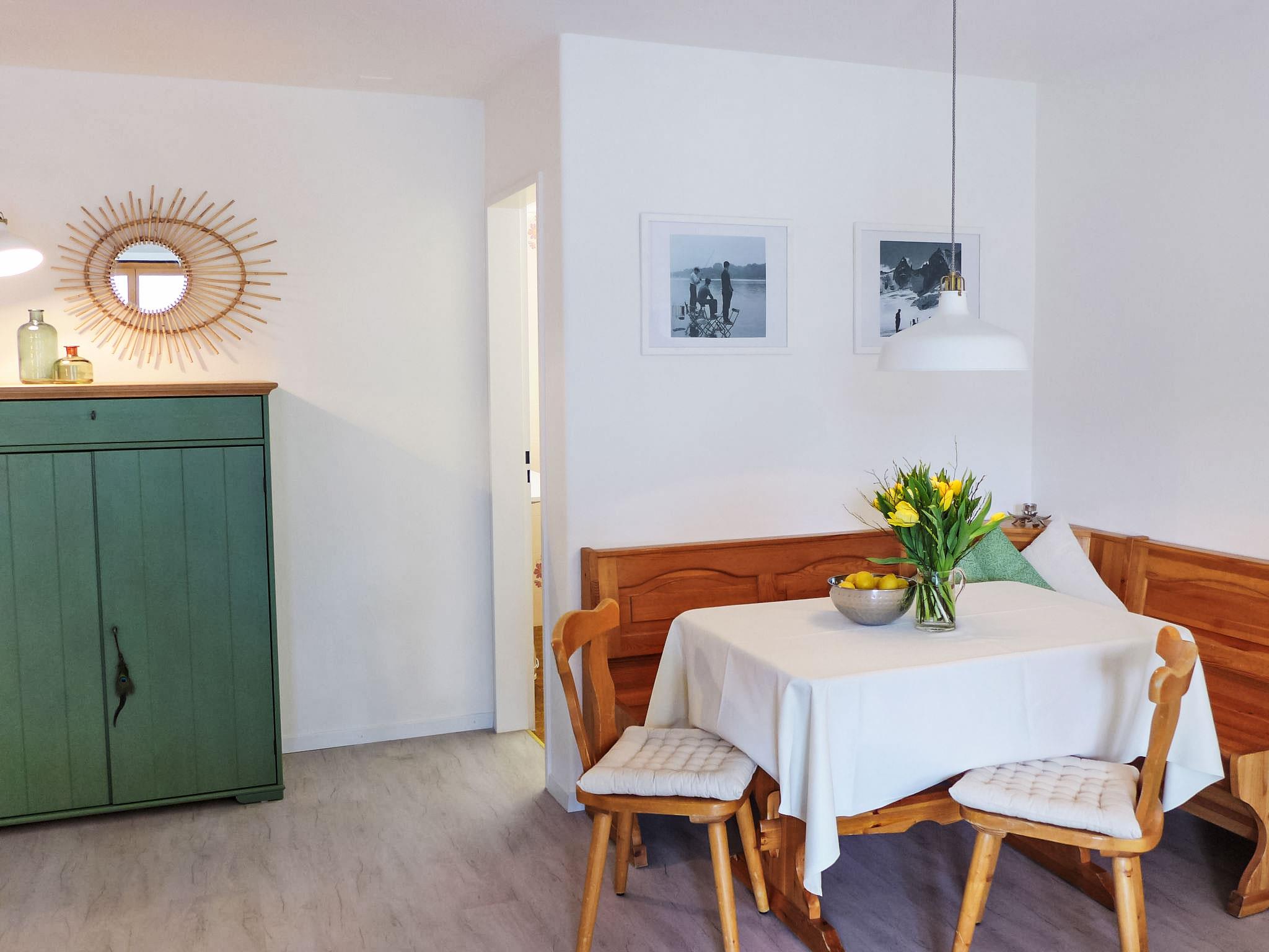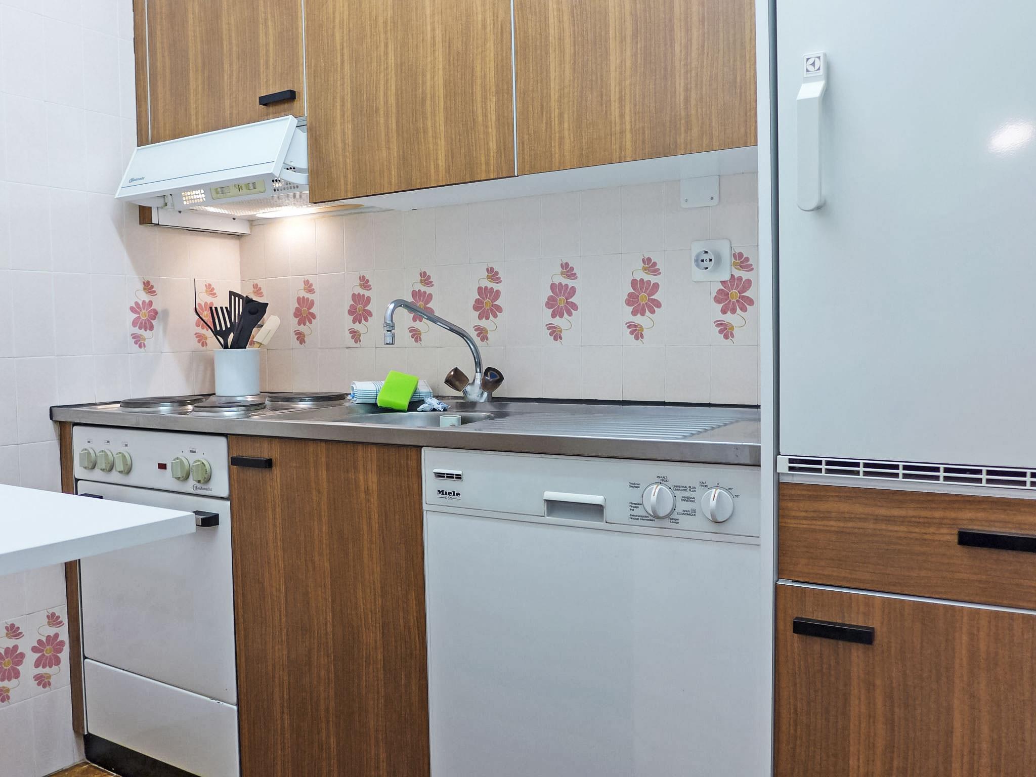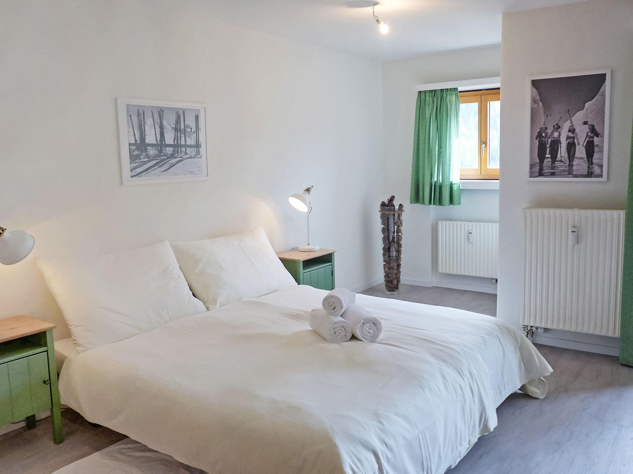 "Chesa Bursella 21", 1-room apartment 41 m2 on 1st floor. Spacious, partly renovated in 2017, cosy furnishings: open living/sleeping room with 1 double bed (2 x 90 cm, length 200 cm), dining nook and TV. Exit to the balcony, east facing position. Small kitchen (oven, dishwasher, 4 ceramic glass hob hotplates, toaster, kettle, electric coffee machine). Shower/WC. Heating. Balcony furniture (2). Very beautiful view of the mountains and the valley. Facilities: hair dryer. Internet (WiFi, free). Garage space n 21, height 195 cm, width 235 cm. Please note: maximum 1 pet/ dog allowed. No lift.