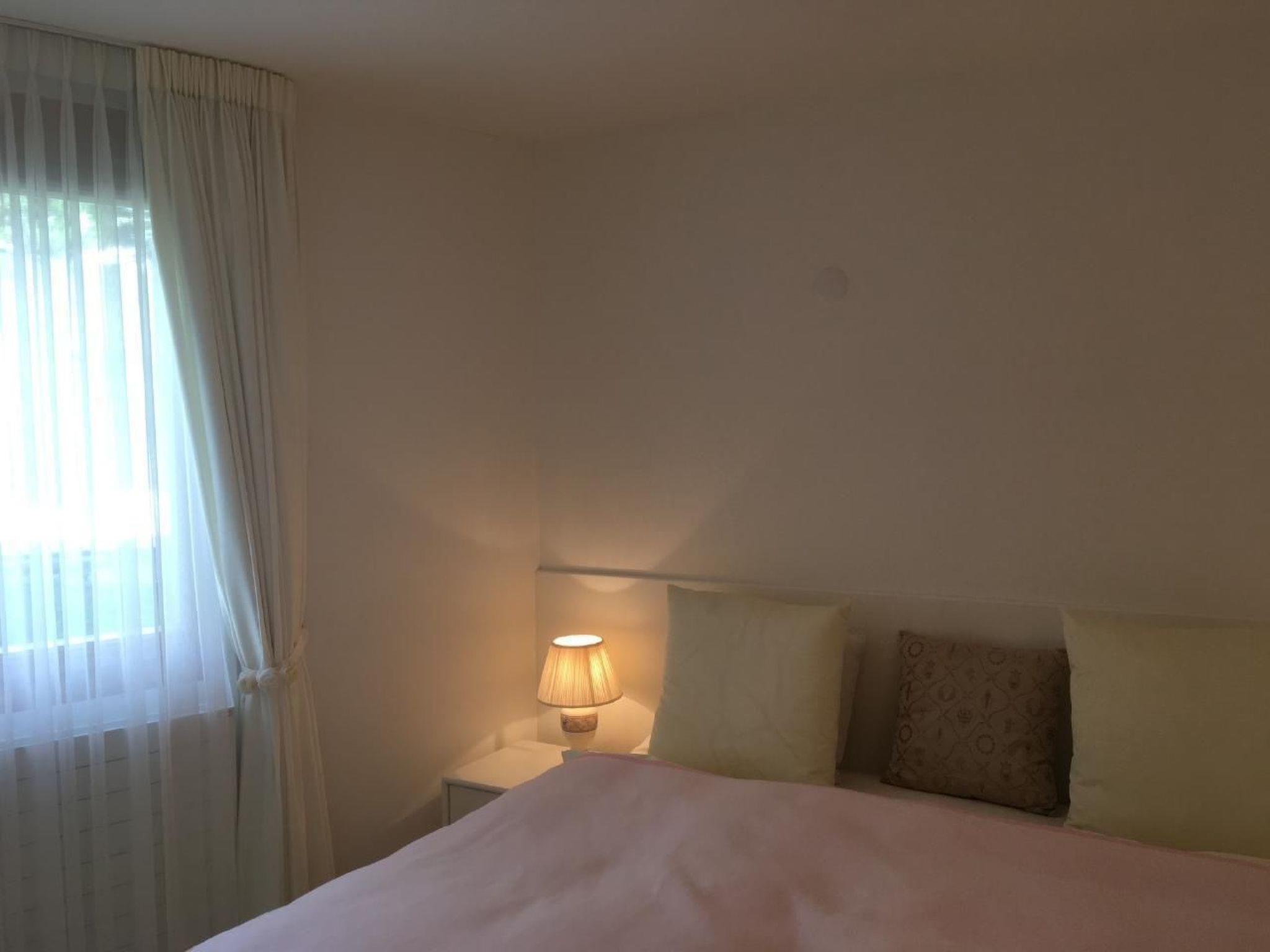 First-class 2-room flat with separate kitchen, bathroom and large outdoor seating area. The elegantly furnished flat has a living room with a sofa and a dining area for four to six people. The second room is a bedroom with two single beds, bedded like a double bed. There are plenty of cupboards in all rooms and in the corridor. The kitchen is separate and has a small area with a hob, dishwasher, oven and a seating area for two people. The bathroom has a bathtub, a WC, a double washbasin and a mirror cabinet. In front of the living room there is a large seating area with a view of the mountains and plenty of sun from around 11 am. A parking space in the underground car park is reserved for you (parking space no. 6). There is also a ski room with a ski locker in the basement (no. 5). Use of the communal washing machine and tumble dryer in the basement is possible. The flat is only rented to adults.
