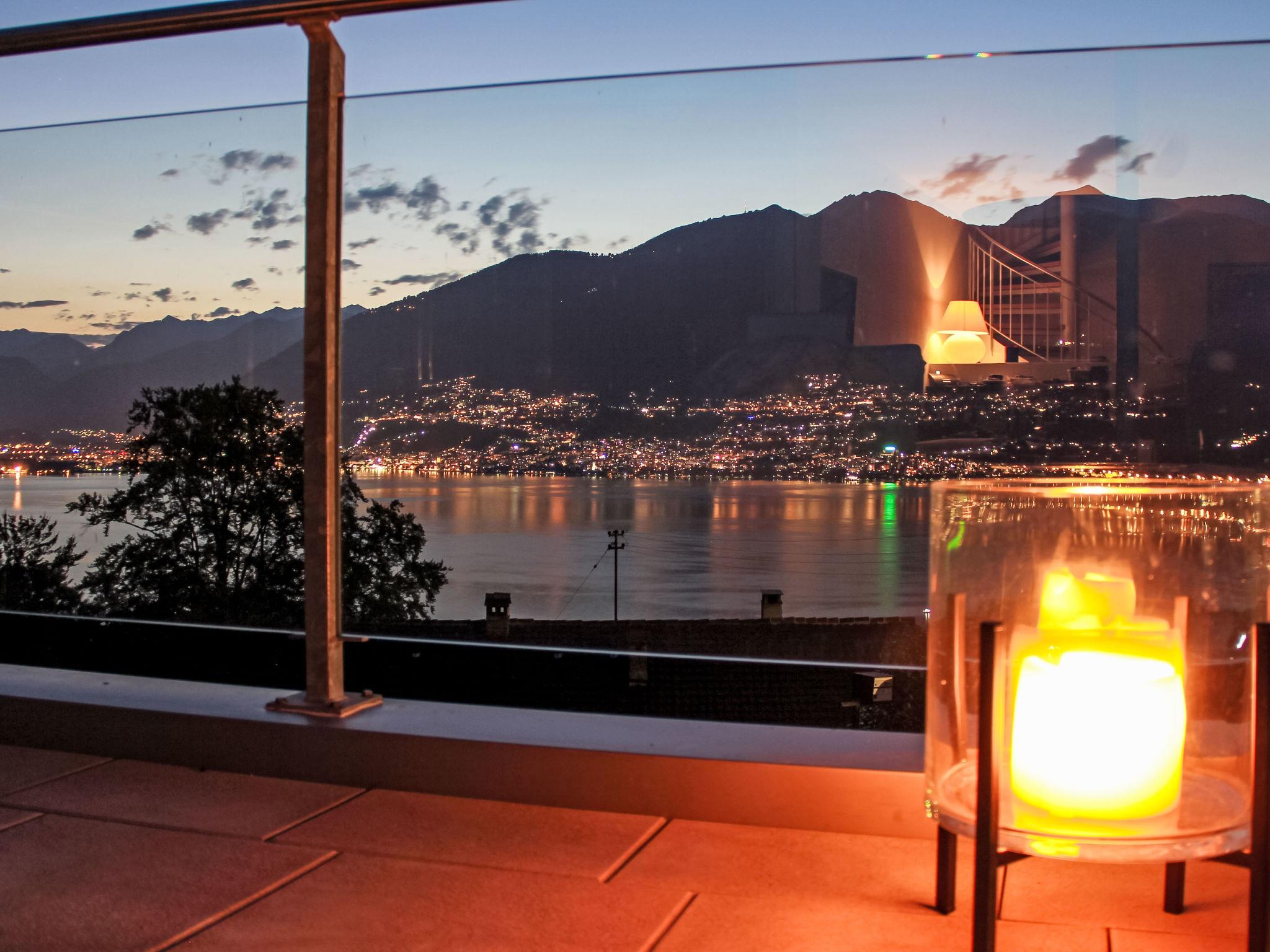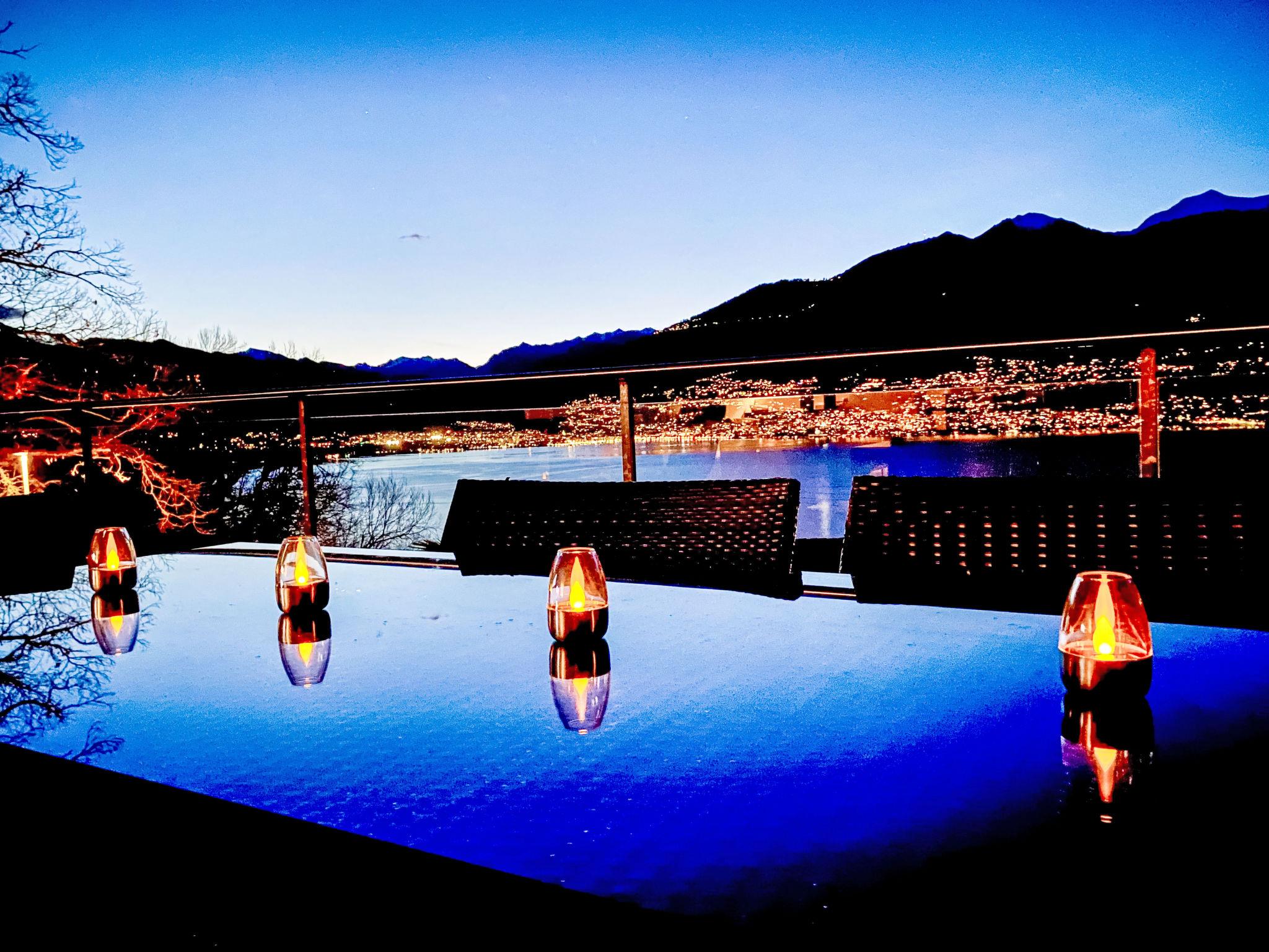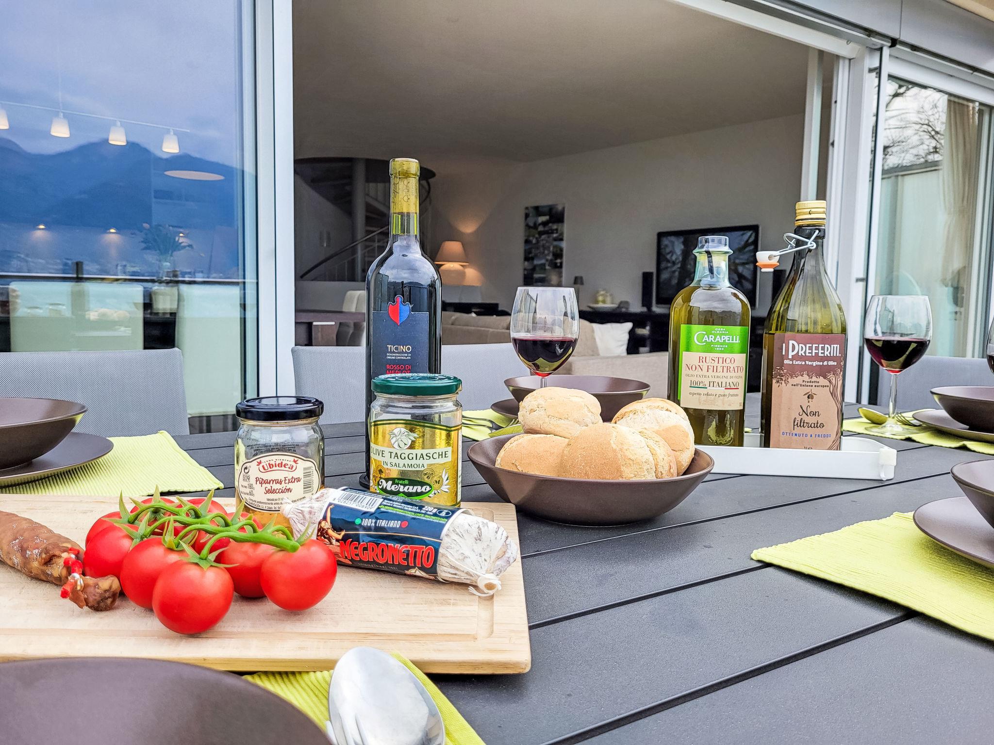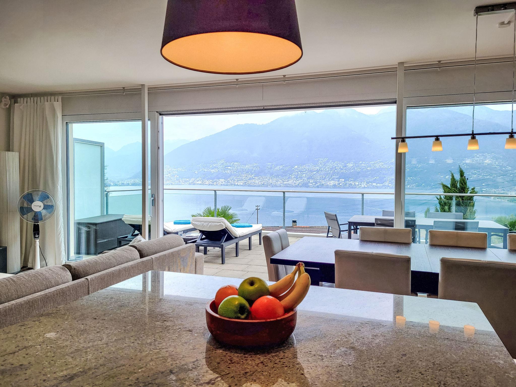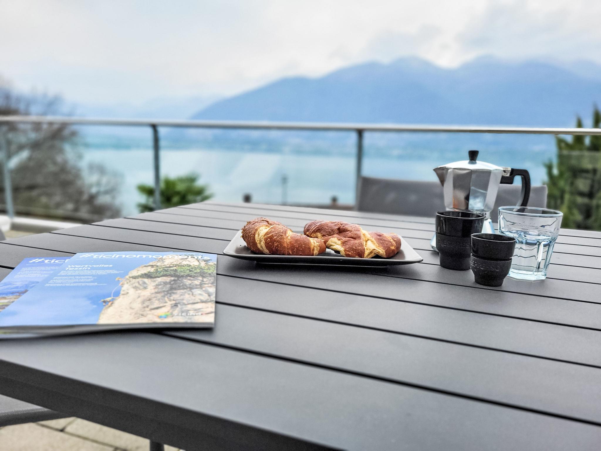 "Splendid Maggiore View", 3-room maisonette 120 m2 on 2 levels, north-west facing position. Object suitable for 4 adults + 1 child. Spacious and bright, comfortable and modern furnishings: open large living/dining room with panoramic window with dining table, kitchen corner, TV, flat screen and DVD. Exit to the terrace. Open kitchen (oven, dishwasher, 4 ceramic glass hob hotplates, toaster, kettle, electric coffee machine, Capsules for coffee machine (Nespresso) extra). Sep. WC. Floor heating. On the lower ground floor: shower/WC. Upper floor: (spiral staircase), 1 double bedroom with 1 bed (90 cm, length 200 cm), 1 french bed (140 cm, length 200 cm), air conditioning. Exit to the balcony. 1 double bedroom with 1 double bed (160 cm, length 200 cm), air conditioning. Exit to the balcony. Bath or shower/WC. Balcony 15 m2, north-west facing position, large terrace 32 m2 partly roofed, north-west facing position. Terrace furniture, barbecue (portable), deck chairs (2). Please note: non-smokers only. The apartment is spacious, bright and comfortable, with modern furnishings. It features a large living area that flows seamlessly onto a large terrace, creating a harmonious blend of indoor and outdoor spaces. The expansive terrace extends the living space and provides ample room for relaxing and entertaining, while also offering breathtaking views of the lake and mountains. As day turns to night, the terrace becomes a perfect vantage point for enjoying the sunset over the mountains and the twinkling lights reflected in the tranquil lake, both from the stars and from the surrounding towns and villages. The rooftop swimming pool offers magnificent views of the shimmering lake and majestic mountains. The apartment is located in a quiet cul-de-sac, next to a waterfall and hiking trails. NL-00007133