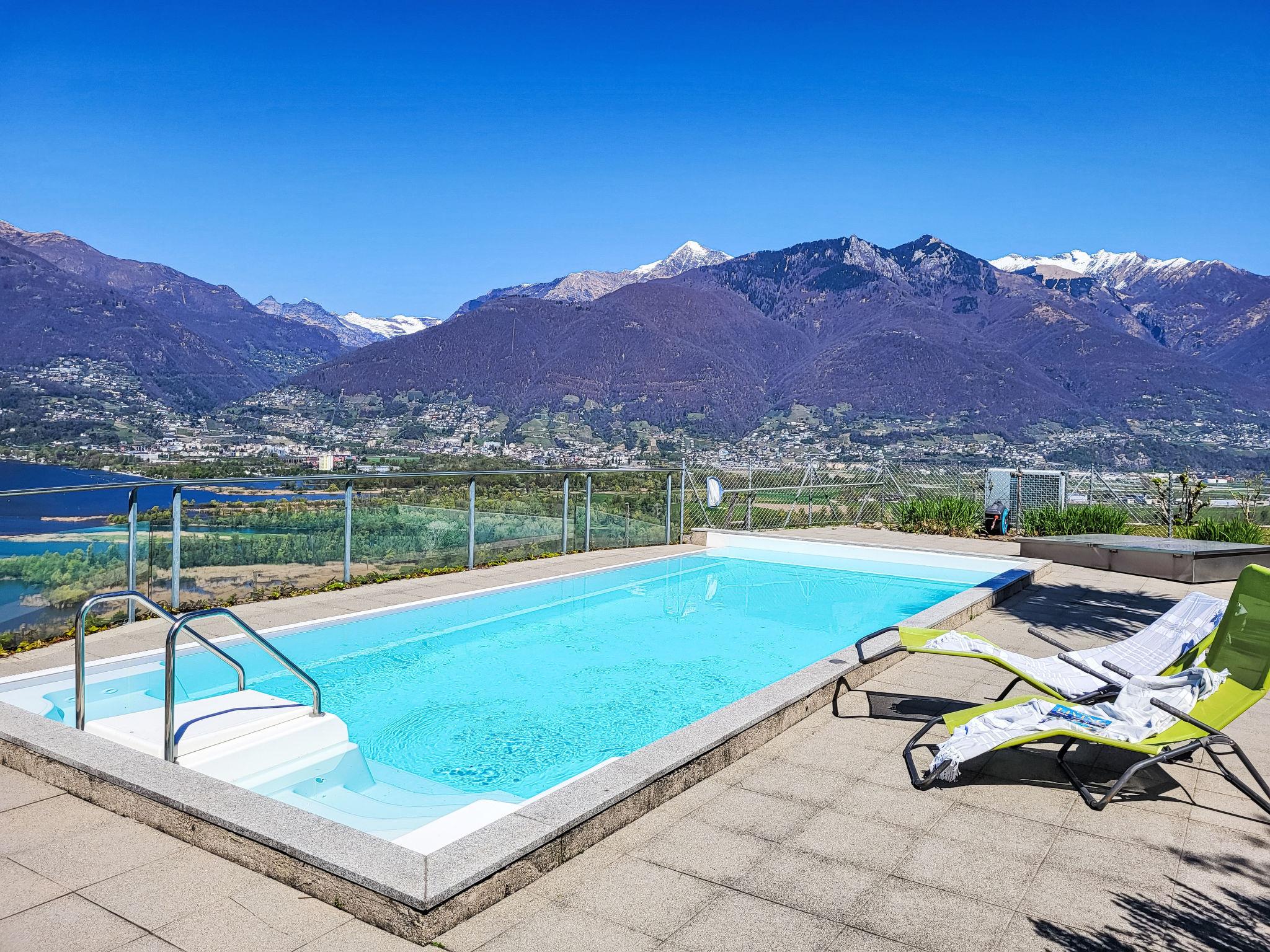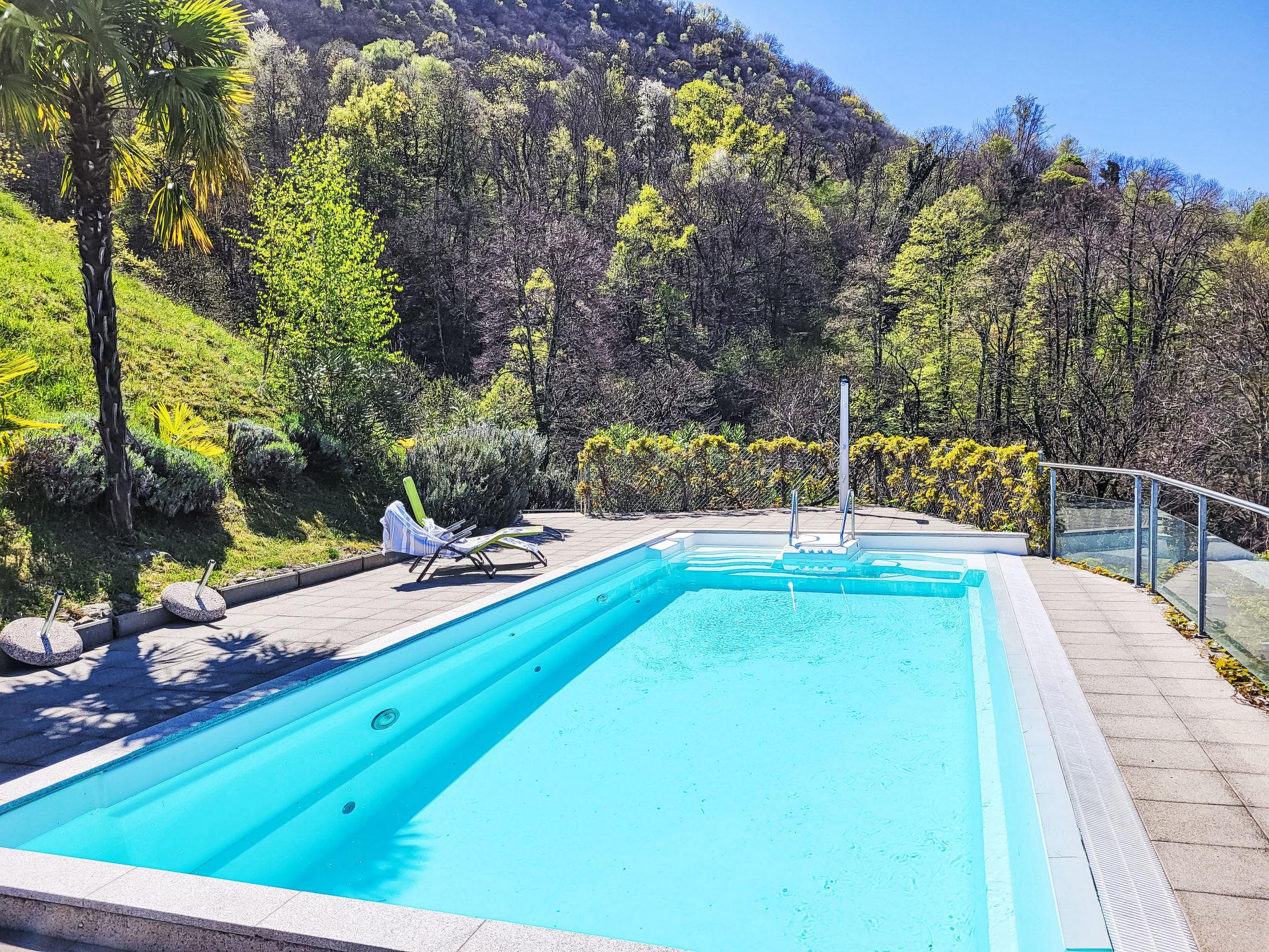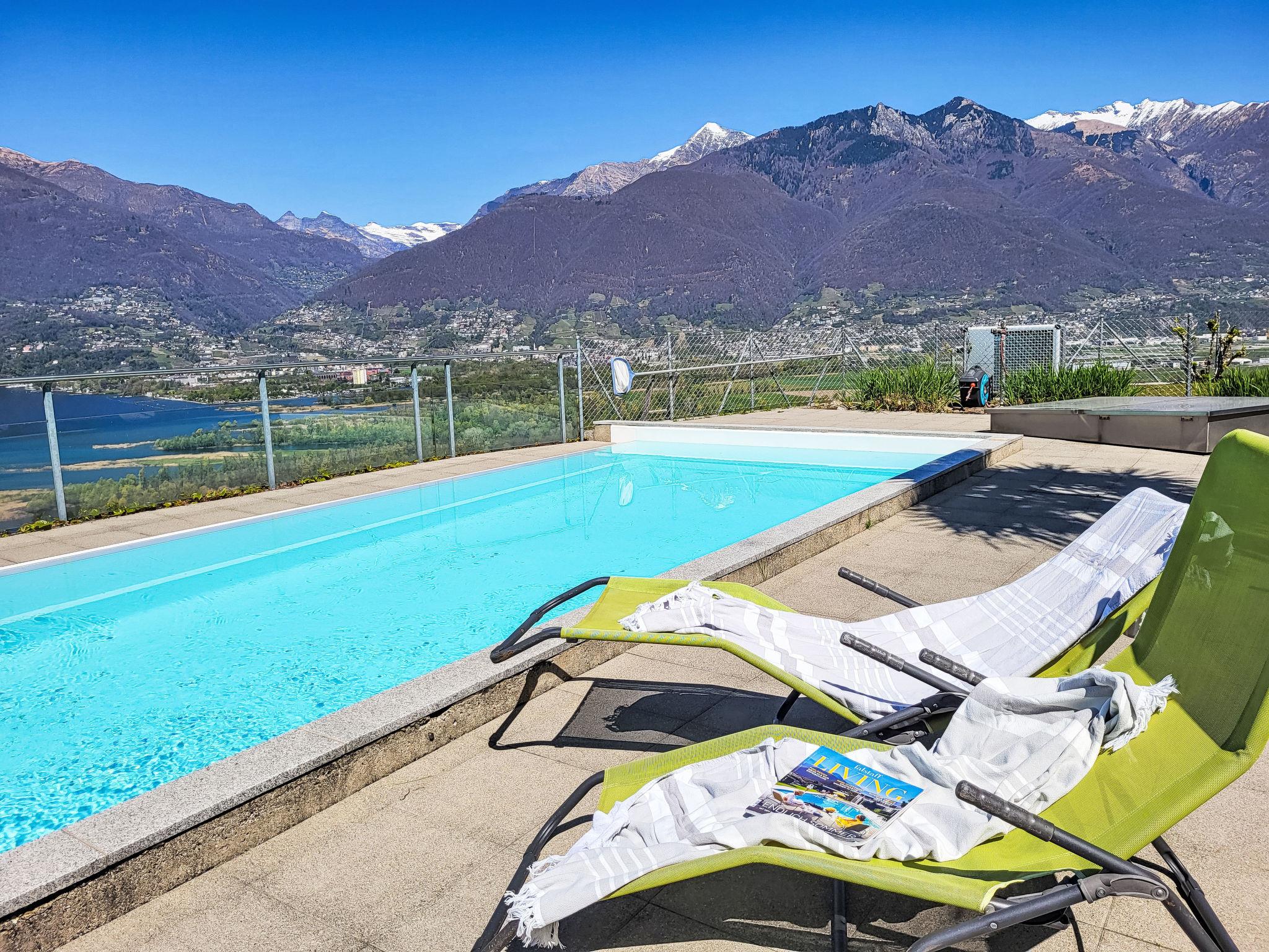 Orgnana (Magadino) 14 km from Locarno: Modern, comfortable apartment house "Bella Vista", 350 m a.s.l., 3 storeys, surrounded by trees. 6 apartments in the residence. On the outskirts, in the district Gambarogno, in a quiet, sunny, elevated position, 10 m from the edge of the forest, in a cul-de-sac, in the countryside, north-west facing position. For shared use: swimming pool (7 x 3 m, seasonal availability: 20.Apr. - 20.Oct.) with internal staircase. Outdoor shower. In the house: lift, central heating system. Motor access to the grounds. Parking at the house. Grocery 2.5 km, restaurant 300 m, bakery 1.5 km, bus stop "Postauto Linie 352" 350 m, railway station "SBB-CFF" 2.5 km. Minigolf 2 km, walking paths from the house 20 m. Nearby attractions: Ascona-Locarno-Brissago, Ronco sopra Ascona, Falconeria Locarno, Mercato Luino IT, Cannobio IT, Mercato Ponte Tresa IT, Splash and SPA Rivera. Well-known lakes can easily be reached: Lago Maggiore, Lago di Lugano, Lago di Como. Hiking paths: Gambarogno, Monte Tamaro-Monte Lema. Please note: car recommended. Baby equipment on request (extra). The owner does not accept any groups. The owner does not accept any youth groups. Additional accommodations can be booked. Property ref. CH6573.75 is situated on the same property. Neighbourhood highly sensitive to noise. Quietness and good behaviour expected.