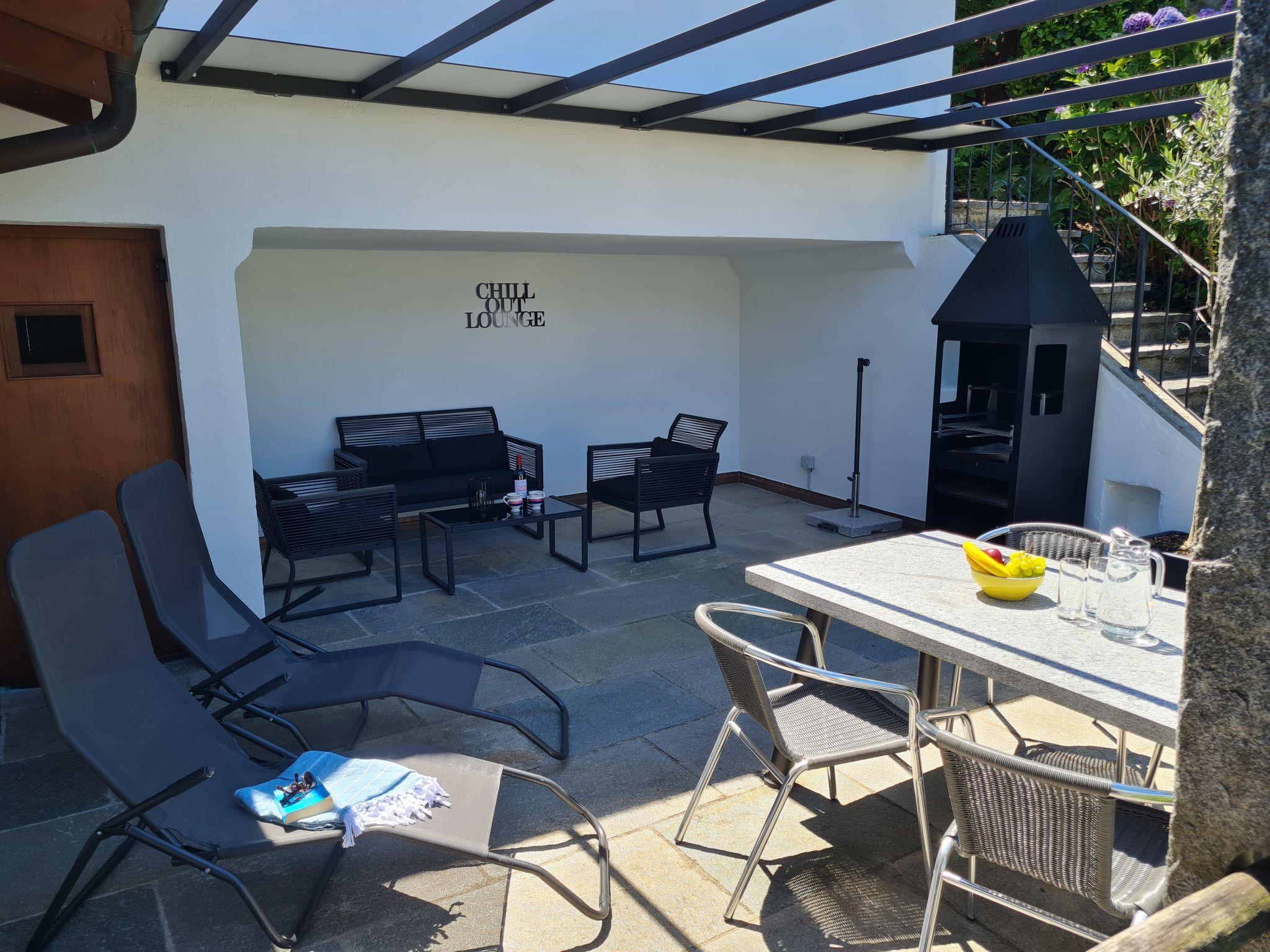 Magadino 15 km from Locarno: Modern, beautiful 2-family house "Cavriana", surrounded by trees. On the outskirts, in the district Gambarogno, in a quiet, sunny position in the residential district, 50 m from the edge of the forest, 2 km from the lake, in a cul-de-sac, in the countryside. Private: patio, pergola, terrace, garden furniture, barbecue. Steep motor access to the grounds. Stepped path (20 steps) to the house. Parking on the premises. Grocery 850 m, restaurant 700 m, bus stop "Postauto Linie 352" 500 m, railway station "SBB-CFF (Quartino)" 4.5 km. Golf course (18 hole) 19 km, minigolf 2.2 km, walking paths from the house 10 m. Nearby attractions: Mercato Luino IT, Mercato Ponte Tresa IT, Mercato Bellinzona (SA), Castelli di Bellinzona, Madonna del Sasso, Locarno-Orselina, Monte Verità, Ascona. Well-known lakes can easily be reached: Lago Maggiore, Lago di Lugano, Lago di Como. Hiking paths: Monti di Piazzogna, Valle Verzasca, Vallemaggia, Centovalli, Cardada-Cimetta, Locarno.