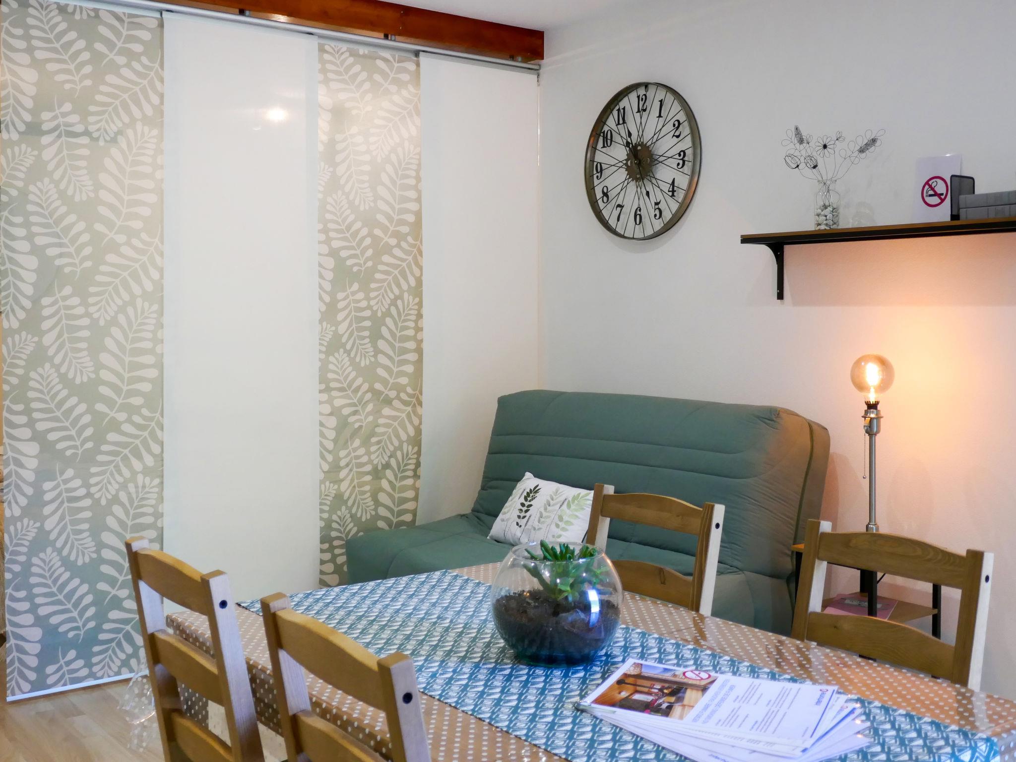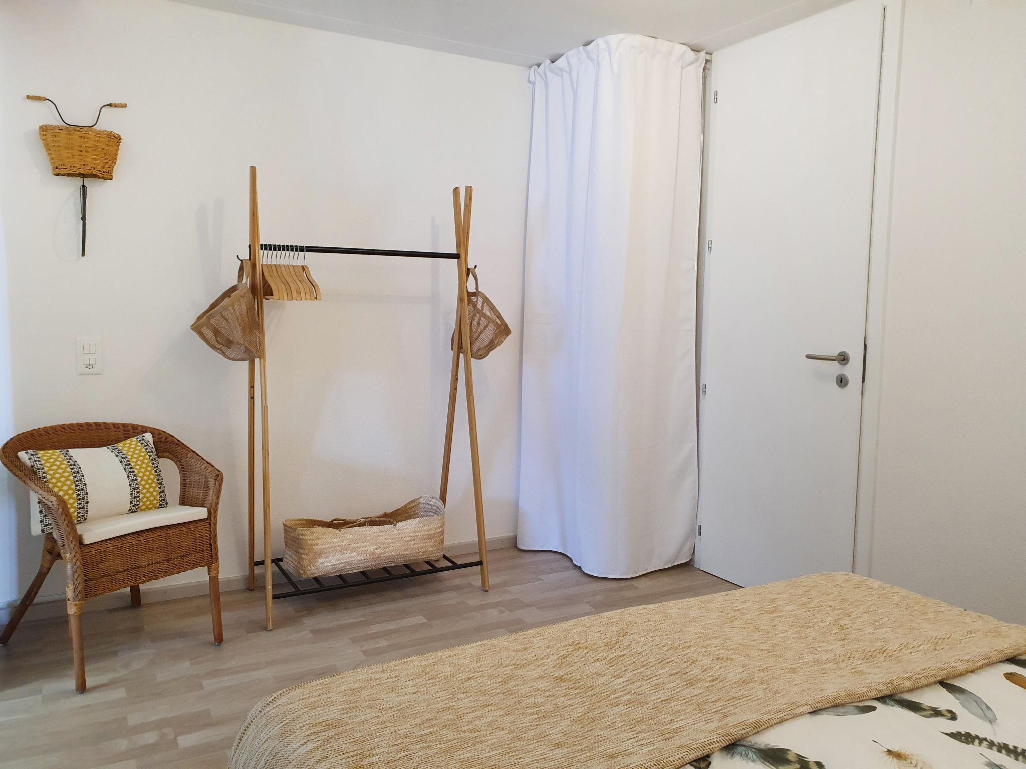"Open Space with Patio", 1-room apartment 38 m2. Beautiful and cosy furnishings: open living/dining room with dining table, TV, radio and heating stove. 1 open double bedroom with 1 double bed (2 x 80 cm, length 200 cm). Open kitchen (oven, dishwasher, 4 ceramic glass hob hotplates, toaster, kettle, freezer, electric coffee machine, raclette grill, fondue Set (cheese)). Shower/WC, hydro massage shower. Wood heating. Patio. Terrace furniture, barbecue (portable), sitting area. Beautiful view of the mountains and the valley. Facilities: washing machine, iron, children's high chair, baby cot for up to 2 year olds (extra), hair dryer. Internet (WiFi). Please note: non-smoking house. Fire extinguisher. NL-00001806