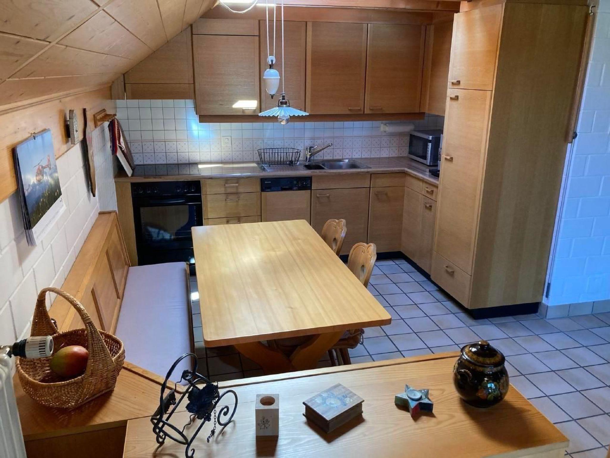 The holiday flat (street address: Kühmoosweg 46, 3152 Mamishaus) is located in a detached farmhouse in the agricultural zone. The house is situated near a forest at the end of a road with a view of the mountains, in a very quiet location. There is a fountain under the porch roof belonging to the farmhouse. On the south side there is a seating area with a chemineé, garden table, benches and chairs. The flat itself is on the 1st floor and is heated with pellets. In the village there is a small corner shop as well as a post bus stop about 25 minutes on foot. Further shopping facilities are available in Schwarzenburg 4 km away: bakery, Migros, Coop and others. A car is recommended for shopping and exploring the surrounding area.