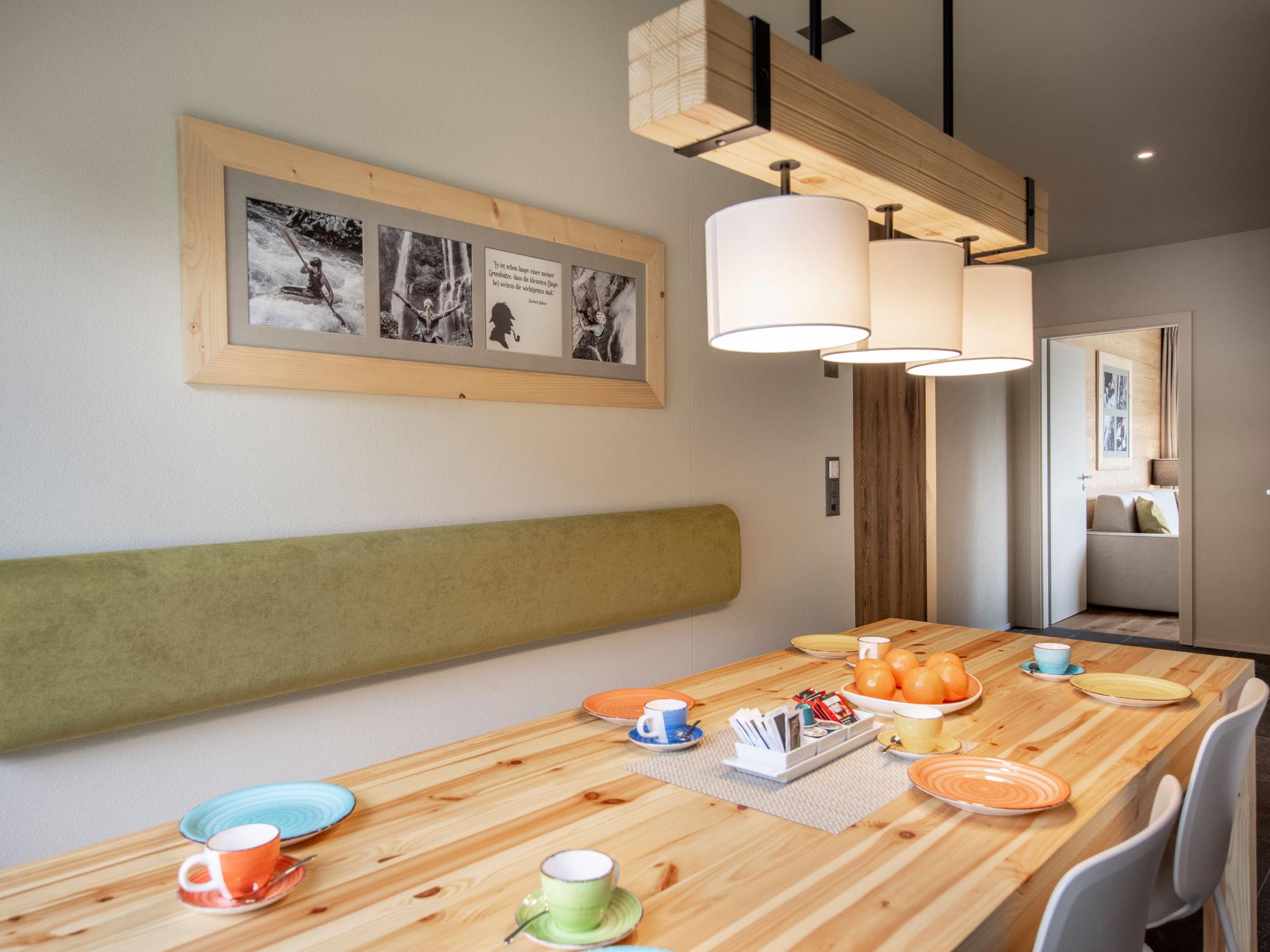 "6personnes 2 chambres Ter/bal Superiéur", 3-room apartment 71 m2. Beautiful and modern furnishings: living room with 1 double sofabed (160 cm, length 200 cm), international TV channels and flat screen. Exit to the balcony, to the terrace. 1 room with 1 double bed (2 x 90 cm, length 200 cm), bath/WC. Exit to the balcony, to the terrace. 1 room with 2 beds (90 cm, length 200 cm). Kitchen (oven, dishwasher, 4 ceramic glass hob hotplates, electric coffee machine, Capsules for coffee machine (Nespresso) extra) with dining table. Shower, sep. WC. Underfloor heating. Parquet floors. Balcony 8 m2, south-west facing position or terrace 13 m2, south-west facing position. Terrace furniture, balcony furniture. Partial view of the mountains. Facilities: hair dryer. Internet (WiFi, free). Please note: suitable for families. Non-smoking house. Maximum 1 pet/ dog allowed. Smoke alarm. The property is one of a type of property or apartment. A fondue set (meat or cheese) and a raclette oven can be borrowed from the reception against a deposit.