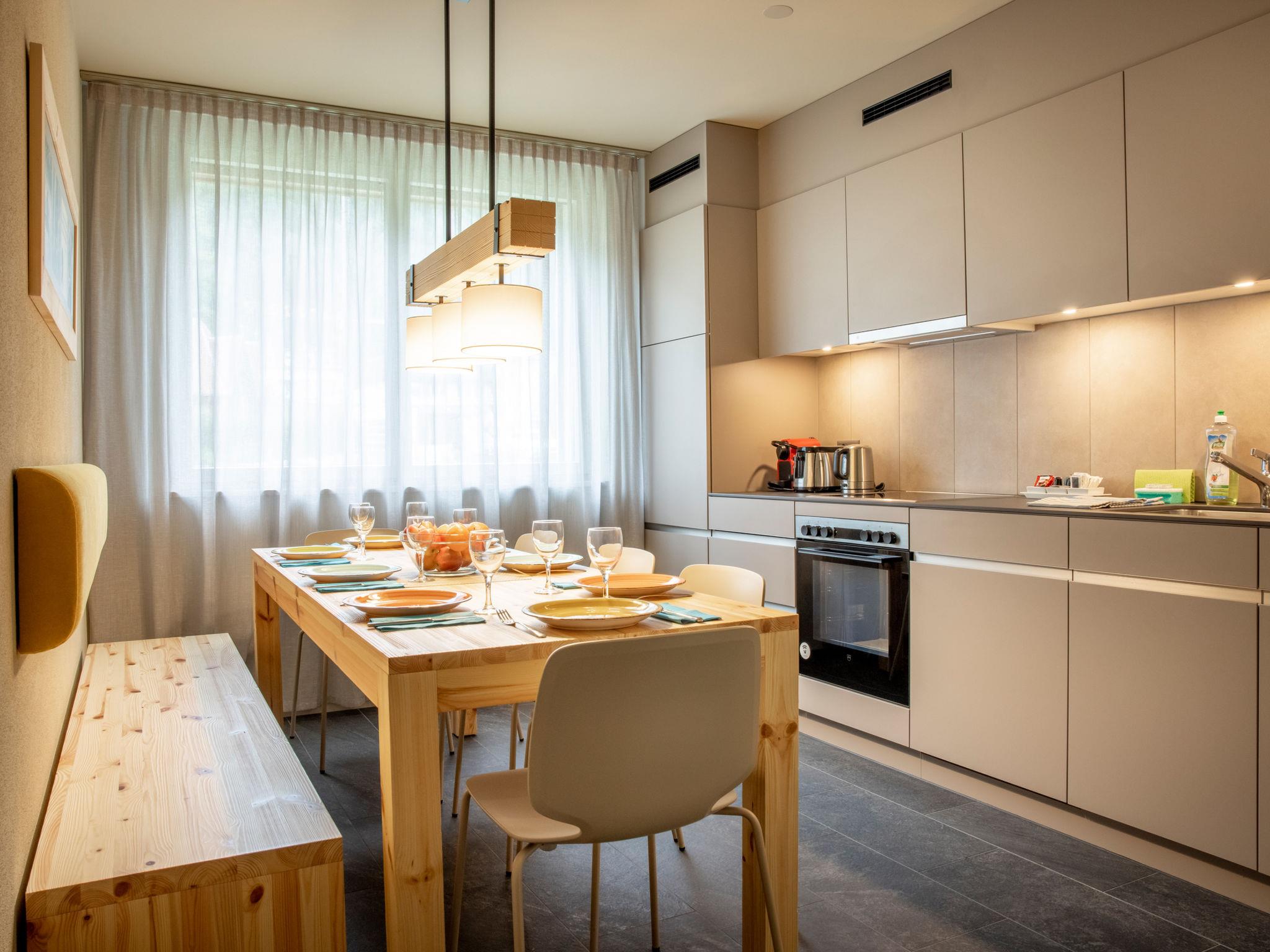 Child friendly, modern, very comfortable resort "SWISSPEAK Resorts Meiringen", 600 m a.s.l., 4 storeys, built in 2019. 6 houses in the resort. 79 apartments in the residence. In the centre of Meiringen, 12 km from the lake. For shared use: park with plants, meadow. Children's playground. In the complex: reception, lounge, WiFi, sauna, relaxation room, playroom, lift, storage room for bicycles, storage room for skis, central heating system, washing machine (extra), tumble dryer (for shared use, extra). Linen change (suppl. charge extra). Motor access to the house. Parking (limited number of spaces, extra), communal covered parking (extra) at the house, public parking 600 m extra. Dimension: height 210 cm. E-charging station. Supermarket 400 m, restaurant, bar 50 m, bakery, café 200 m, bus stop "Meiringen, Bahnhof" 200 m, railway station "Meiringen" 200 m, outdoor swimming pool 800 m, indoor swimming pool 400 m, bathing lake "Hasliberg" 14 km. Golf course (18 hole) 33 km, tennis, indoor tennis centre 800 m, riding stable 10 km, walking paths from the house 50 m, cable car 1 km, ski bus stop 100 m, cross country ski track 14 km, children's playground 100 m. Nearby attractions: Sherlock Holmes Museum 50 m, Reichenbach Falls 1.3 km, Aareschlucht 1.6 km, Freilichtmuseum Ballenberg 9 km, Brienzer Rothorn 13 km, Interlaken 28 km. Well-known ski regions can easily be reached: Meiringen-Hasliberg 1 km, Schilthorn 44 km, Jungfrau Region 47 km. Well-known lakes can easily be reached: Brienzersee 12 km, Gelmersee 22 km, Thunersee 33 km. Hiking paths: Hasliberg 1 km, Rosenlaui 12 km. Please note: suitable for families. Groups of teenagers on request only. Railway line 20 m from the property. Airfield 6 km from the property. The photo is just an example. The holiday resort was opened in December 2019. It offers a limited amount of underground parking.