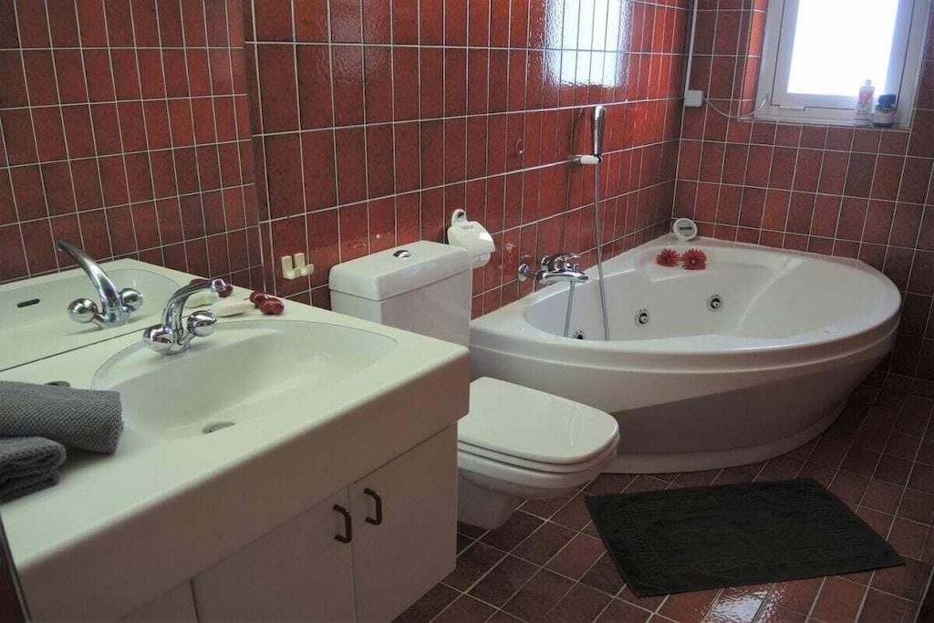 Hot Water, hallway(Wardrobe Coatrack), Living room(Armchair, TV), Kitchen(Tea Towels, dining table, electric kettle, toaster, coffee machine, oven, dishwasher, fridge, freezer), bedroom(double bed), bedroom(double bed), bedroom(single bed), bedroom(single bed), bathroom(Make Up Mirror, shower, hairdryer), bathroom(Make Up Mirror, shower, hairdryer), Internet access, Internet access, grill, tumble dryer, washing machine, heating, garden furniture, sun loungers, parking