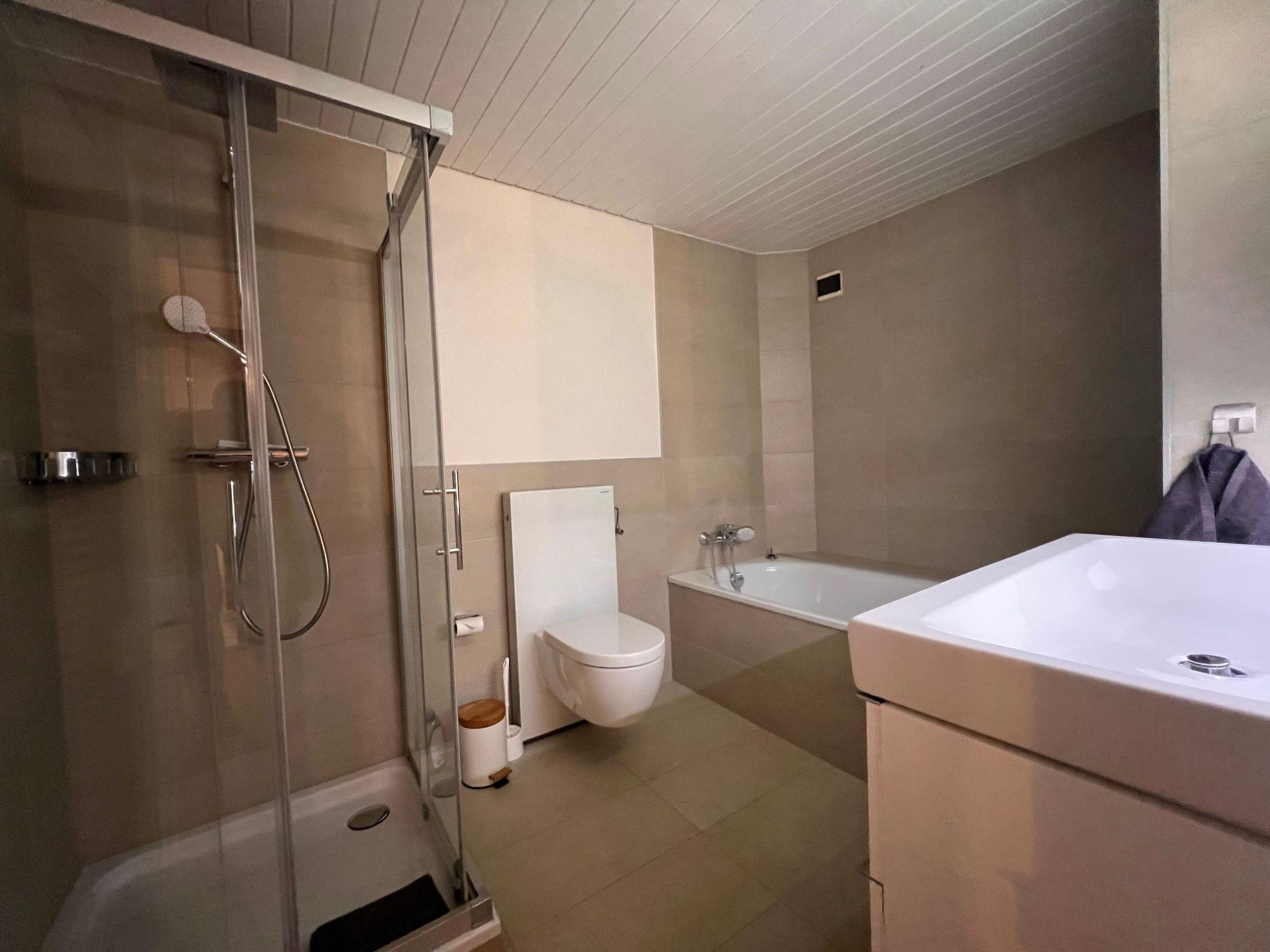 The interior of the flat immediately conveys a welcome feeling of home and comfort. Located in the former wine cellar, the cosy living room with its vaulted ceiling invites you to linger, directly connected to a modern equipped kitchen, which includes a dishwasher and a table for 6 people. There is a bedroom with a 180 cm wide double bed and another bedroom with two 160 cm wide double beds for relaxing and unwinding. The interior is completed by a bathroom with a bathtub, shower and washbasin.