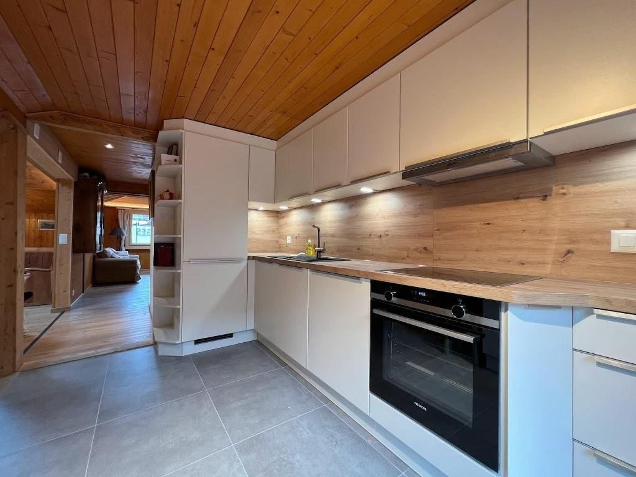 Recently renovated in 2022, the Peak Apartment will spoil you with modern comfort and traditional charm. Two spacious living rooms, furnished with comfortable sofas and an inviting dining area, offer plenty of space for shared moments. The ultra-modern kitchen leaves nothing to be desired and is equipped with a dishwasher, large fridge, oven and ceramic hob - the only thing you will miss here is a microwave. A raclette and fondue set are also available for the perfect Alpine experience. With four bedrooms, including two with two single beds each, one with a double bed and another with a bunk bed, there is room for up to 8 guests.