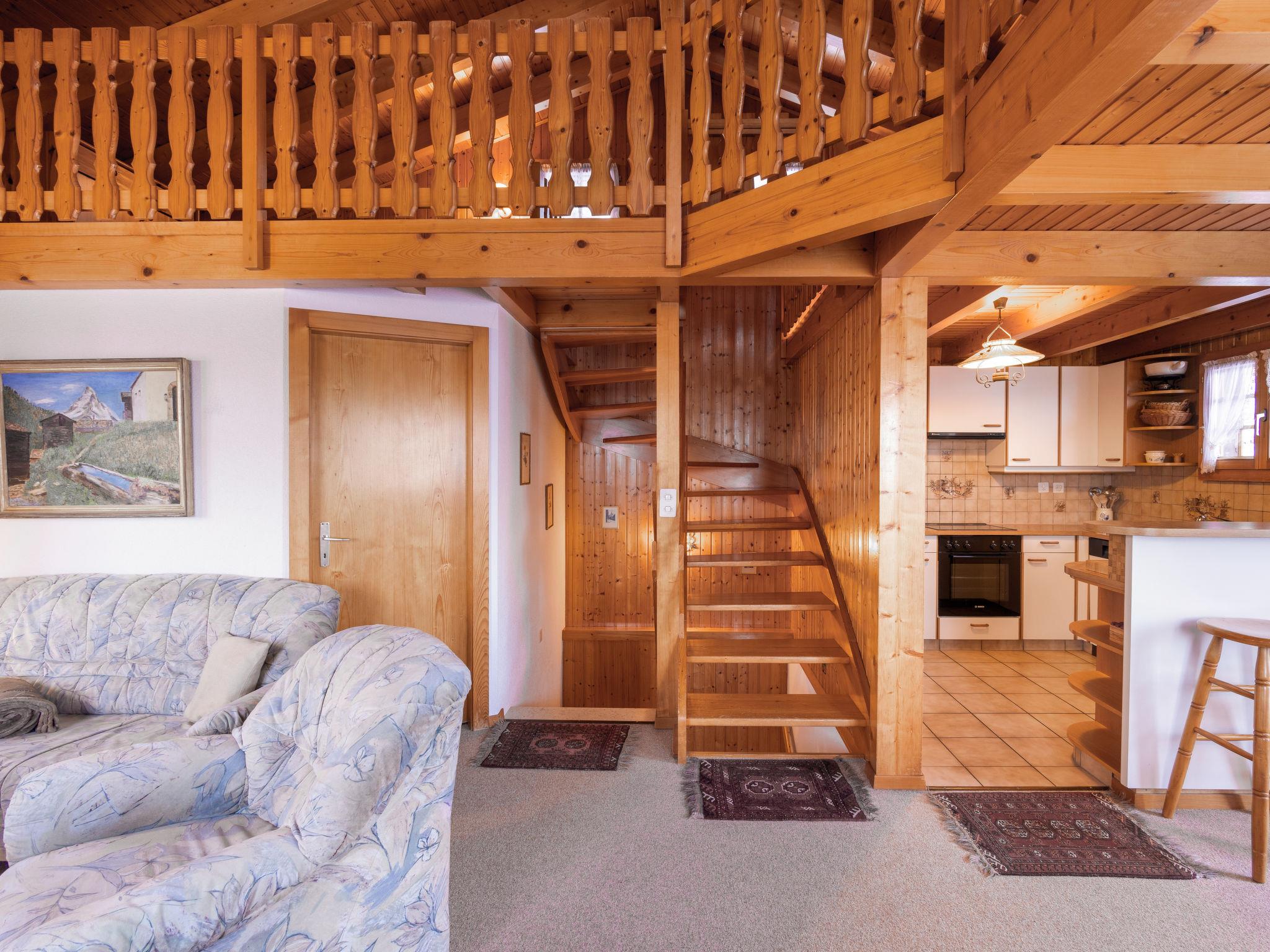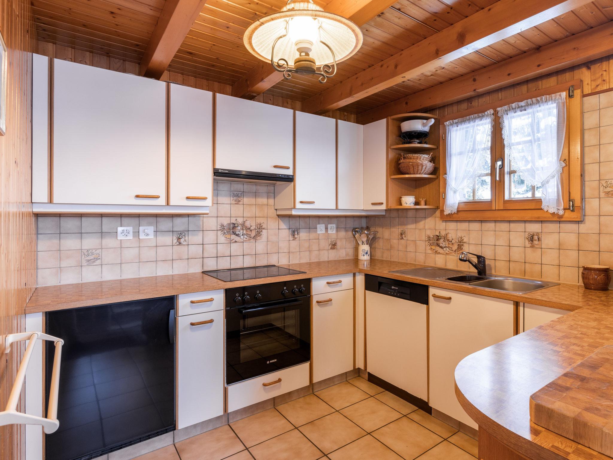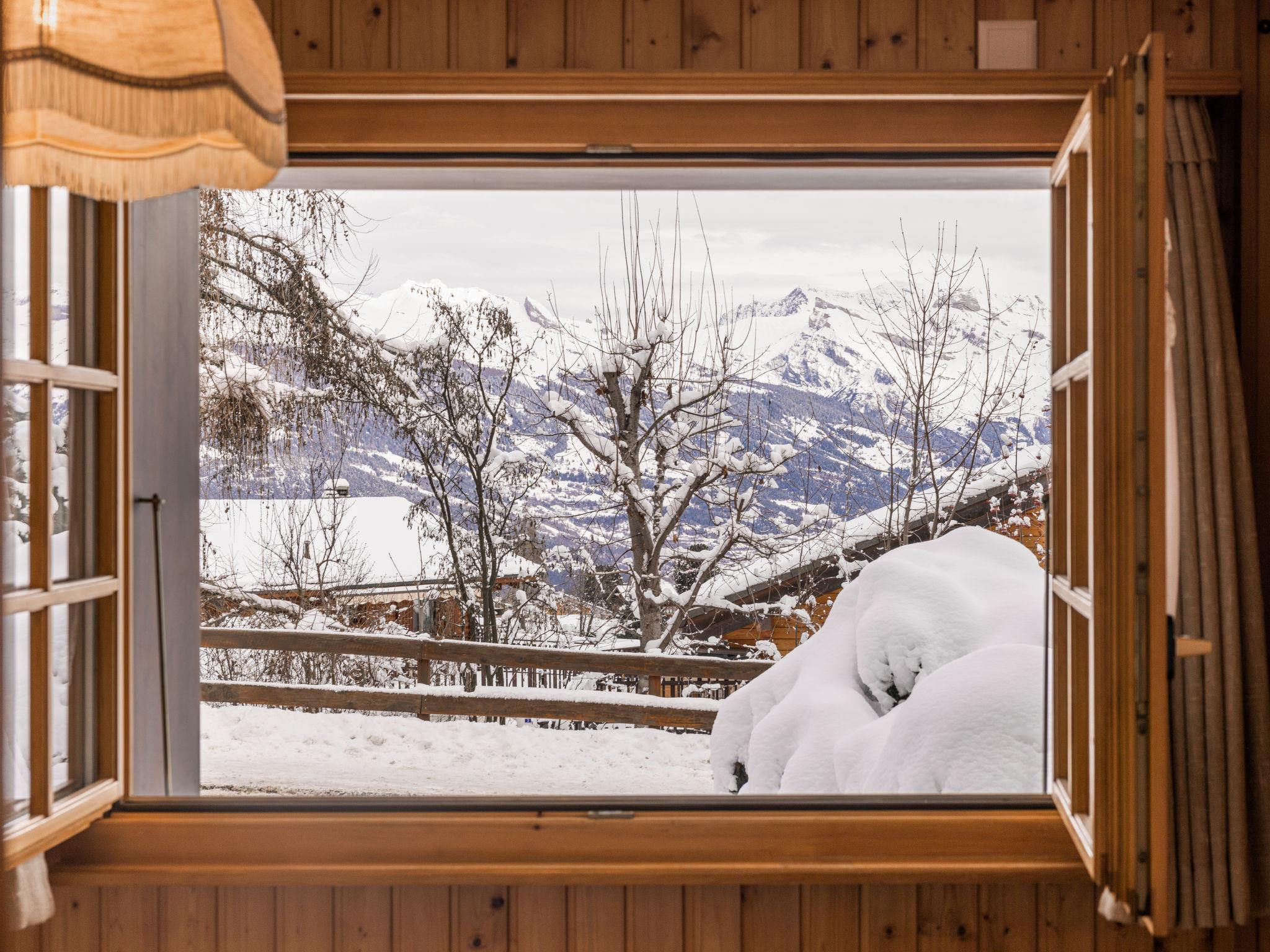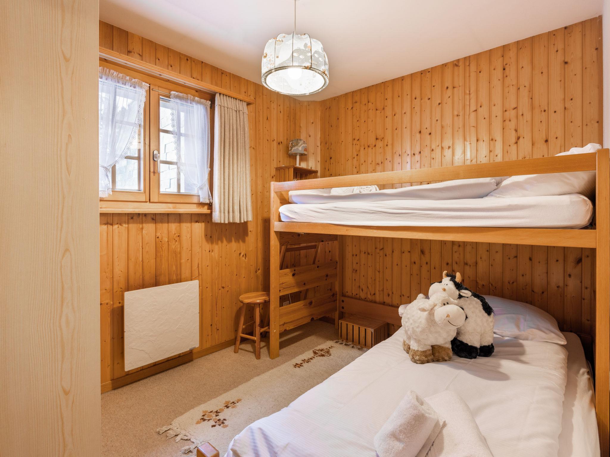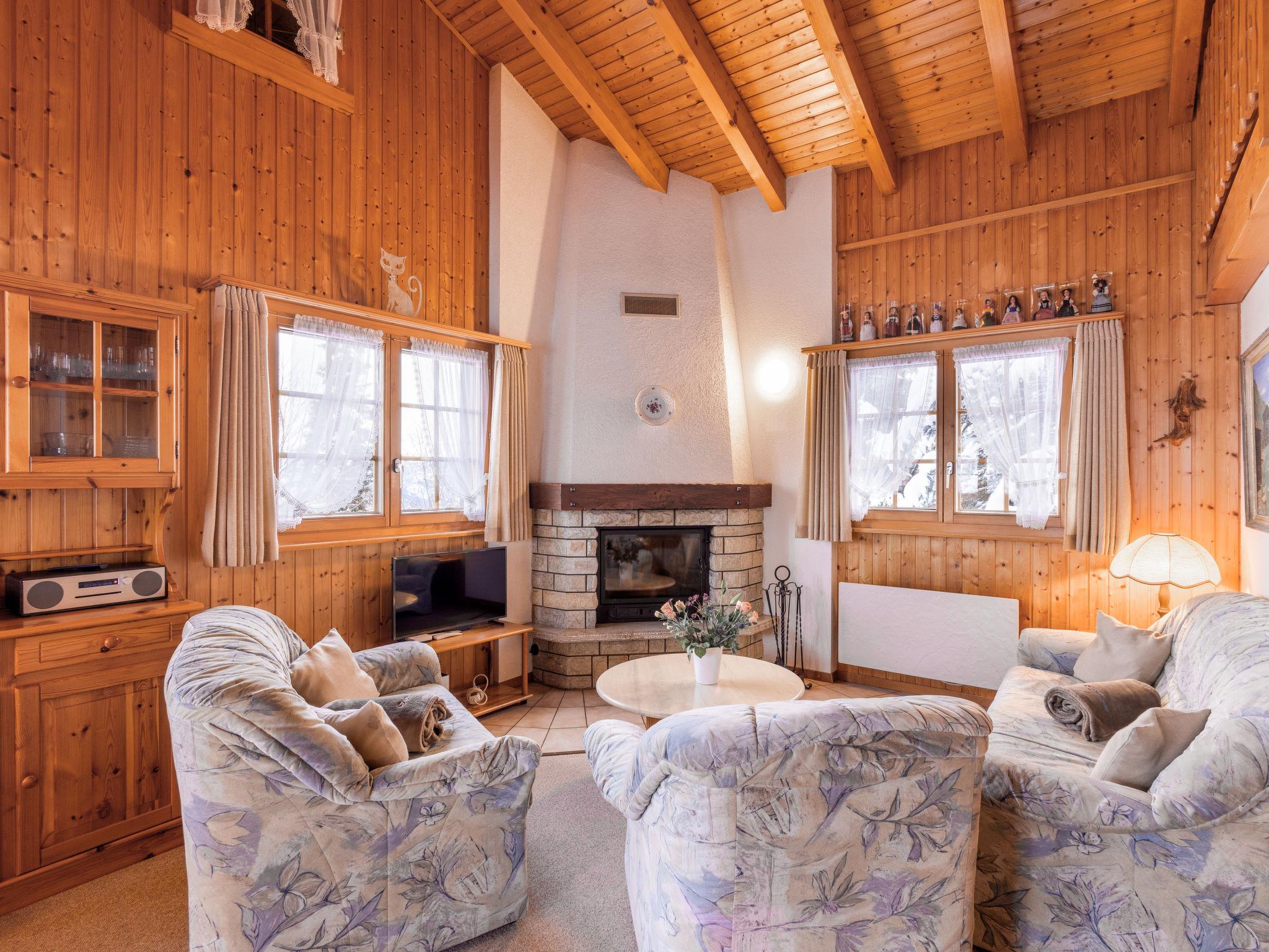 "Eloise", 4-room chalet 100 m2 on 3 levels. Practical and beautiful furnishings: living/dining room with open-hearth fireplace and cable TV. Open kitchen (oven, dishwasher, 4 ceramic glass hob hotplates, toaster, kettle, electric coffee machine, Capsules for coffee machine (Delizio) extra, raclette grill, fondue Set (cheese)). Exit to the terrace, west facing position and north facing position. Shower/WC, double hand-basin. On the lower ground floor: entrance hall. 1 room with 1 double bed (2 x 90 cm, length 200 cm). 1 room with 1 x 2 bunk beds (90 cm, length 190 cm). 1 room with 2 beds (90 cm, length 200 cm). Bath/WC, double hand-basin. Upper floor: open gallery with sloping ceilings with 2 beds (90 cm, length 200 cm). Balcony, north facing position, large terrace, north facing position and west facing position. Terrace furniture, electric barbecue, deck chairs (2). Beautiful view of the mountains and the valley. Facilities: washing machine, hair dryer. Internet (WiFi, free). Parking (2 cars), garage, height 200 cm, width 250 cm. Please note: non-smokers only. Instead of an enclosed bedroom, some sleeping areas are located in an open-plan area (gallery, alcove, etc.).
