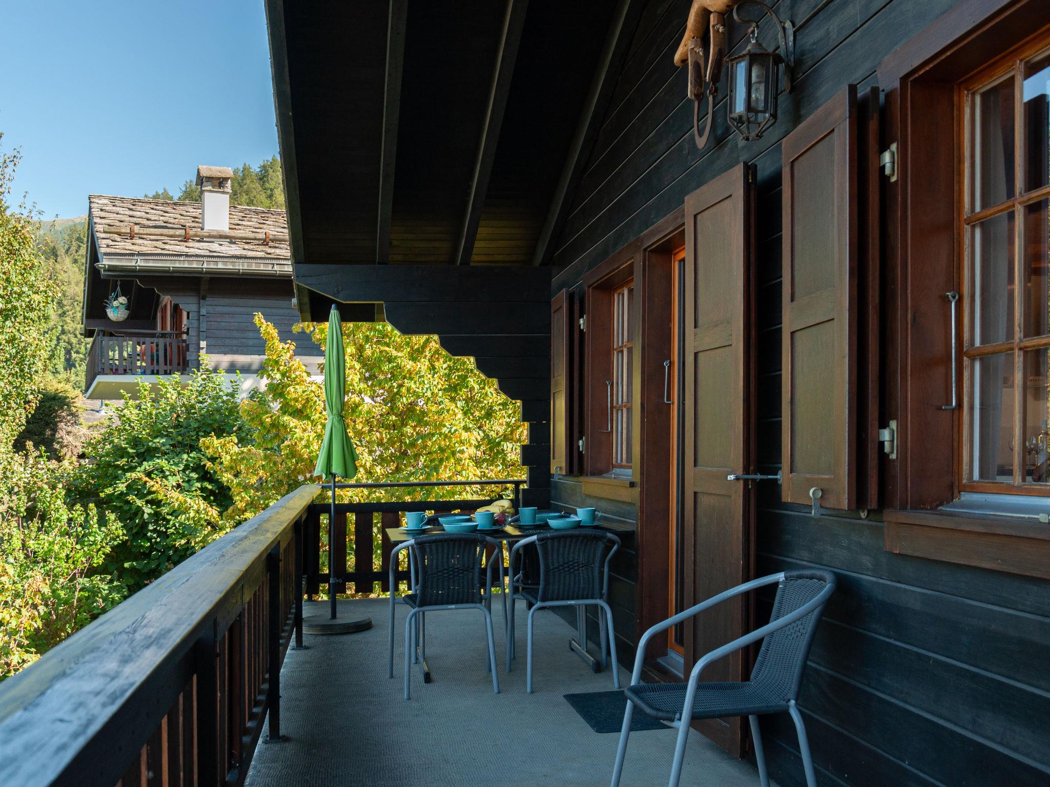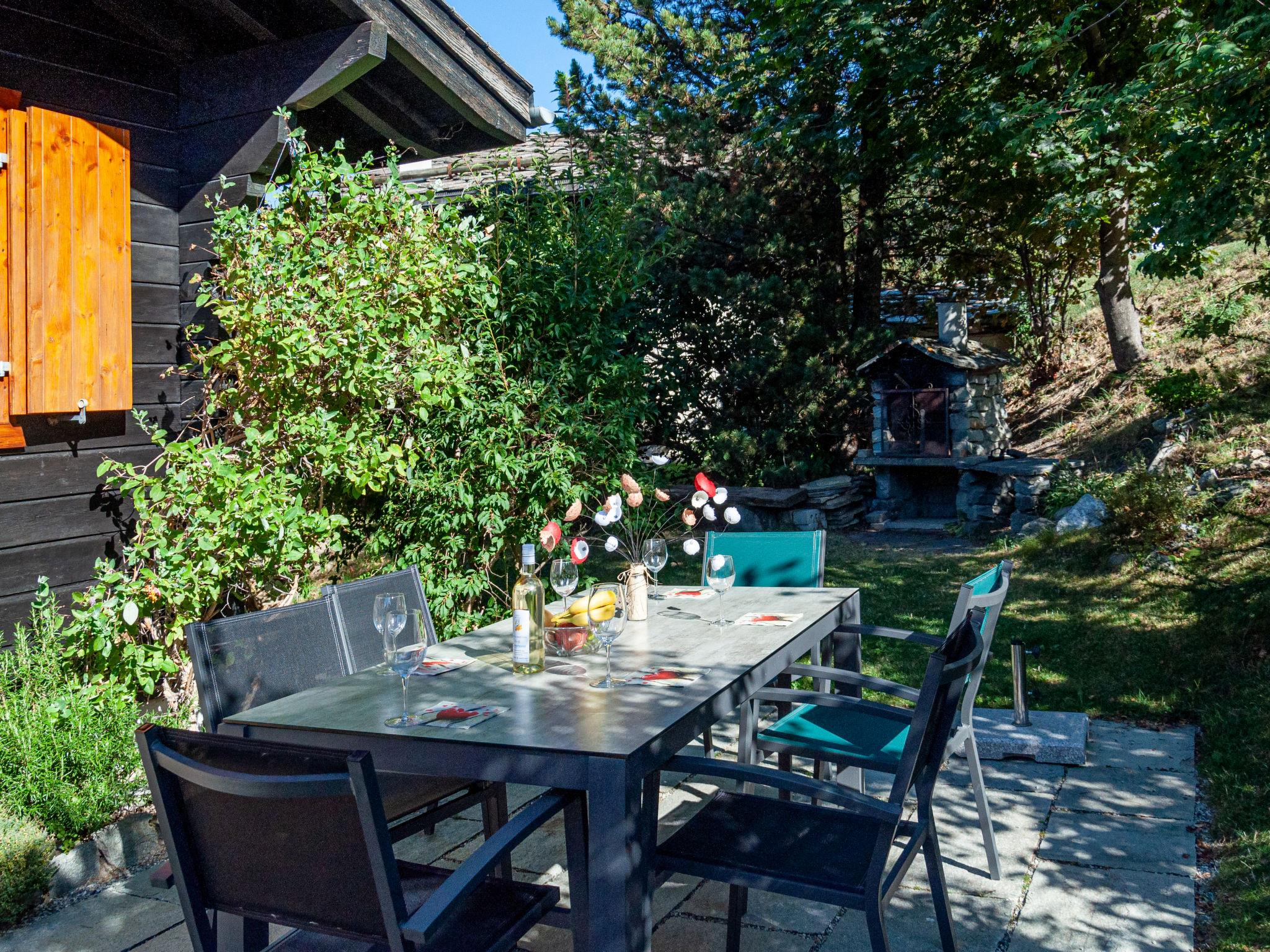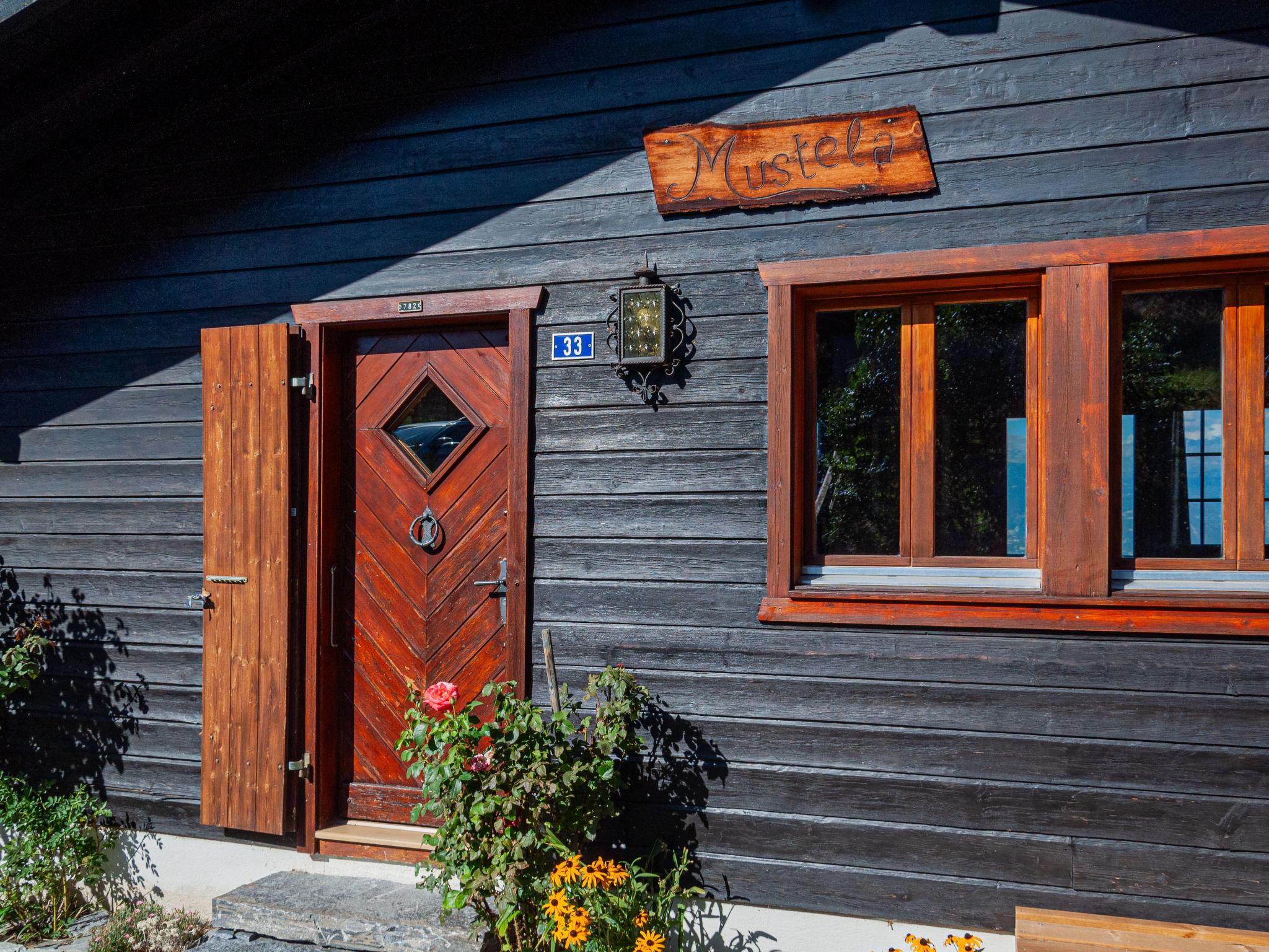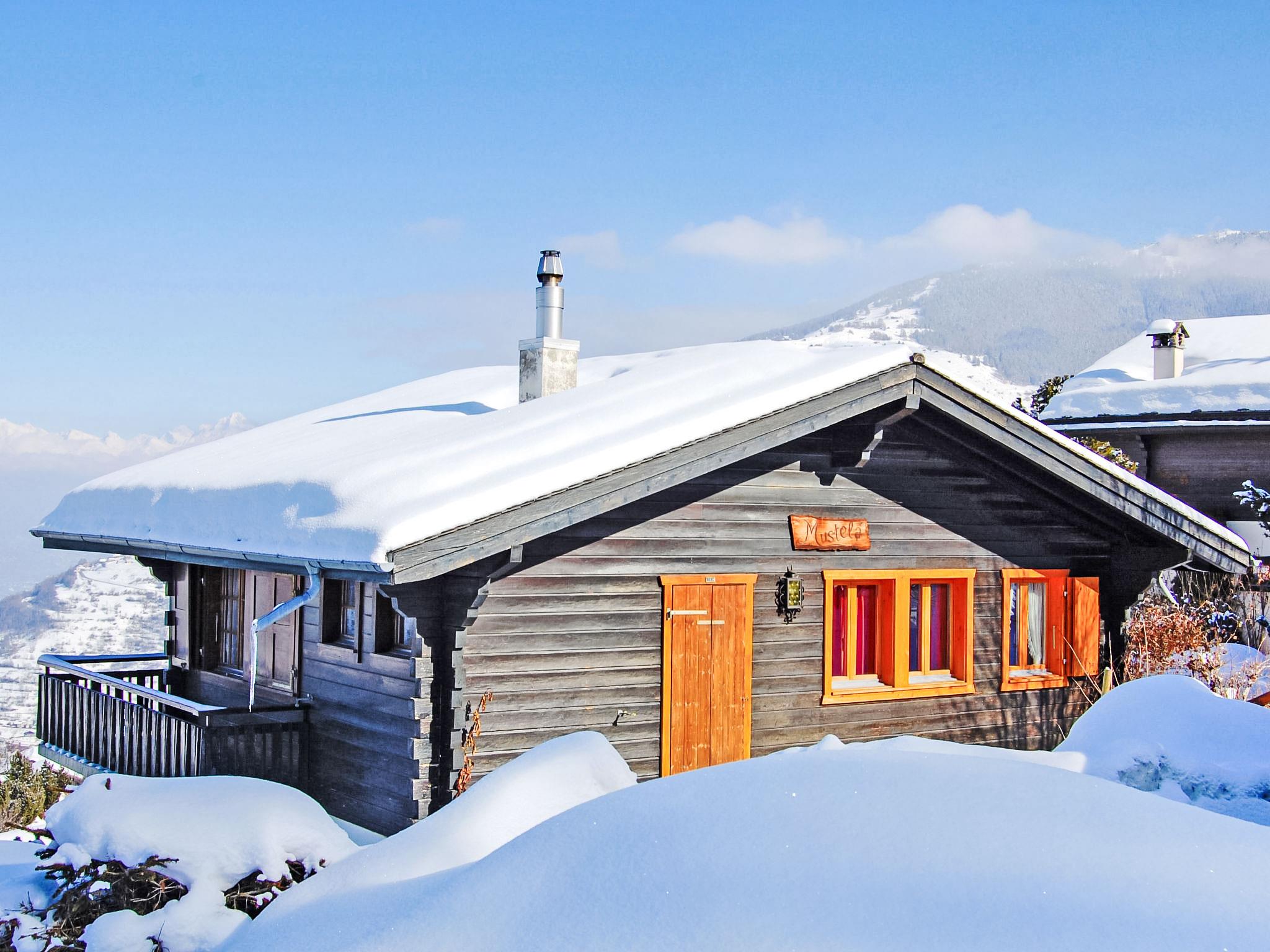 "Mustela", 4-room chalet 95 m2 on 2 levels. Partly renovated in 2019, beautiful and cosy furnishings: living/dining room with open-hearth fireplace, cable TV and DVD. Exit to the balcony, north facing position. Open kitchen (oven, dishwasher, 4 ceramic glass hob hotplates, toaster, kettle, electric coffee machine, Capsules for coffee machine (Delizio) extra, raclette grill, fondue Set (cheese)). Shower/WC. Electric heating. On the lower ground floor: 2 rooms, each room with 2 beds (90 cm, length 190 cm). Exit to the garden, north facing position. 1 room with 1 x 2 bunk beds (80 cm, length 190 cm). Shower/WC. Balcony, north facing position and west facing position balcony, east facing position. Terrace furniture, balcony furniture, barbecue, deck chairs (3). Very beautiful view of the mountains and the valley. Facilities: children's high chair, baby cot, hair dryer. Internet (WiFi, free). Parking (2 cars). Please note: non-smokers only.