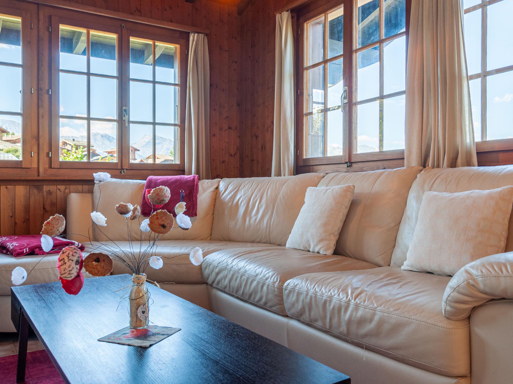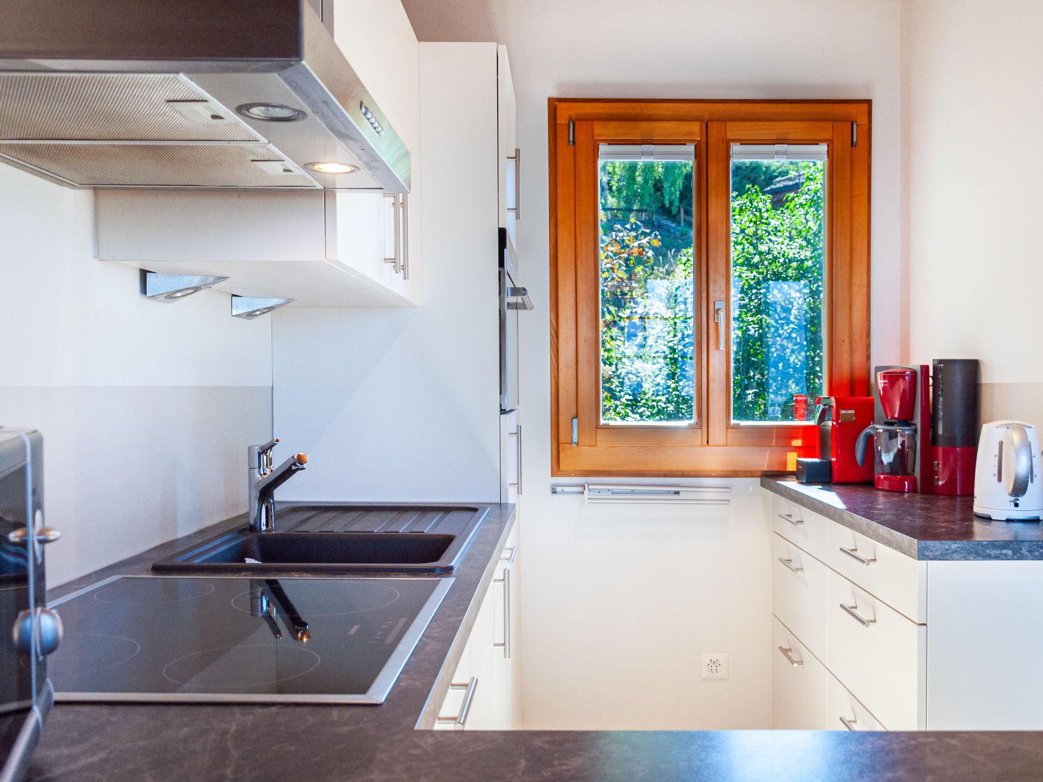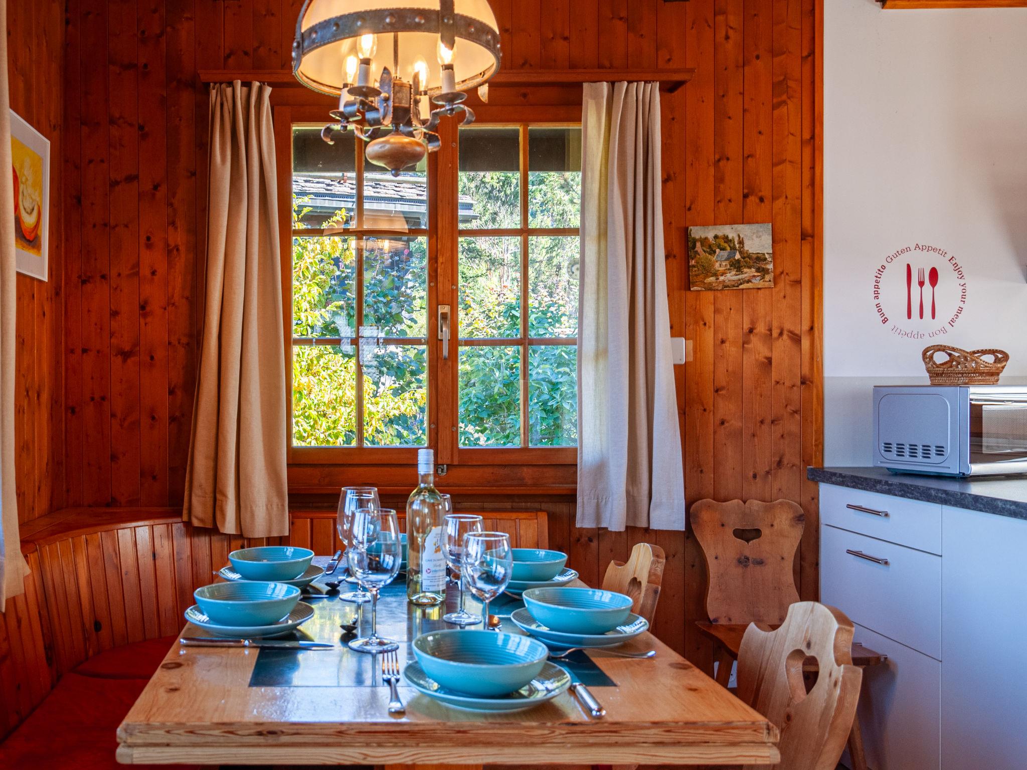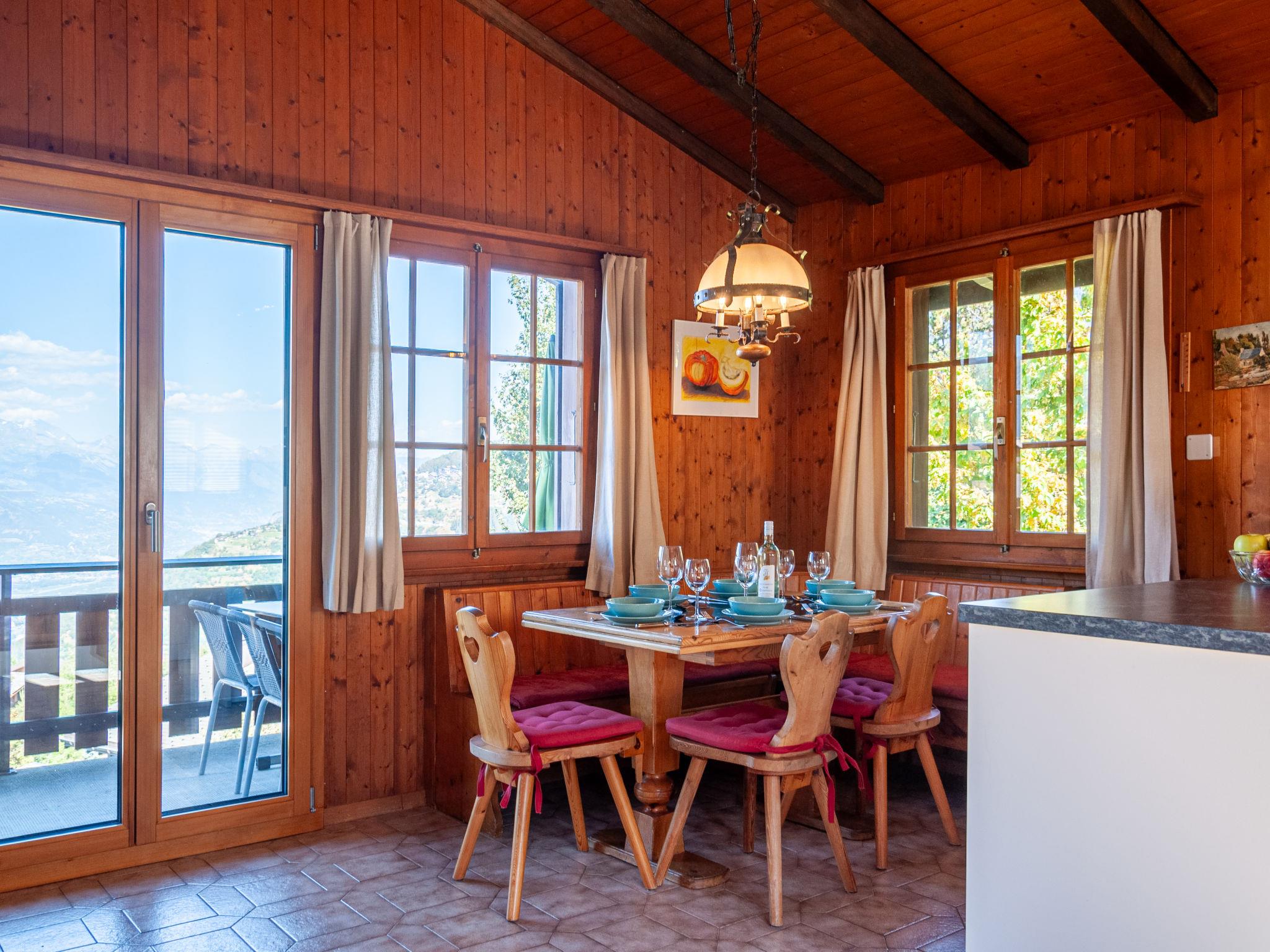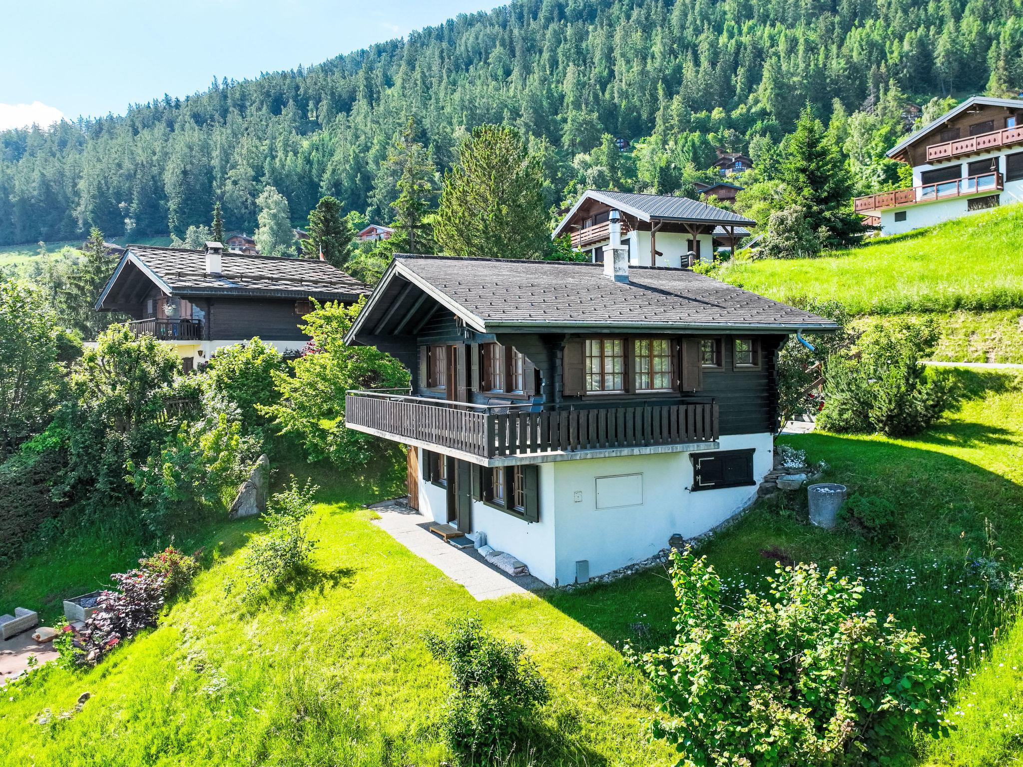 "Mustela", 4-room chalet 95 m2 on 2 levels. Partly renovated in 2019, beautiful and cosy furnishings: living/dining room with open-hearth fireplace, cable TV and DVD. Exit to the balcony, north facing position. Open kitchen (oven, dishwasher, 4 ceramic glass hob hotplates, toaster, kettle, electric coffee machine, Capsules for coffee machine (Delizio) extra, raclette grill, fondue Set (cheese)). Shower/WC. Electric heating. On the lower ground floor: 2 rooms, each room with 2 beds (90 cm, length 190 cm). Exit to the garden, north facing position. 1 room with 1 x 2 bunk beds (80 cm, length 190 cm). Shower/WC. Balcony, north facing position and west facing position balcony, east facing position. Terrace furniture, balcony furniture, barbecue, deck chairs (3). Very beautiful view of the mountains and the valley. Facilities: children's high chair, baby cot, hair dryer. Internet (WiFi, free). Parking (2 cars). Please note: non-smokers only.
