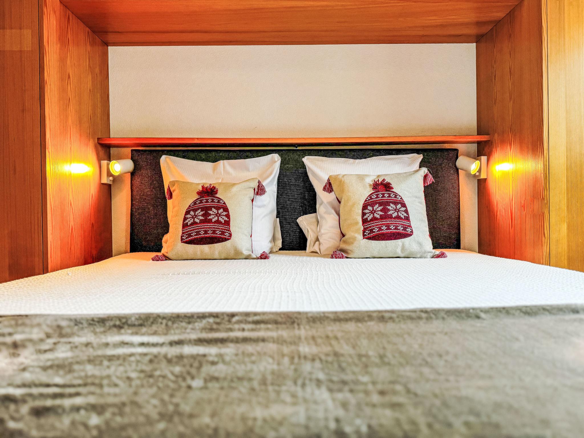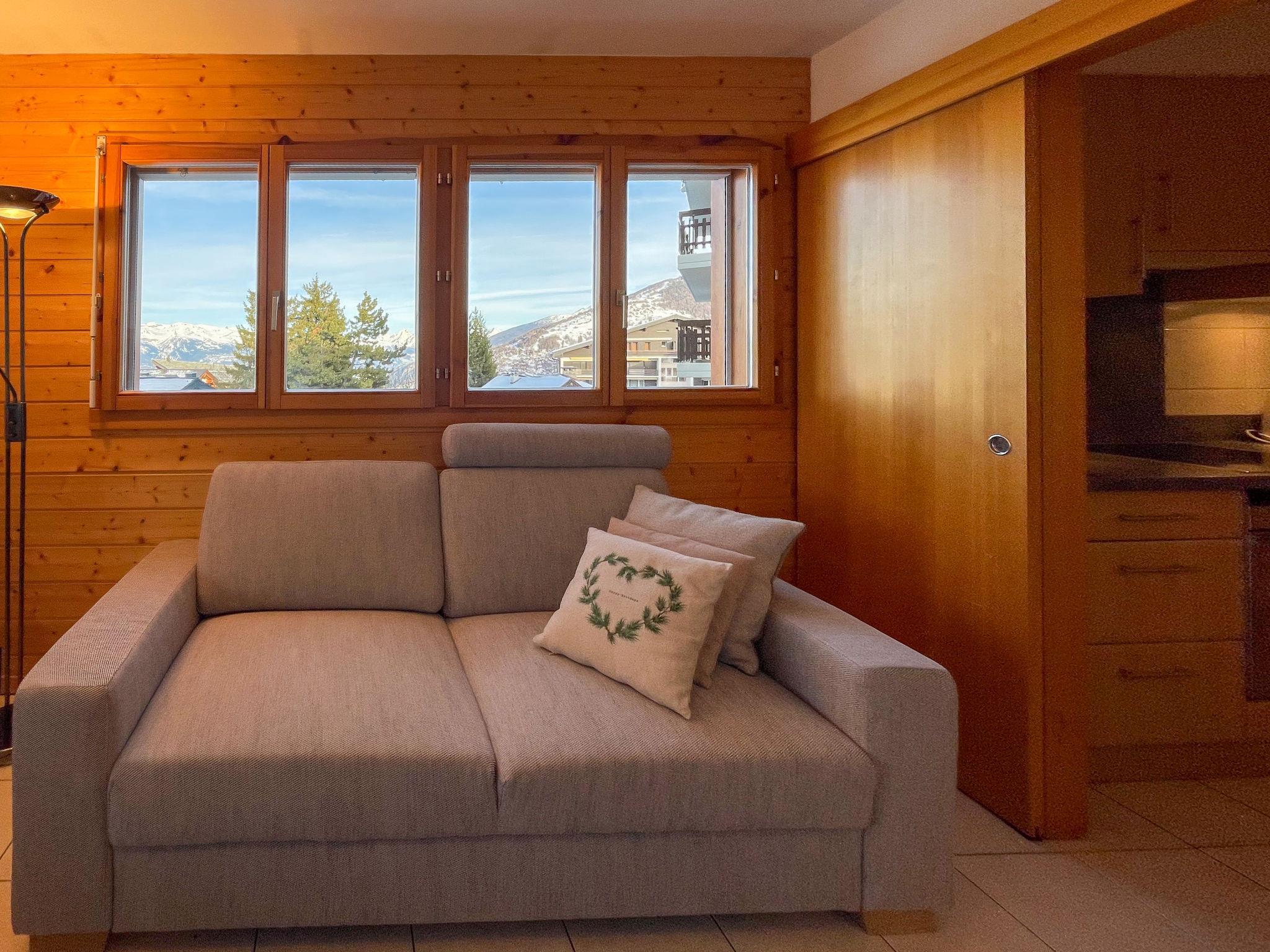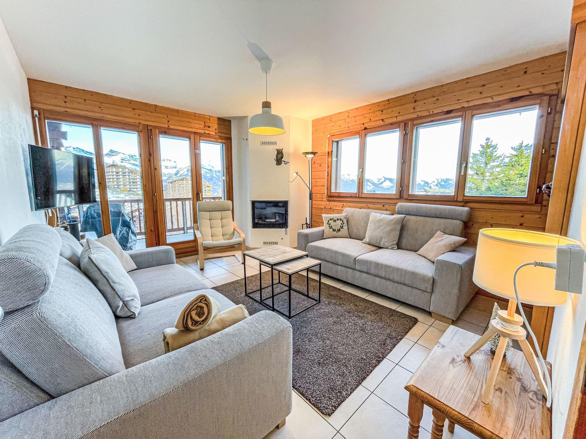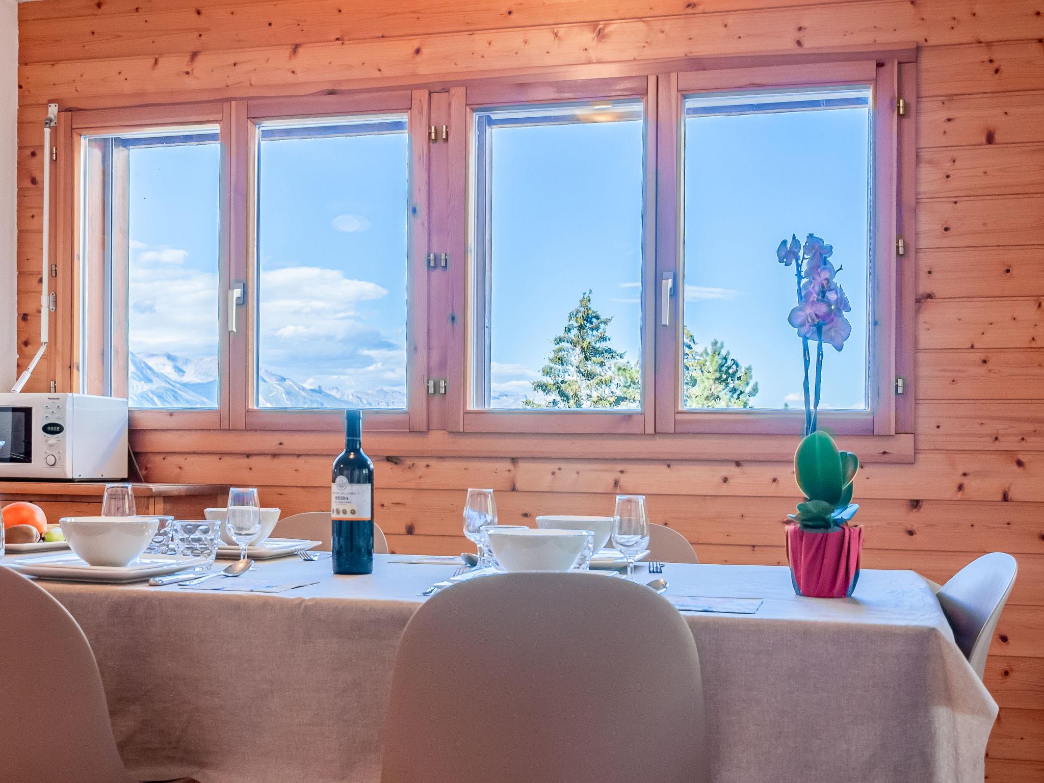 "Les Chouettes 11", 3-room apartment 80 m2 on 1st floor. Comfortable furnishings: living/dining room with open-hearth fireplace and cable TV. Exit to the terrace, north facing position. Dining room. Exit to the terrace, south facing position. 1 room with 1 double bed (2 x 80 cm, length 200 cm). 1 room with 1 double bed (2 x 80 cm, length 200 cm). Kitchenette (oven, dishwasher, 4 ceramic glass hob hotplates, toaster, kettle, microwave, electric coffee machine, Capsules for coffee machine (Nespresso) extra, raclette grill, fondue Set (cheese)). Bath/WC, shower/WC. Beautiful view of the mountains and the valley. Facilities: Internet (WiFi, free). Parking, garage space n 1, height 210 cm, width 230 cm. Please note: non-smokers only.