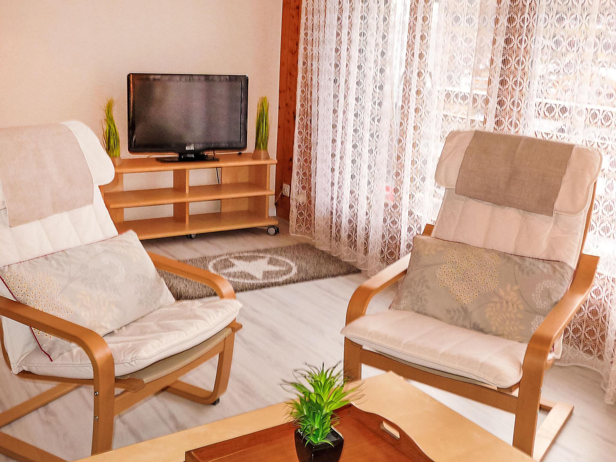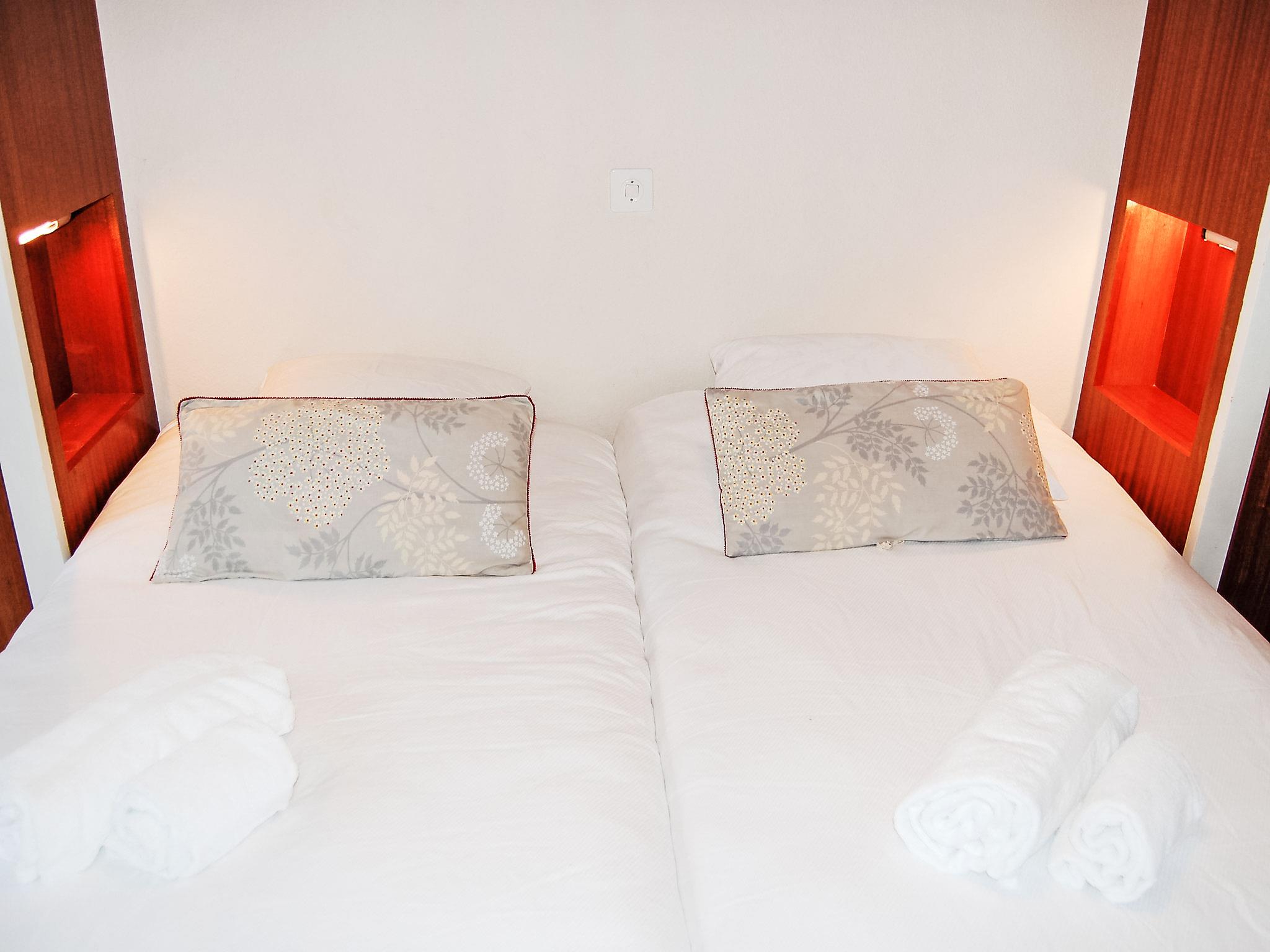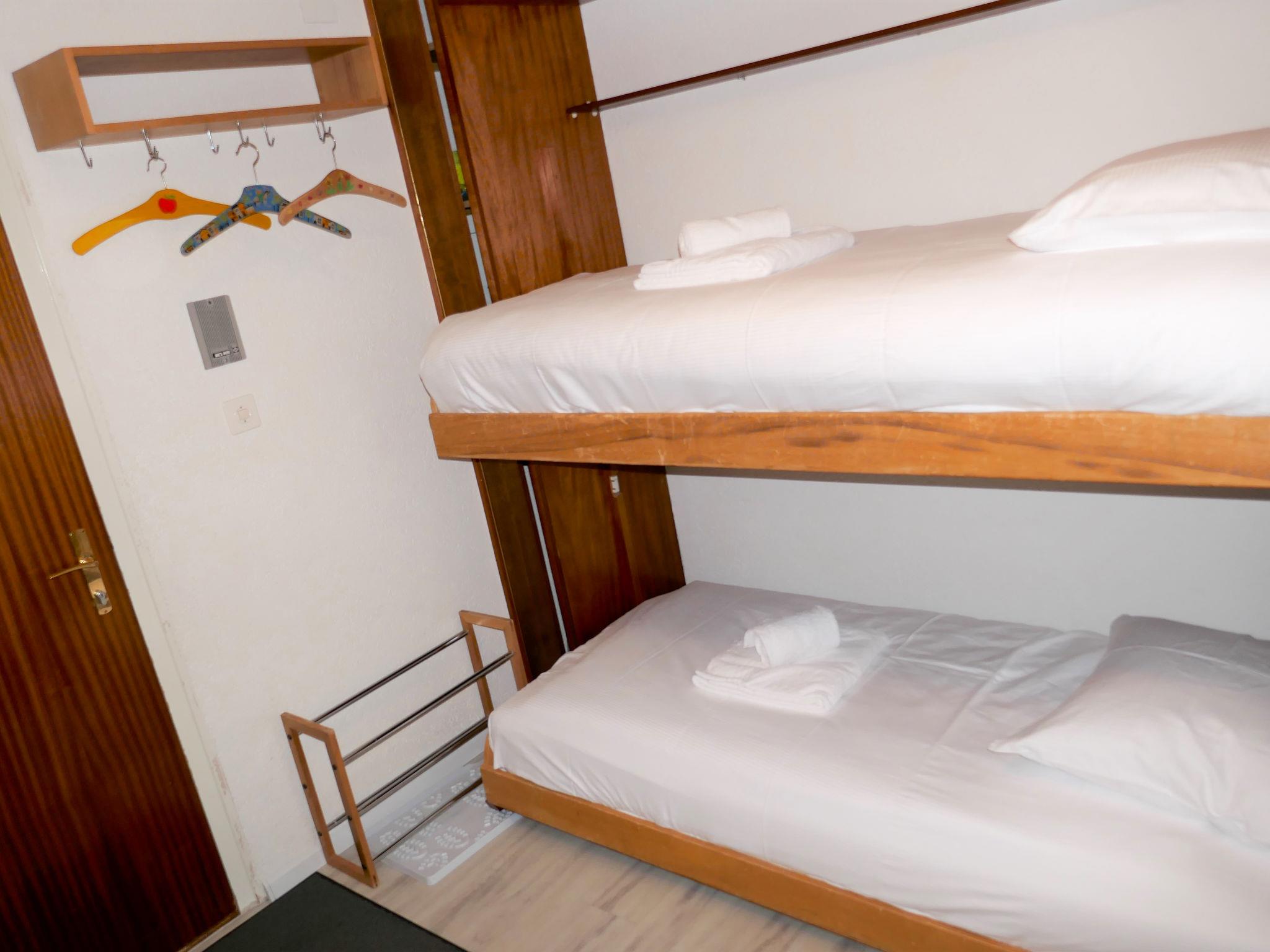 "Nid d'aigle E1", 2-room apartment 50 m2 on 1st floor. Beautiful furnishings: living/dining room with cable TV. Exit to the balcony. 1 room with 2 beds (90 cm, length 190 cm). Exit to the balcony. Entrance hall with 1 x 2 bunk beds (80 cm, length 190 cm). Kitchen (oven, 3 ceramic glass hob hotplates, toaster, kettle, microwave, raclette grill, fondue Set (cheese)). Bath/WC. Large balcony, south facing position. Balcony furniture. Panoramic view of the mountains and the resort. Facilities: Internet (WiFi, free). Please note: non-smoking house. Instead of an enclosed bedroom, some sleeping areas are located in an open-plan area (gallery, alcove, etc.).