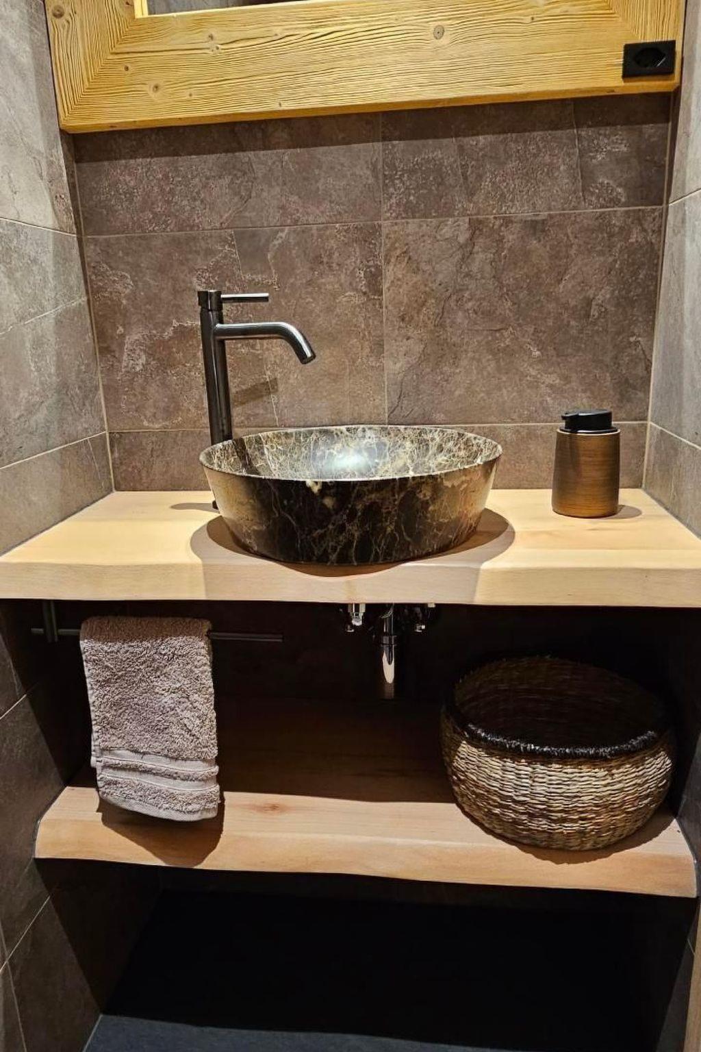 The exterior of the chalet does not disappoint, offering ample opportunities for outdoor enjoyment and relaxation. The spacious terrace invites you to bask in the tranquility of the surrounding area, while the balcony offers a more elevated spot to enjoy the fresh mountain air. The property's thoughtful positioning at the end of a quiet dead-end street enhances the sense of privacy and peace, making it the perfect setting to unwind and reconnect with nature.