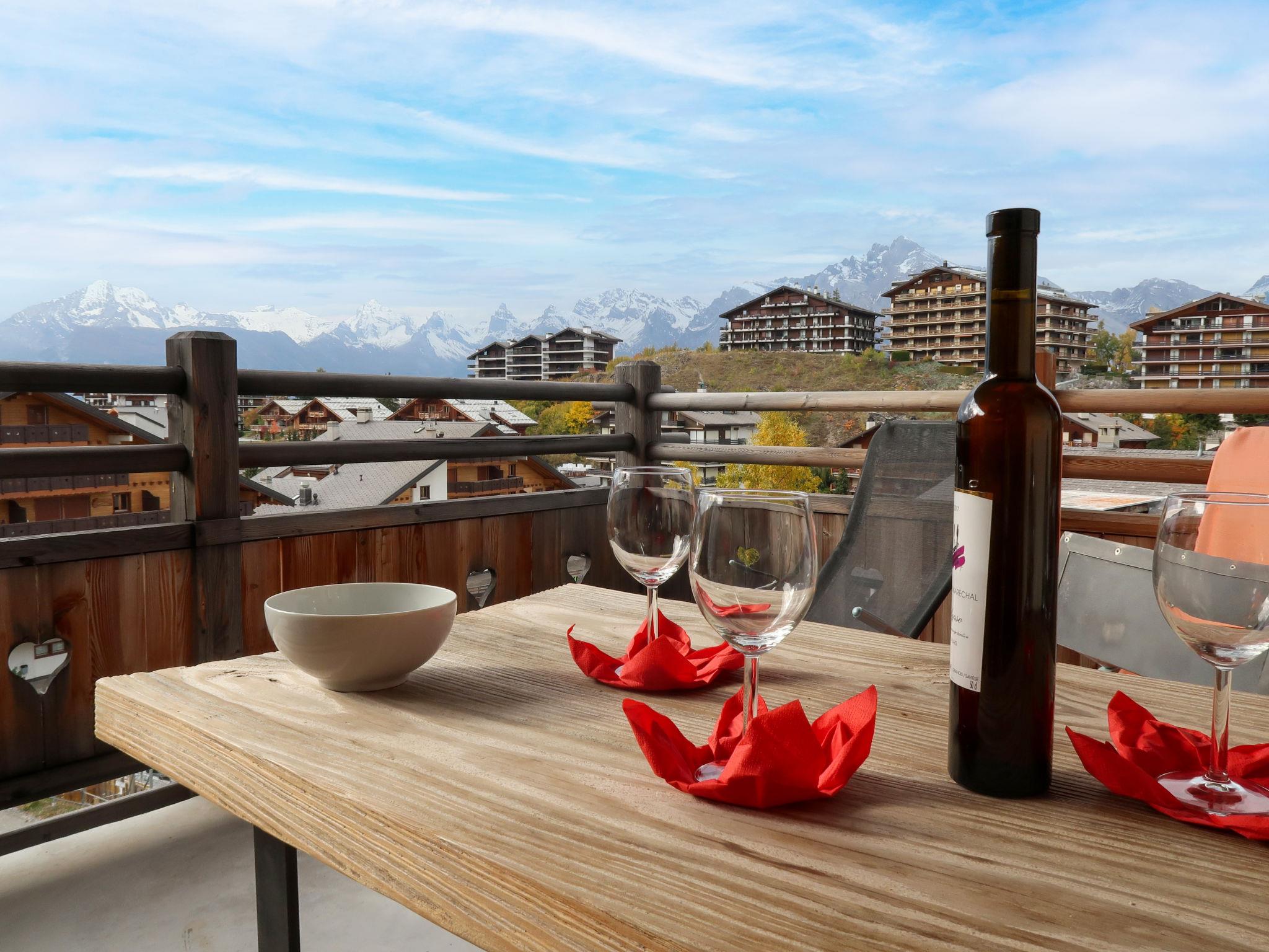 "Ferme de Sandra F2", 3-room apartment 54 m2 on 2nd floor. Comfortable and tasteful furnishings: living/dining room with cable TV and DVD. Exit to the balcony, west facing position. 1 room with 1 double bed (2 x 90 cm, length 200 cm). Exit to the balcony, north facing position. 1 room with 1 french bed (160 cm, length 200 cm). Exit to the balcony, west facing position. Open kitchen (oven, dishwasher, 4 ceramic glass hob hotplates, electric coffee machine, Capsules for coffee machine (nespresso) extra, raclette grill, fondue Set (cheese)). Bathroom, sep. WC. 2 balconies 15 m2. Balcony furniture, deck chairs (2). Beautiful view of the mountains. Facilities: Internet (WiFi, free). Parking space n 15. Maximum 1 pet/ dog allowed.