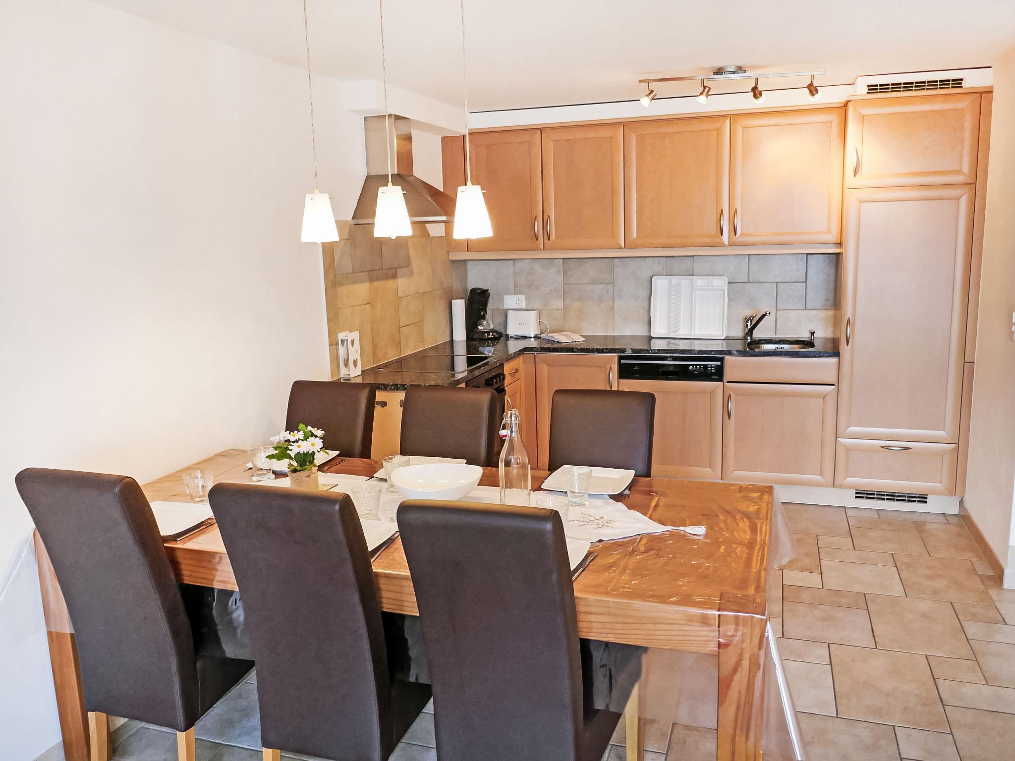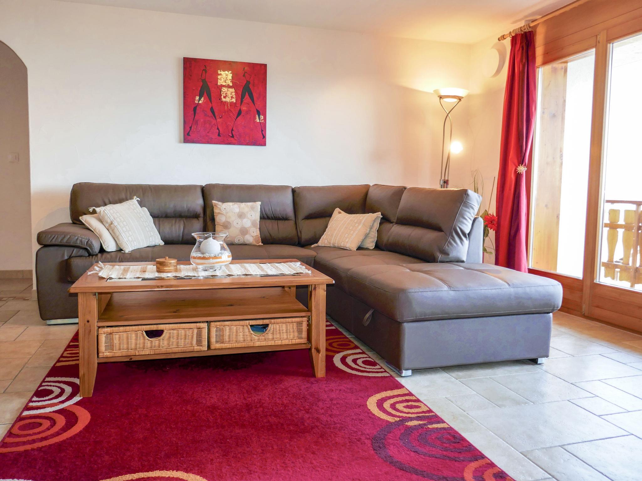 "Grand Panorama C5", 4-room apartment 105 m2 on 3rd floor. Spacious, comfortable furnishings: large living/dining room with cable TV and hi-fi system. Exit to the balcony, north facing position. 1 large room with 1 french bed (160 cm, length 200 cm), shower/WC. Exit to the balcony, north facing position. 2 rooms, each room with 1 french bed (160 cm, length 200 cm). Exit to the terrace, south facing position. Open kitchen (oven, dishwasher, 4 ceramic glass hob hotplates, toaster, kettle, electric coffee machine, Capsules for coffee machine (Nespresso) extra, raclette grill, fondue Set (cheese)). Bath/WC. Large balcony, north facing position, terrace, south facing position. Balcony furniture. Beautiful view of the mountains and the valley. Facilities: baby cot, hair dryer. Internet (WiFi, free). Parking space n c5 (roofed). Please note: non-smokers only. Ch’H1961.660.6